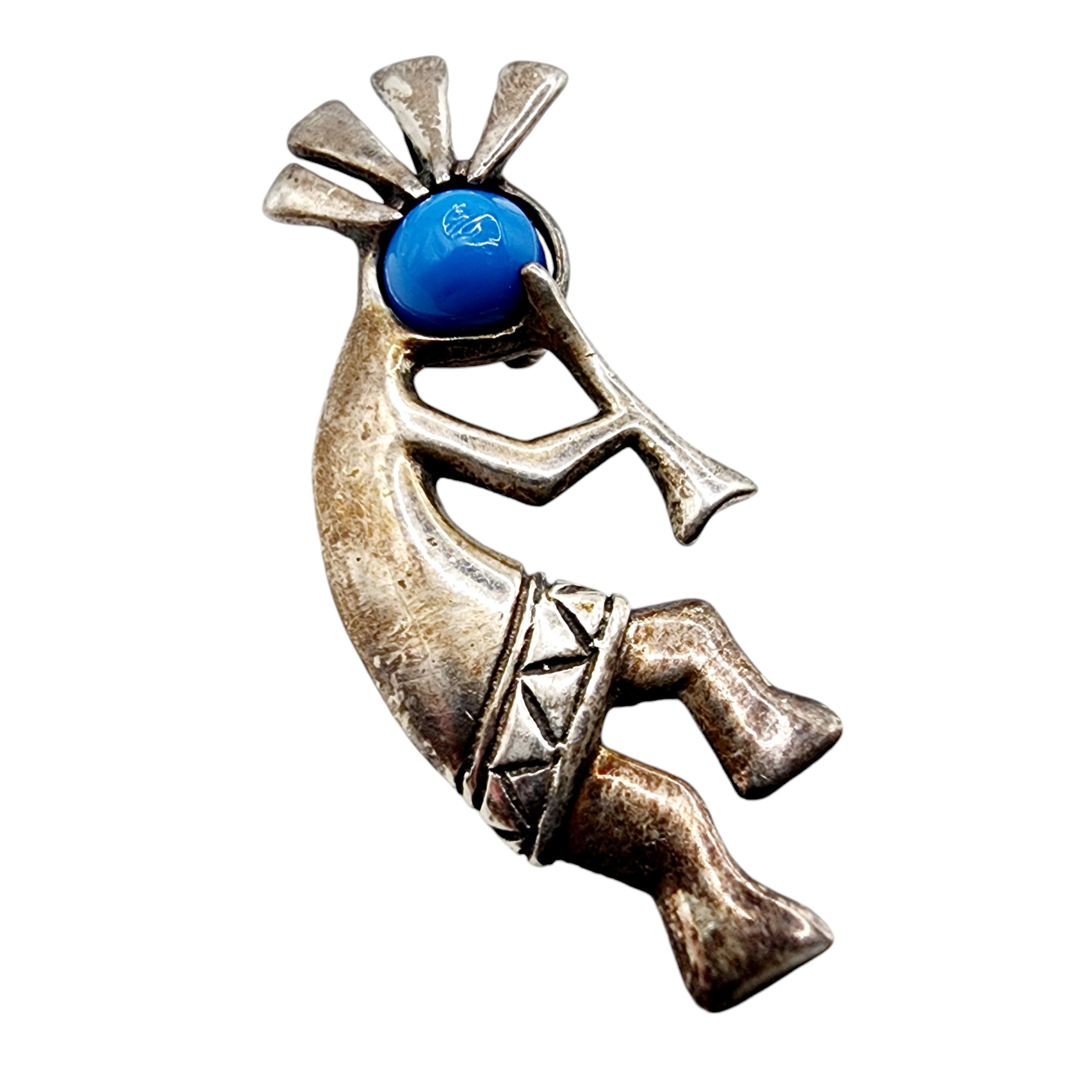 Jim Calladitto Navajo Sterling Turquoise Kokopelli Flute Player Pendant 2.1g