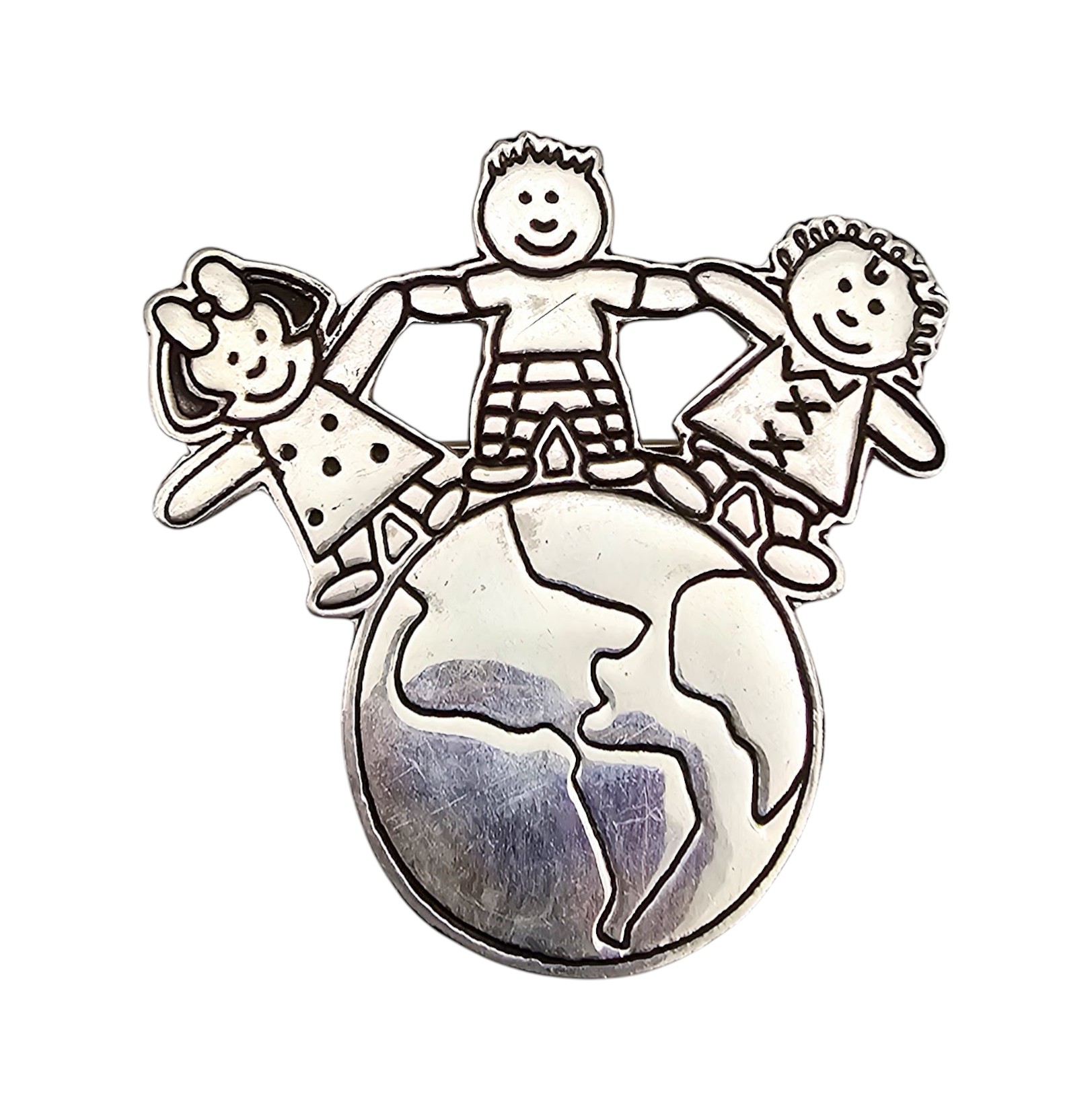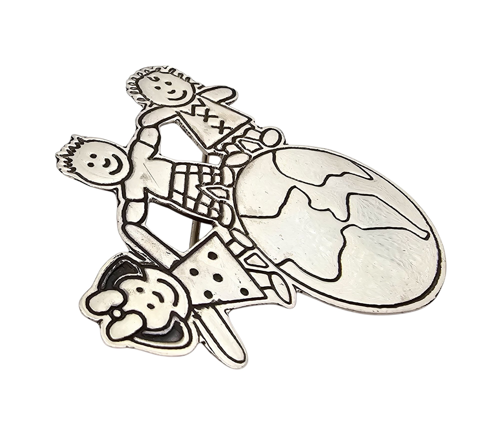 EFS Mexico Sterling Children World Brooch 7.8 G