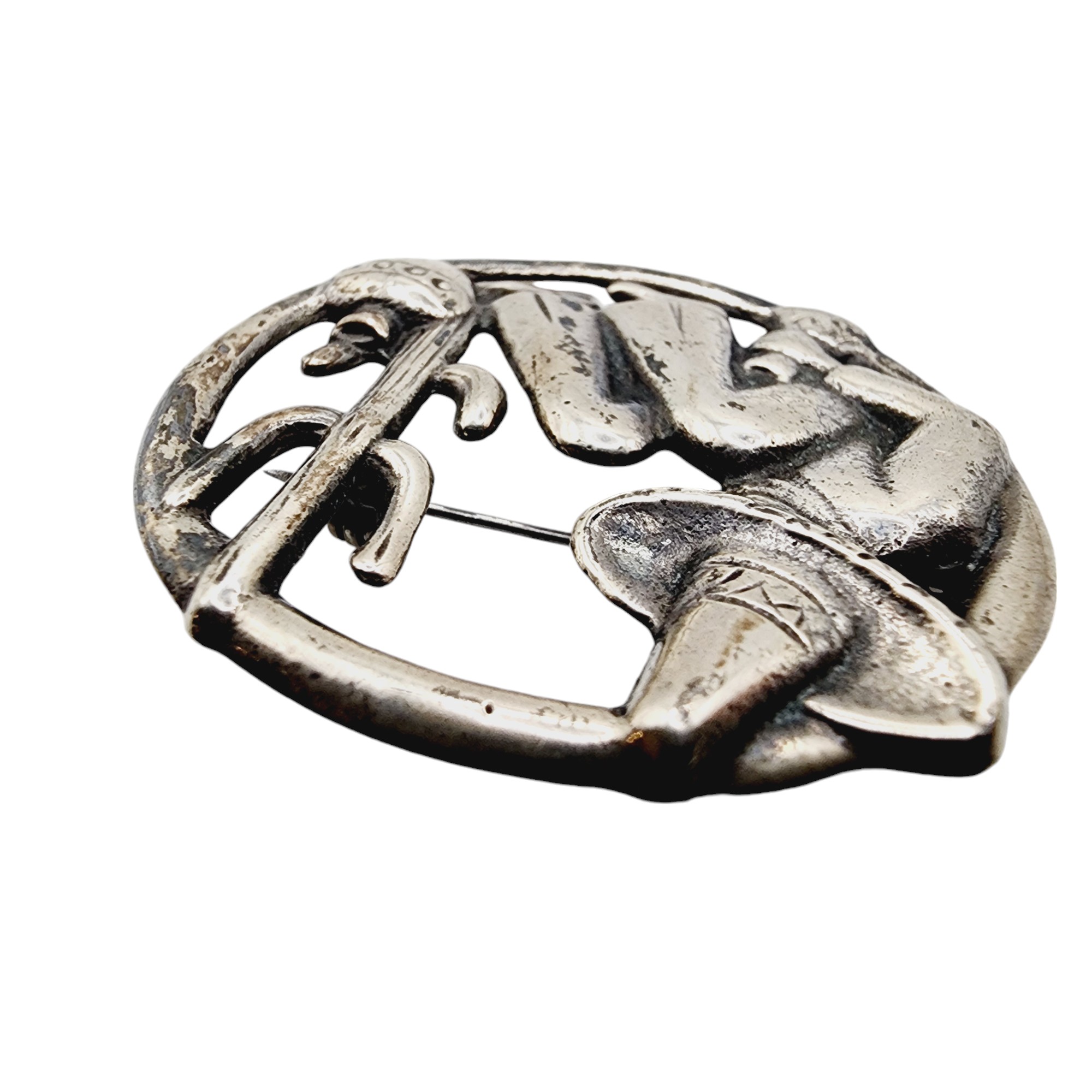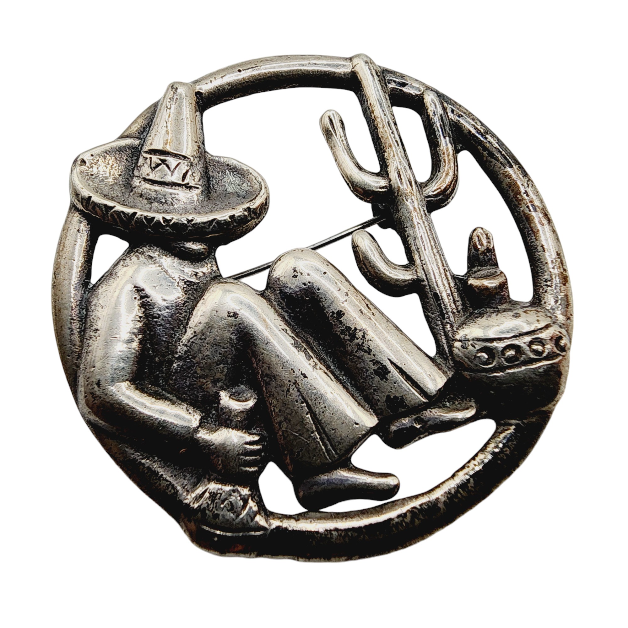 Vintage Mexico Siesta Scene Sterling Brooch 14.3g