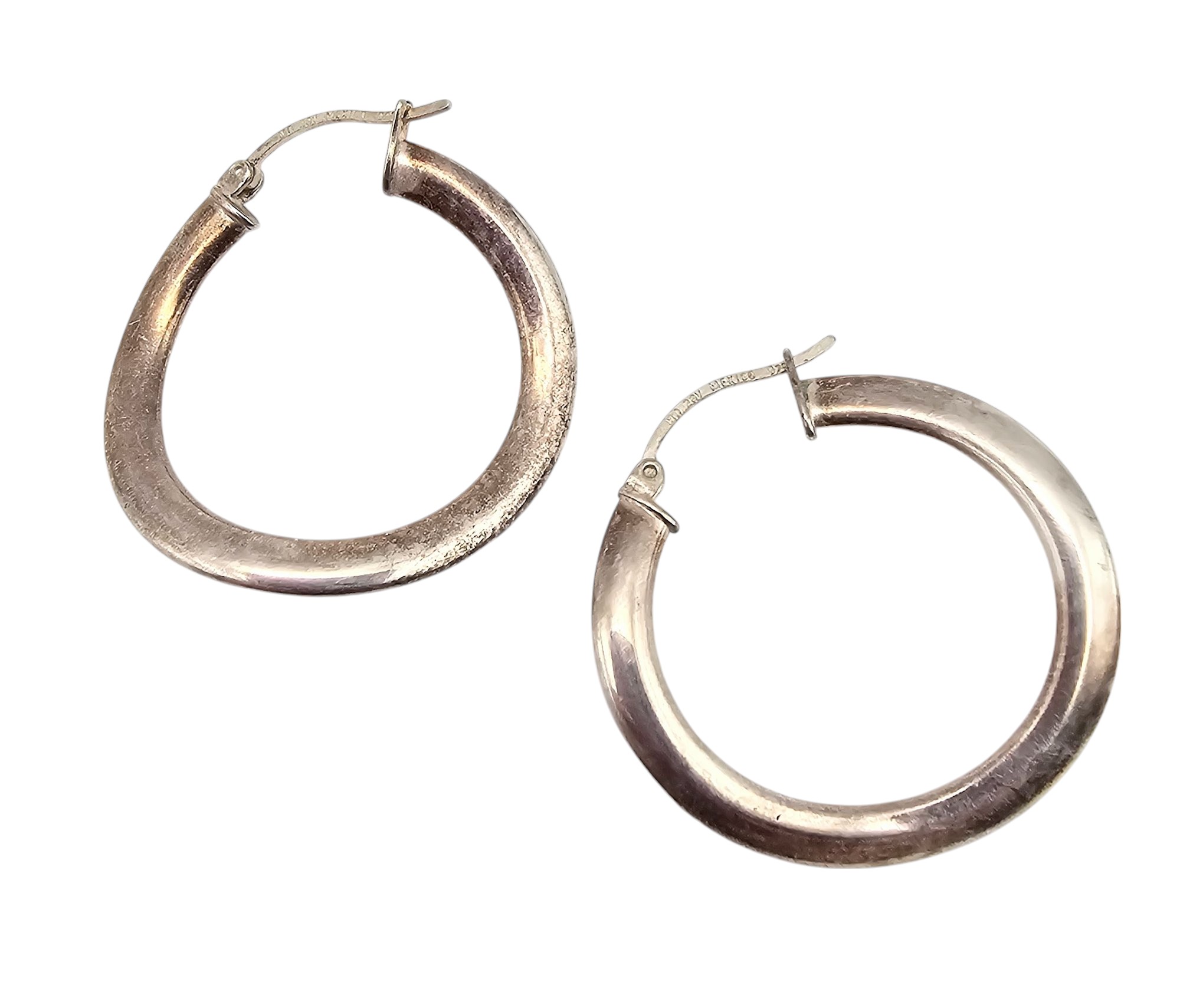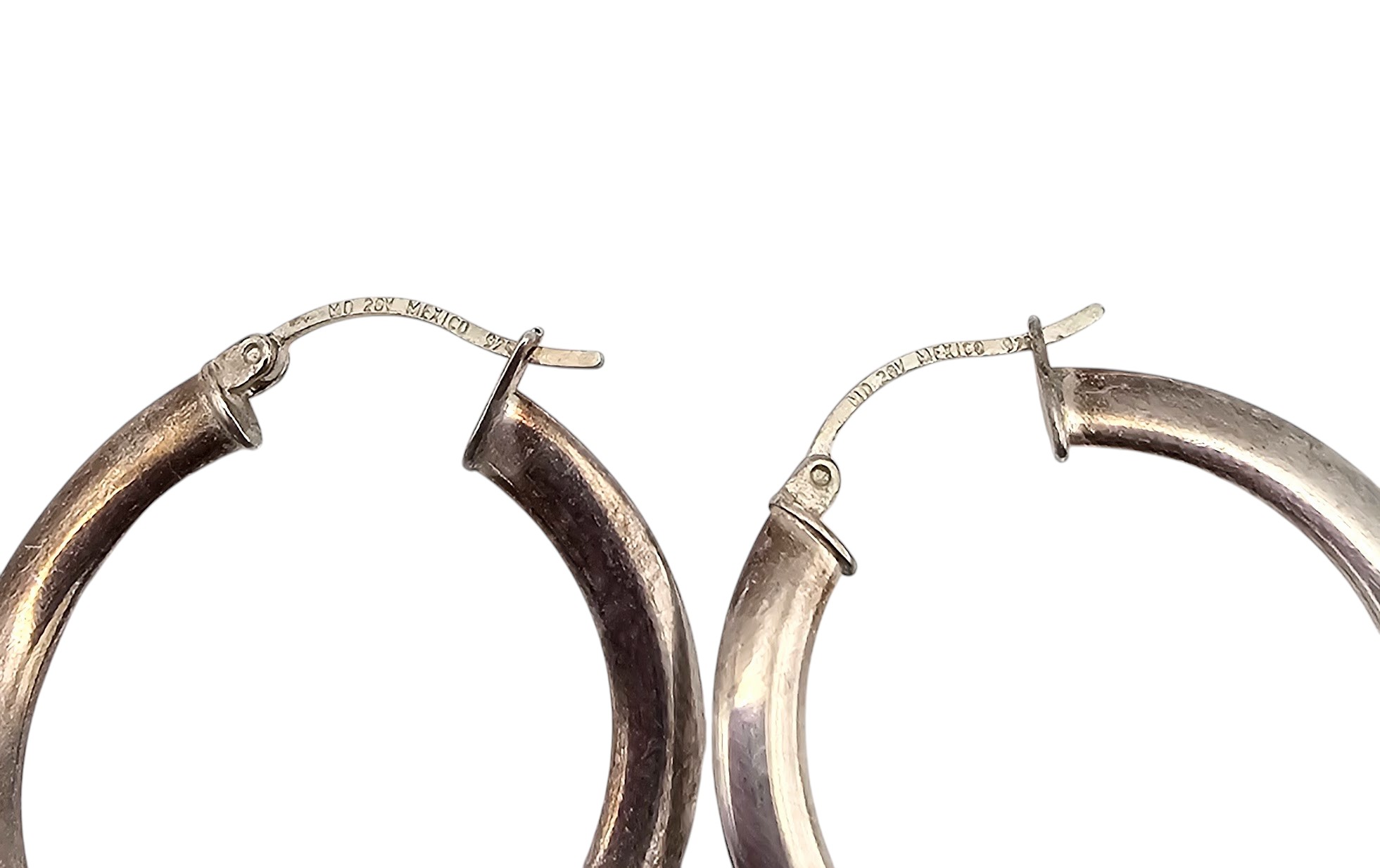 MD-28 Mexico Sterling Wavy Hoop Earrings 4.1 G