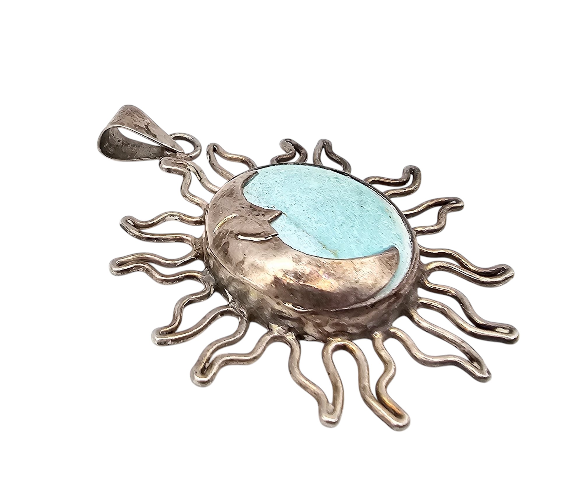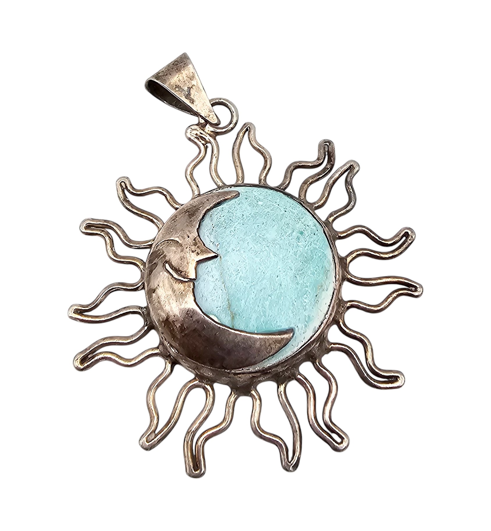 Mexico Sterling Sodalite Sun Moon Pendant 10 G