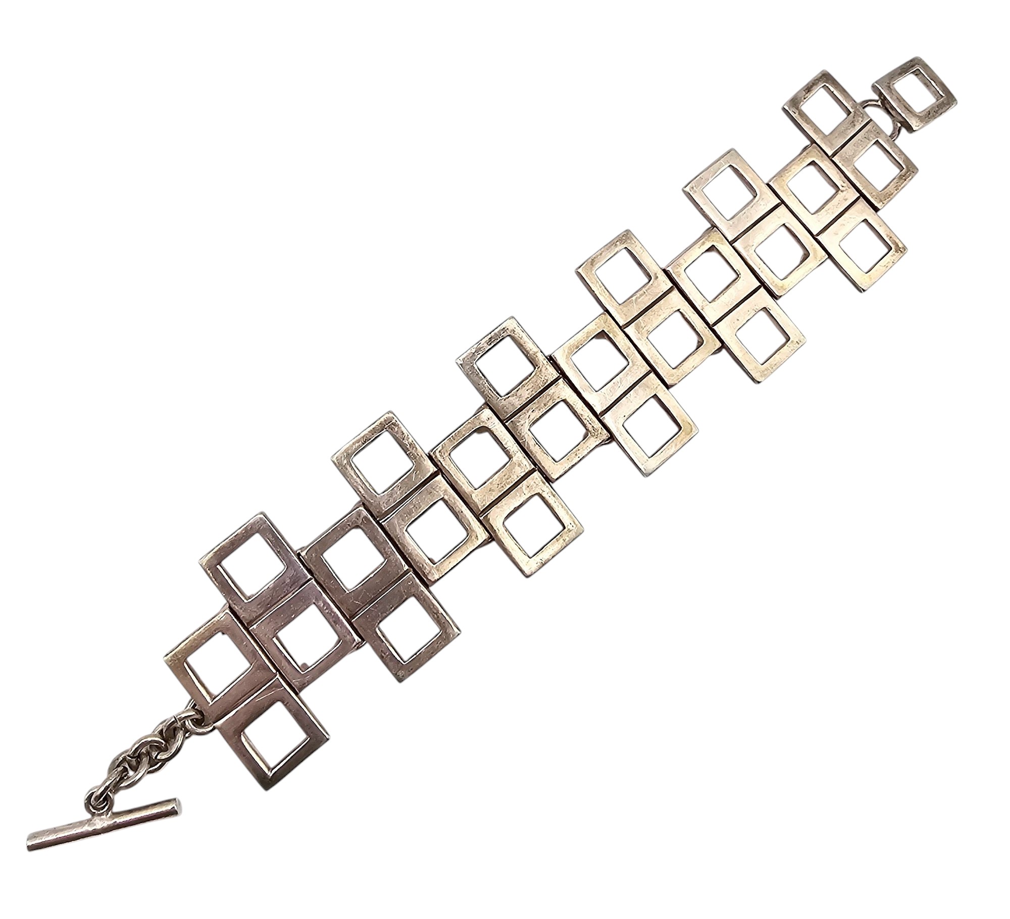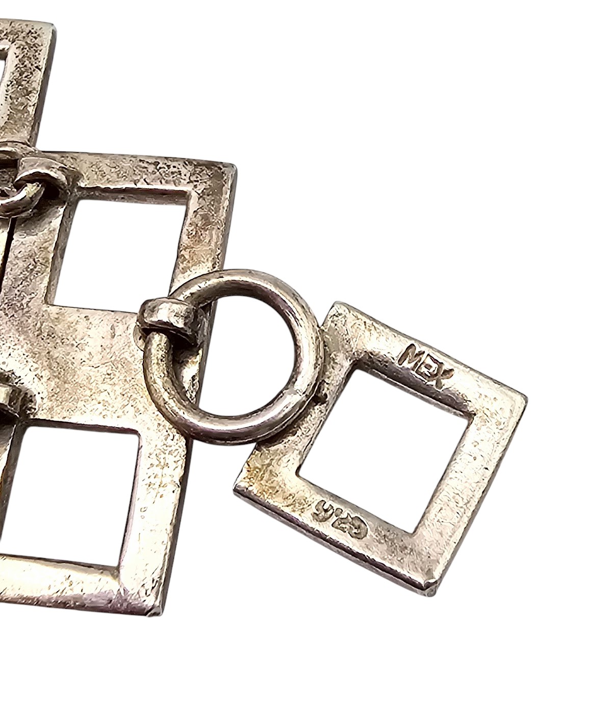 Mexico Sterling Square Lattice Toggle Bracelet 59 G