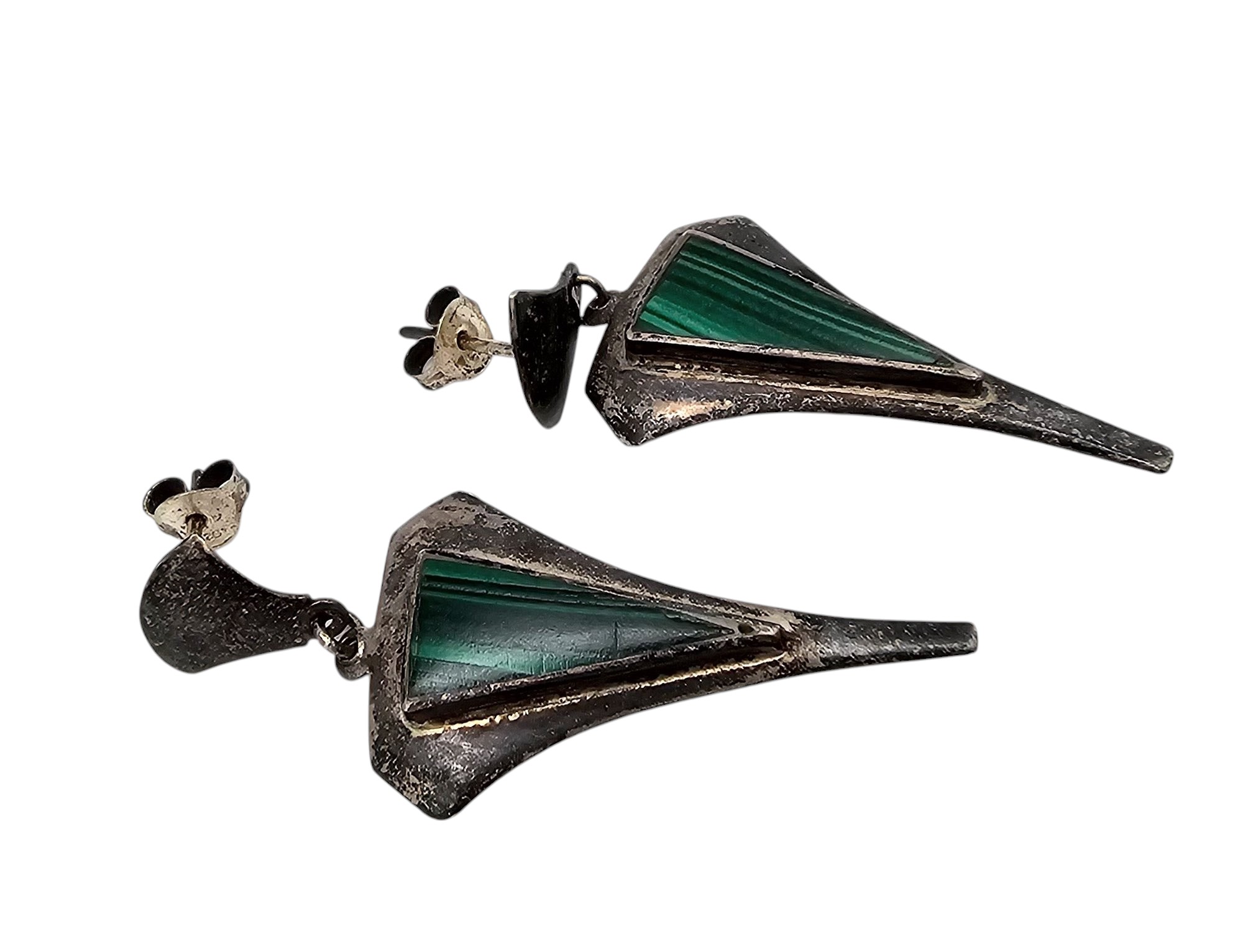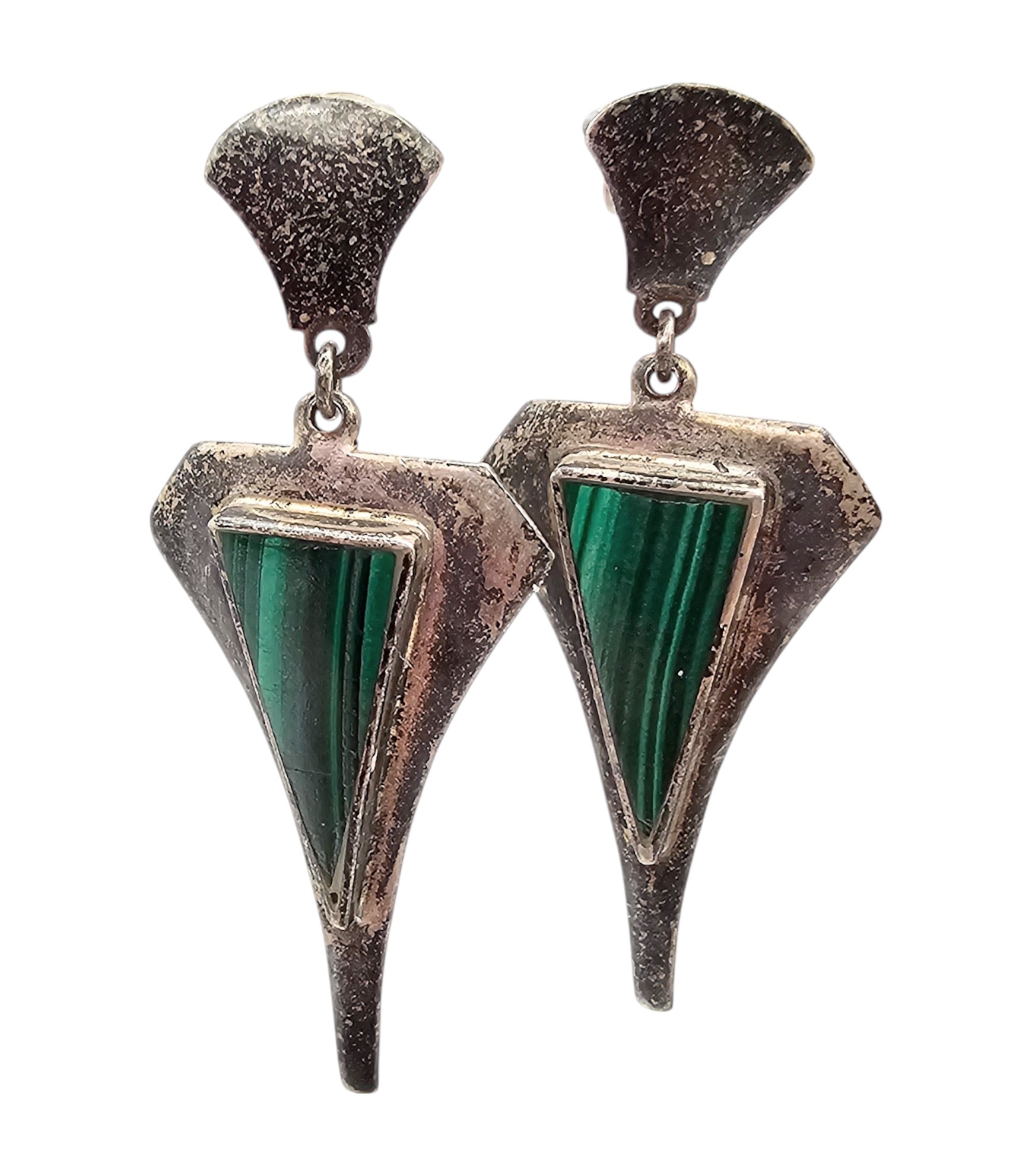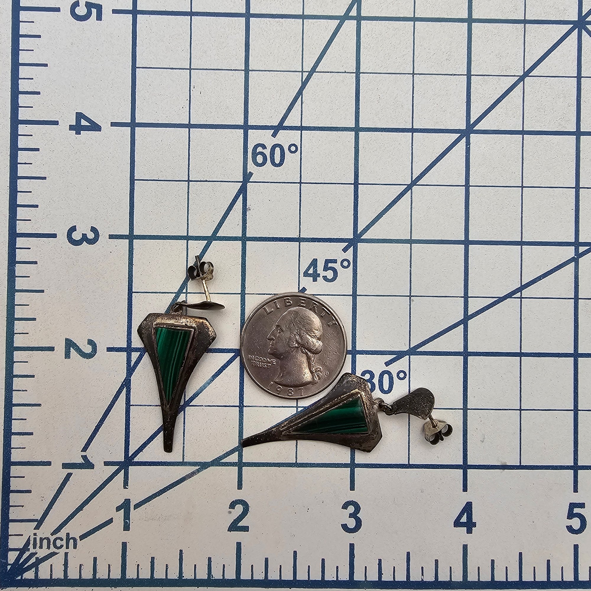 Sterling Malachite Drop Dangle Earrings 5.1 G