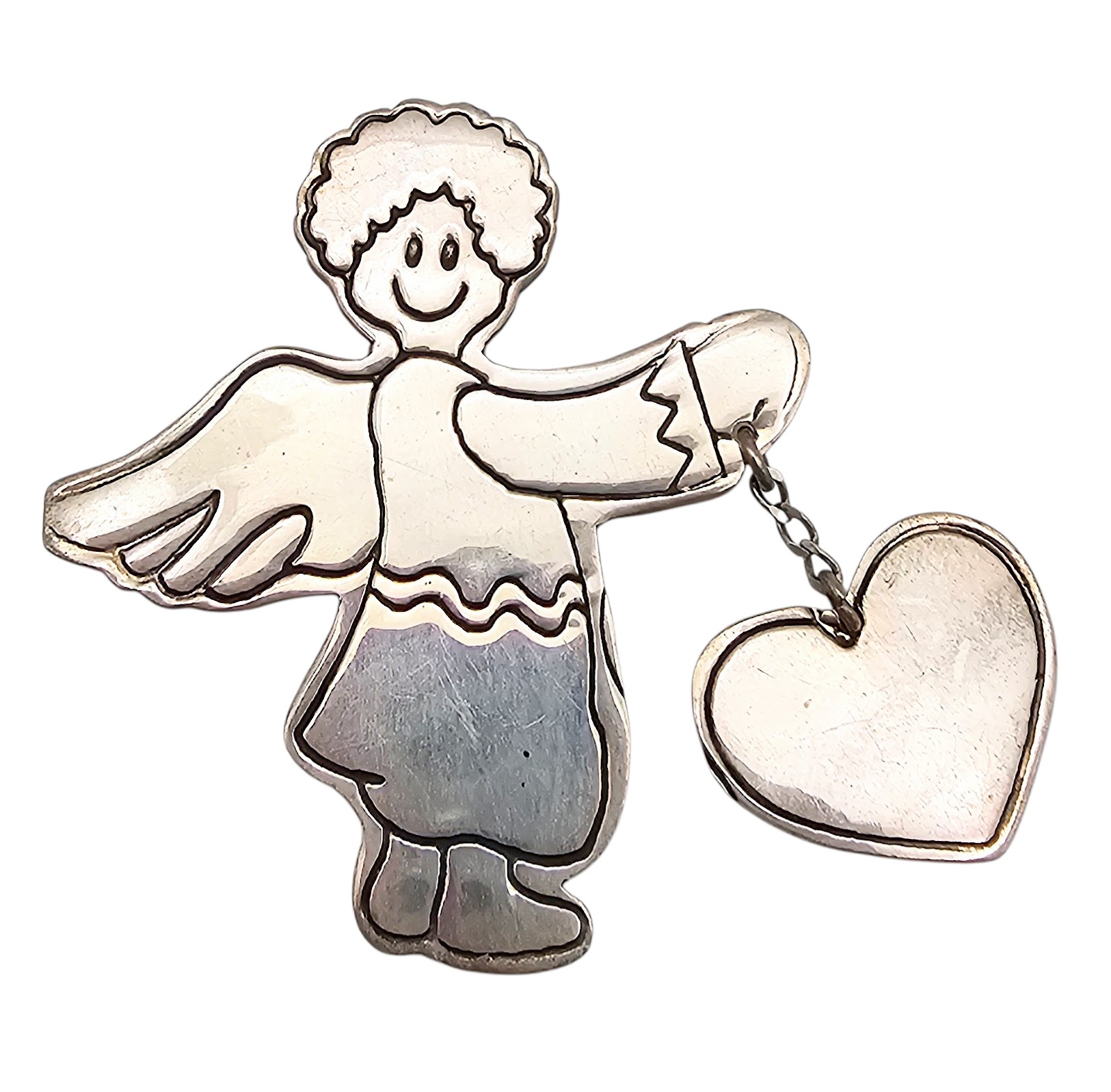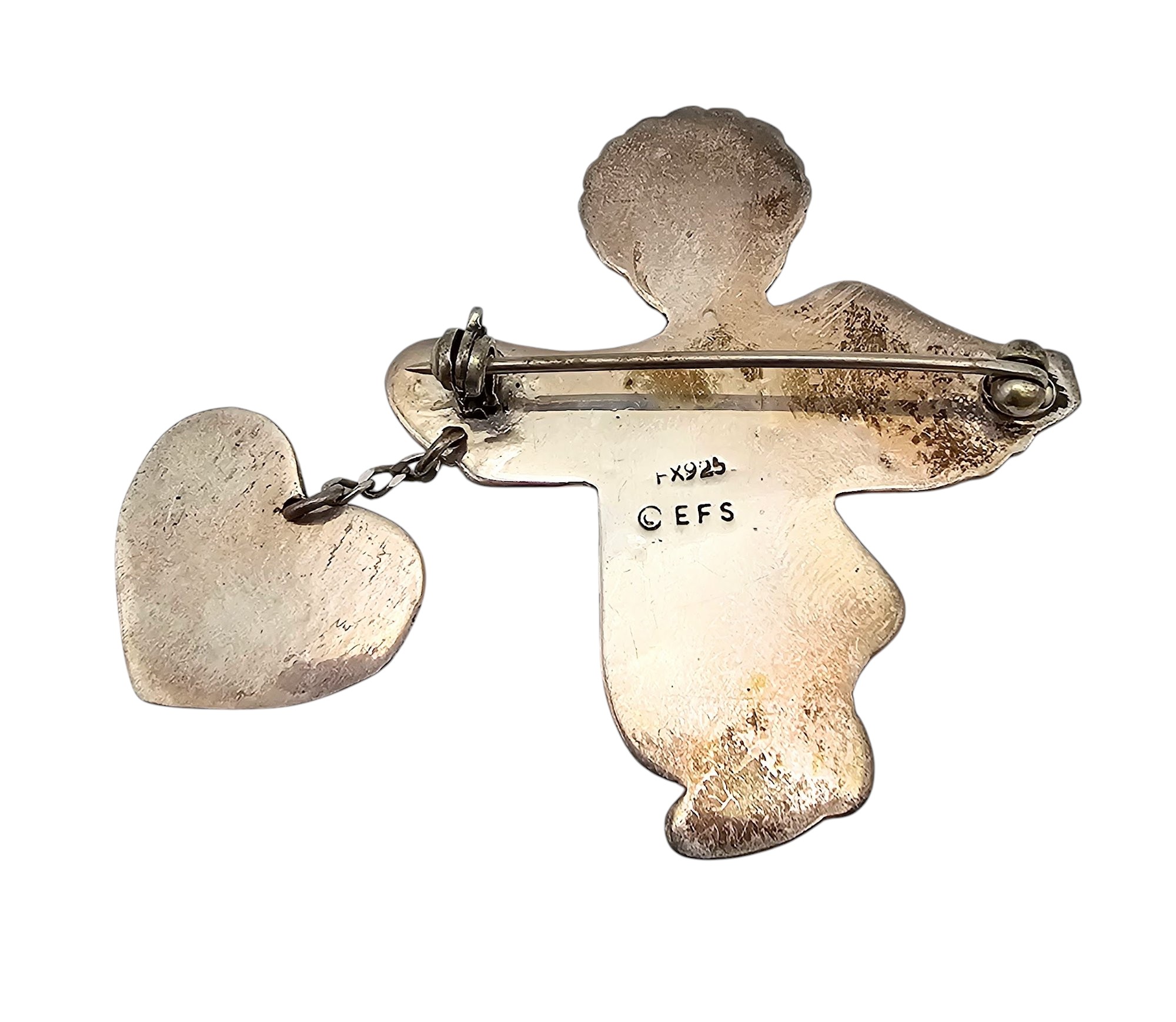 EFS Mexico Sterling Angel with Heart Brooch 9.2 G