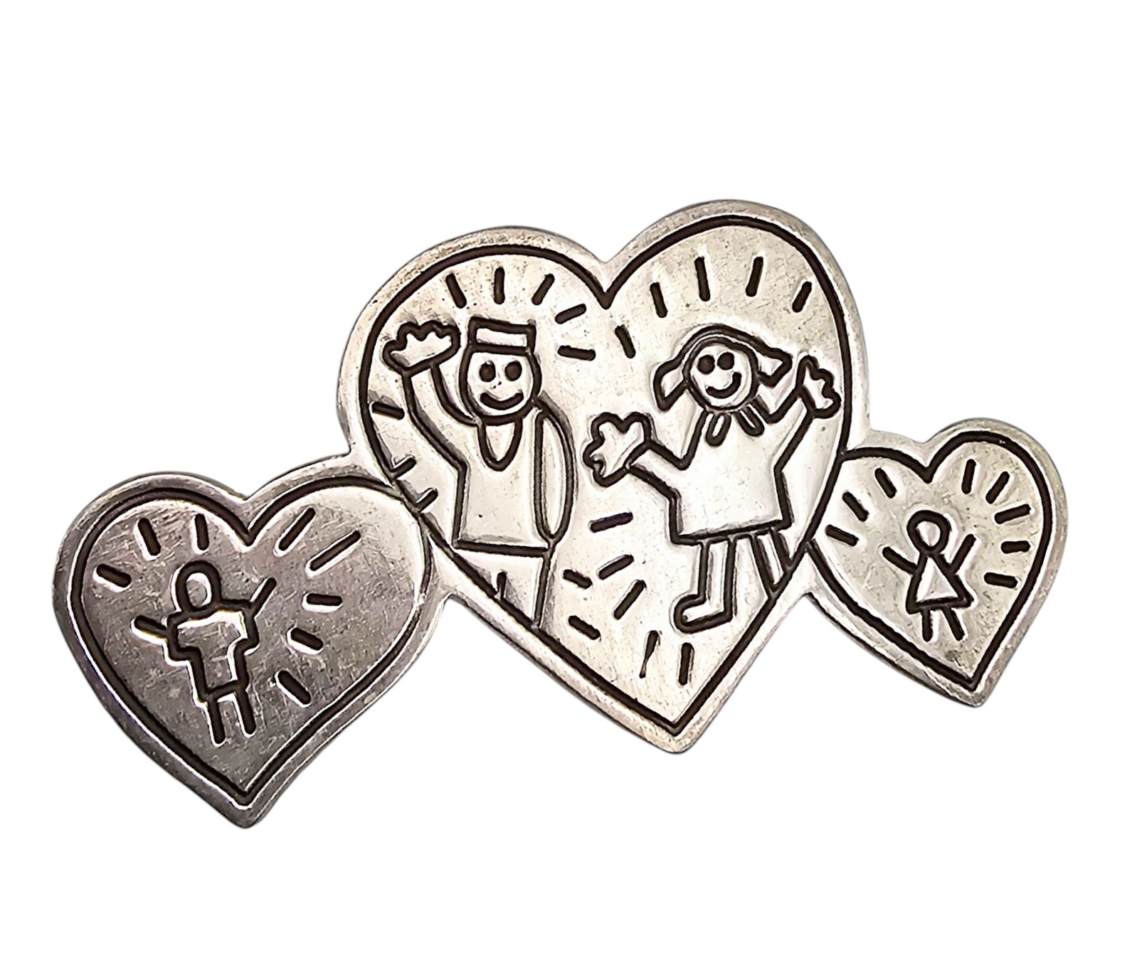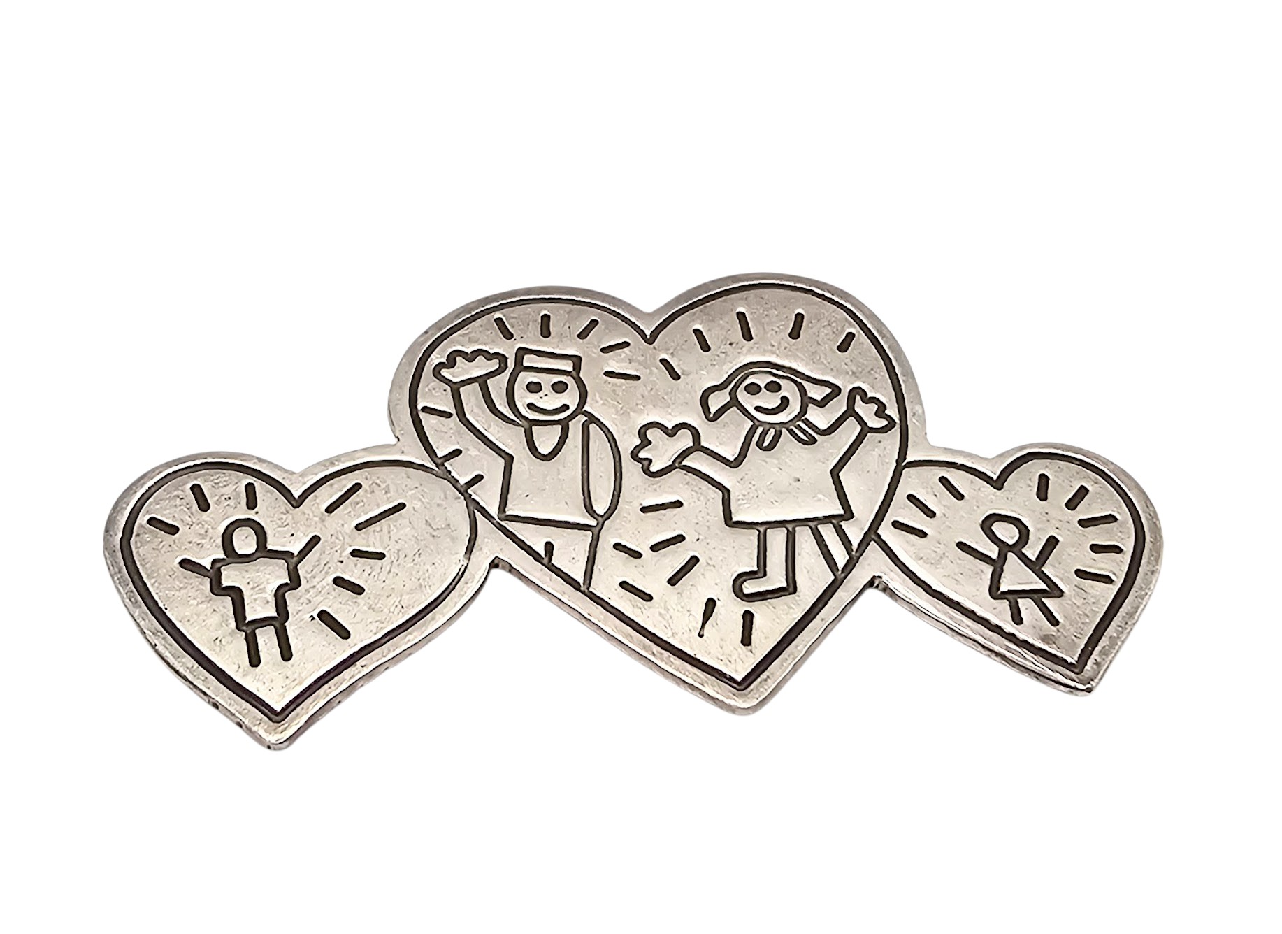 EFS Mexico Sterling Heart And Children Brooch 8.9 G