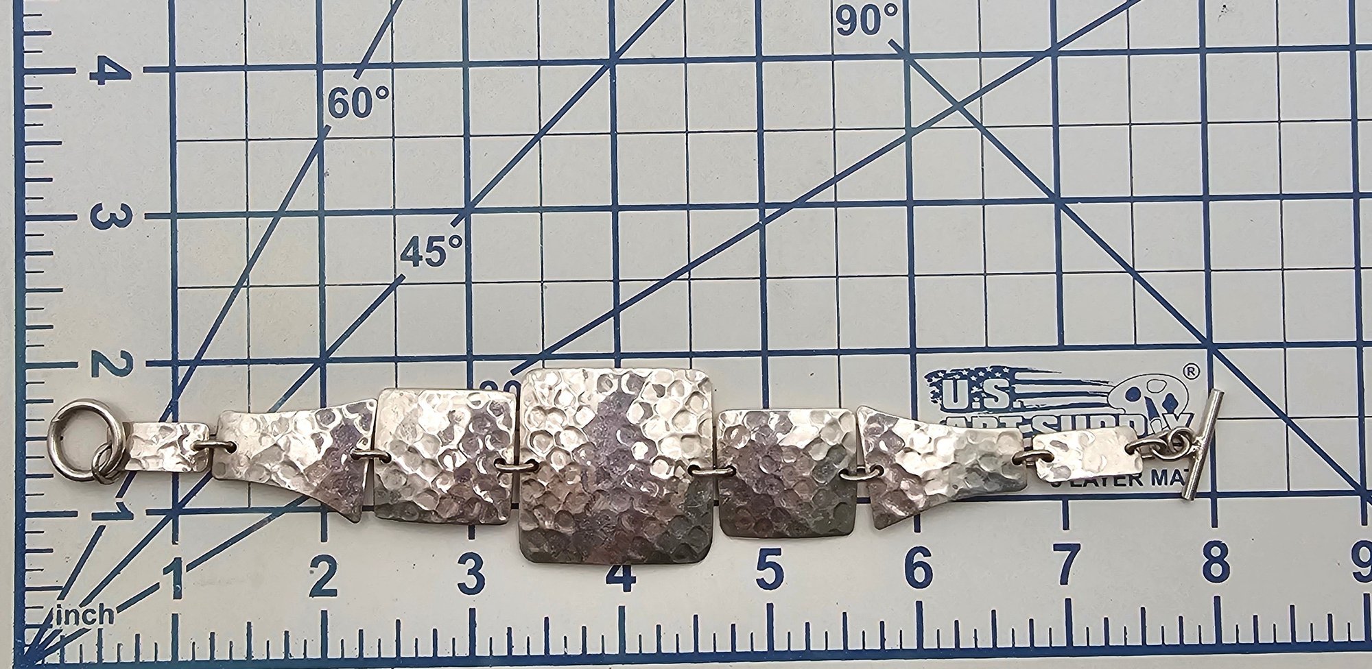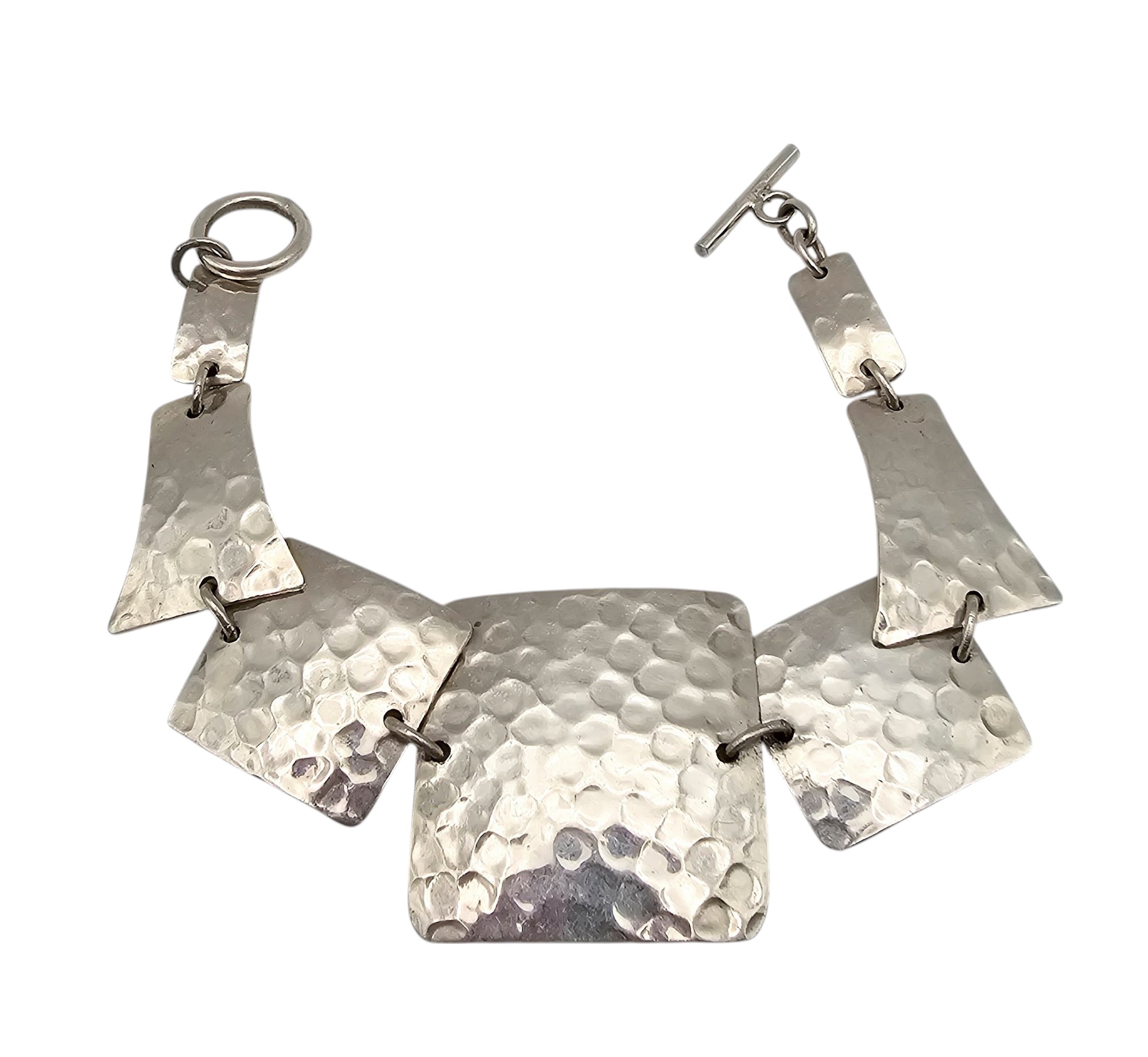 Mexico Sterling Hammered Toggle Bracelet 33 G