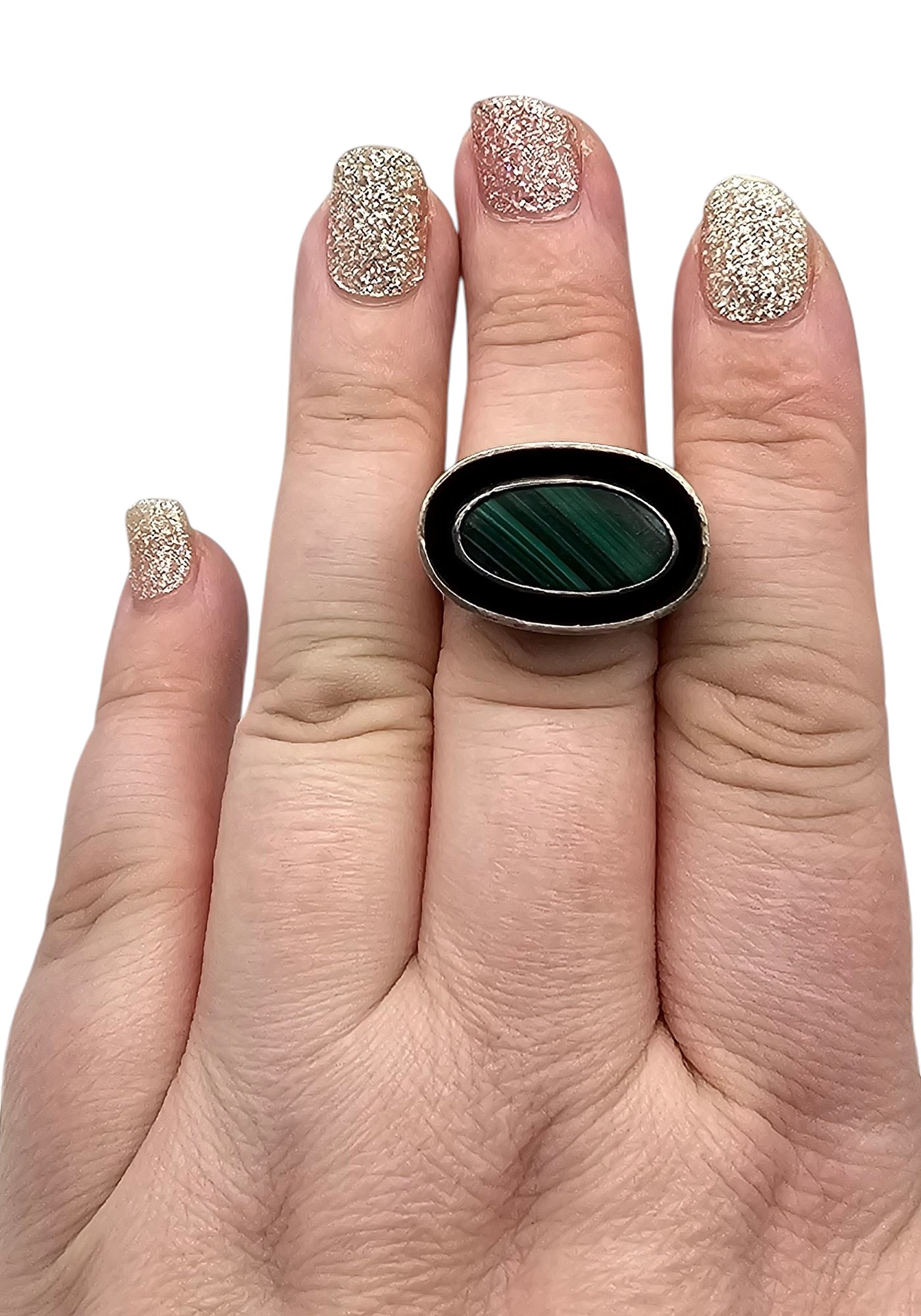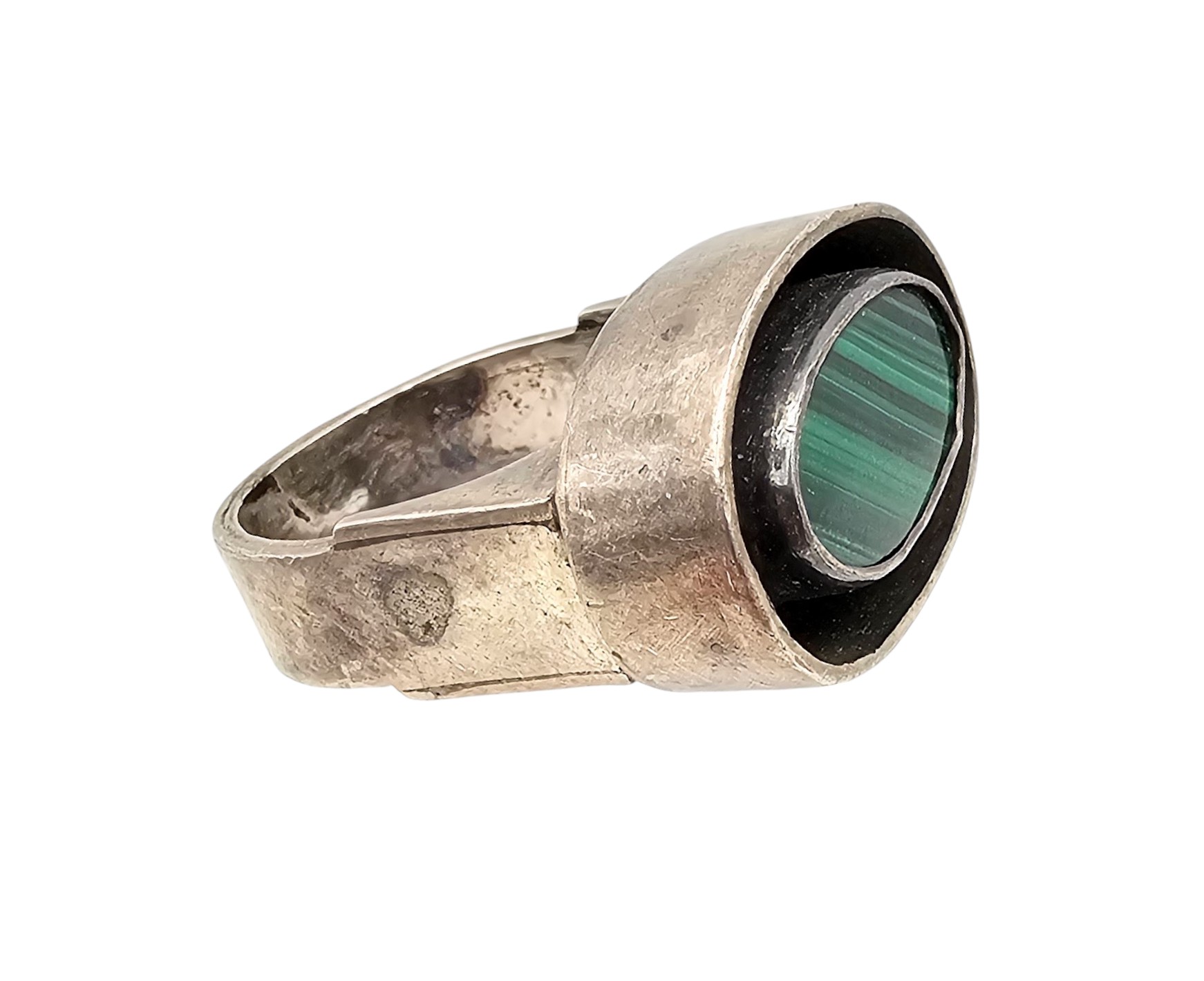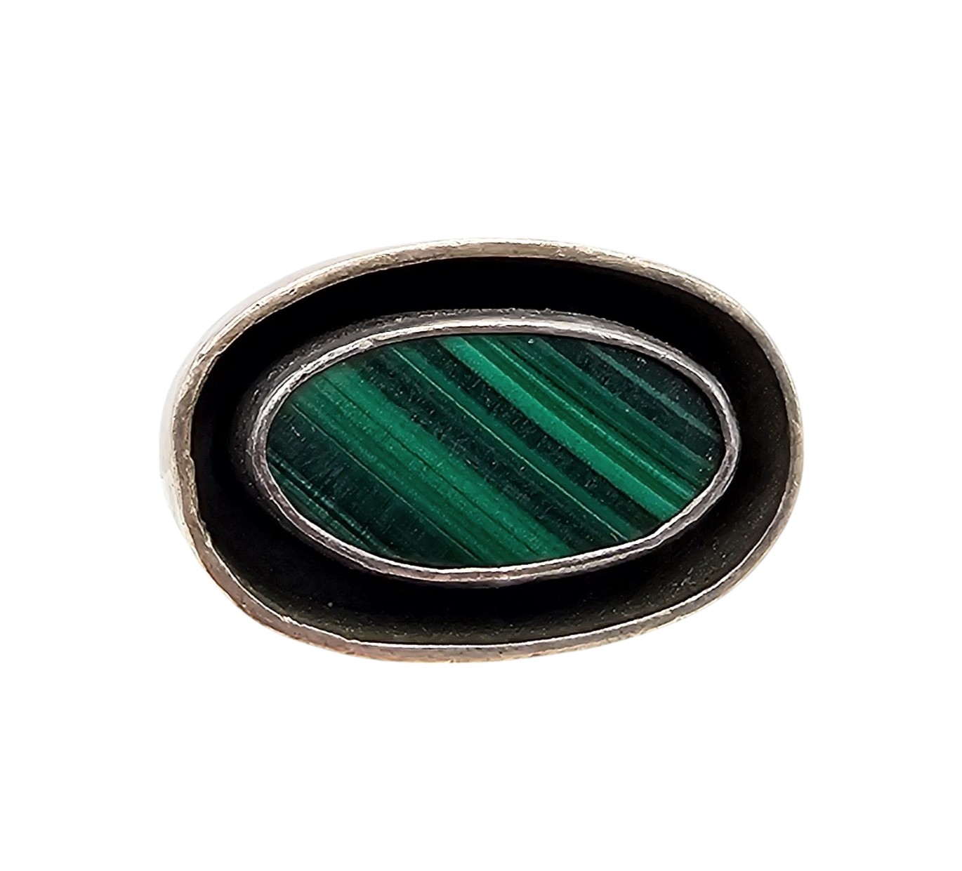 Signed Sterling Malachite Ring size 8.25 14.5 G