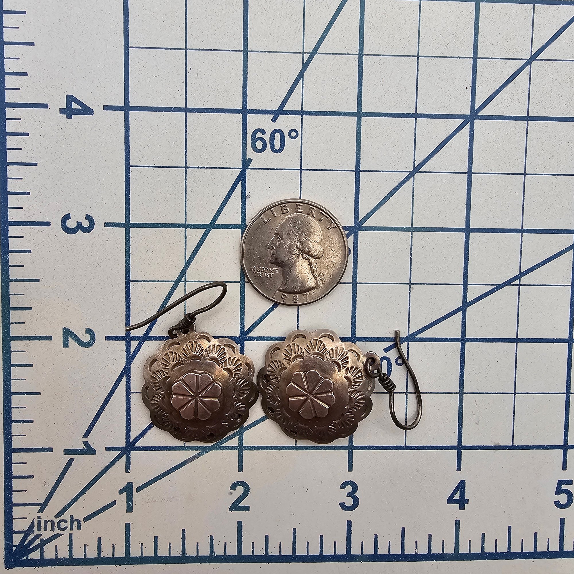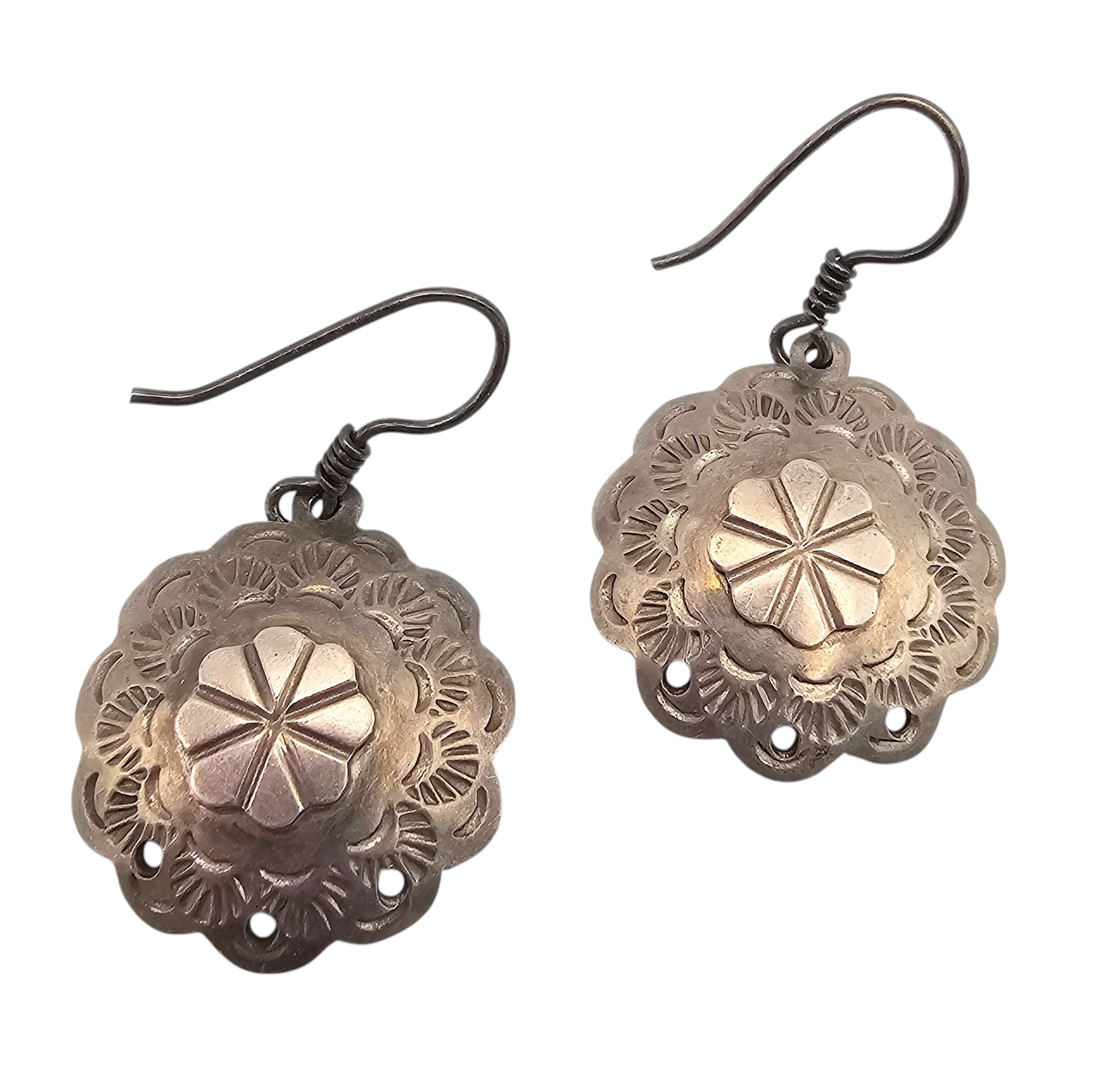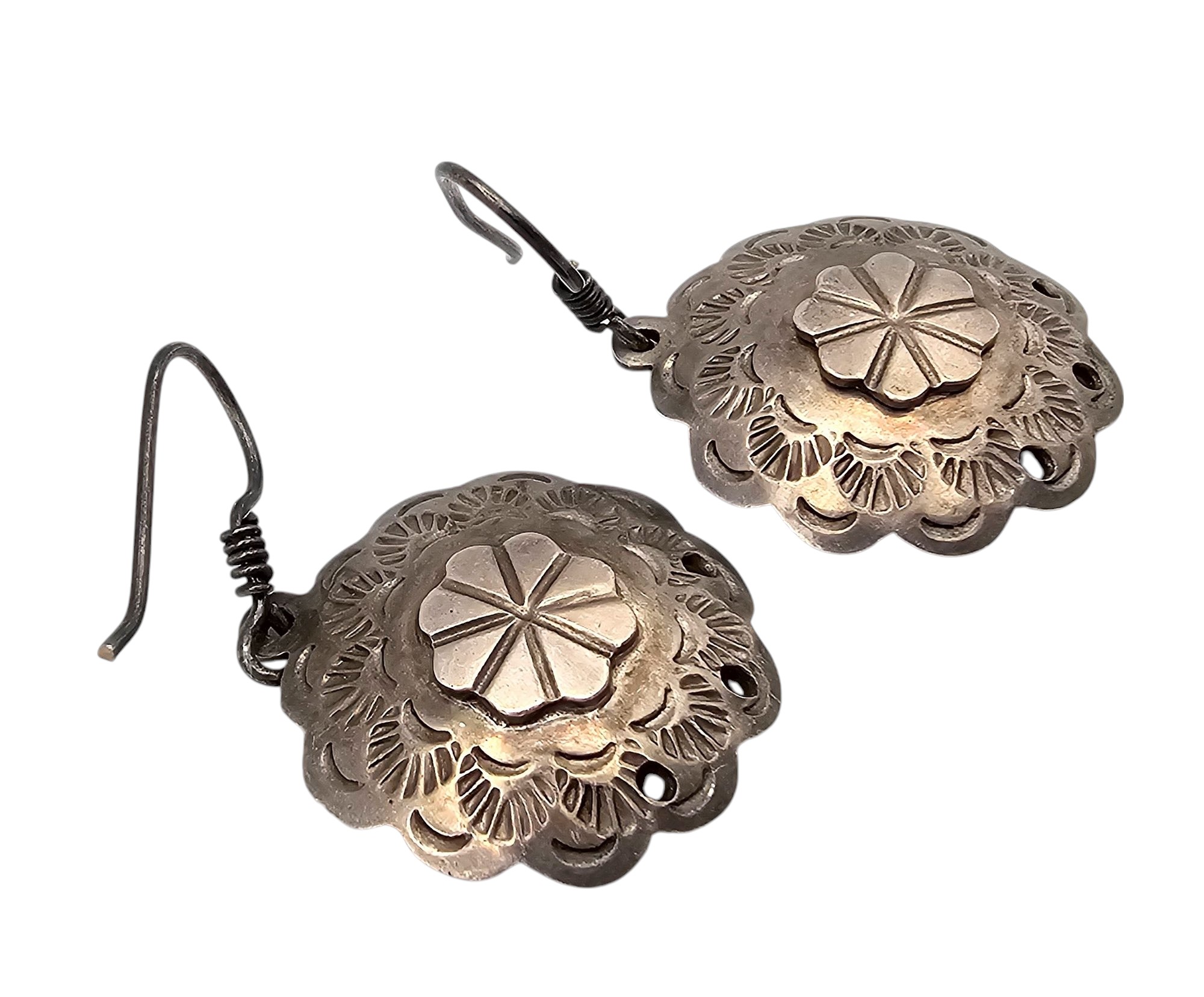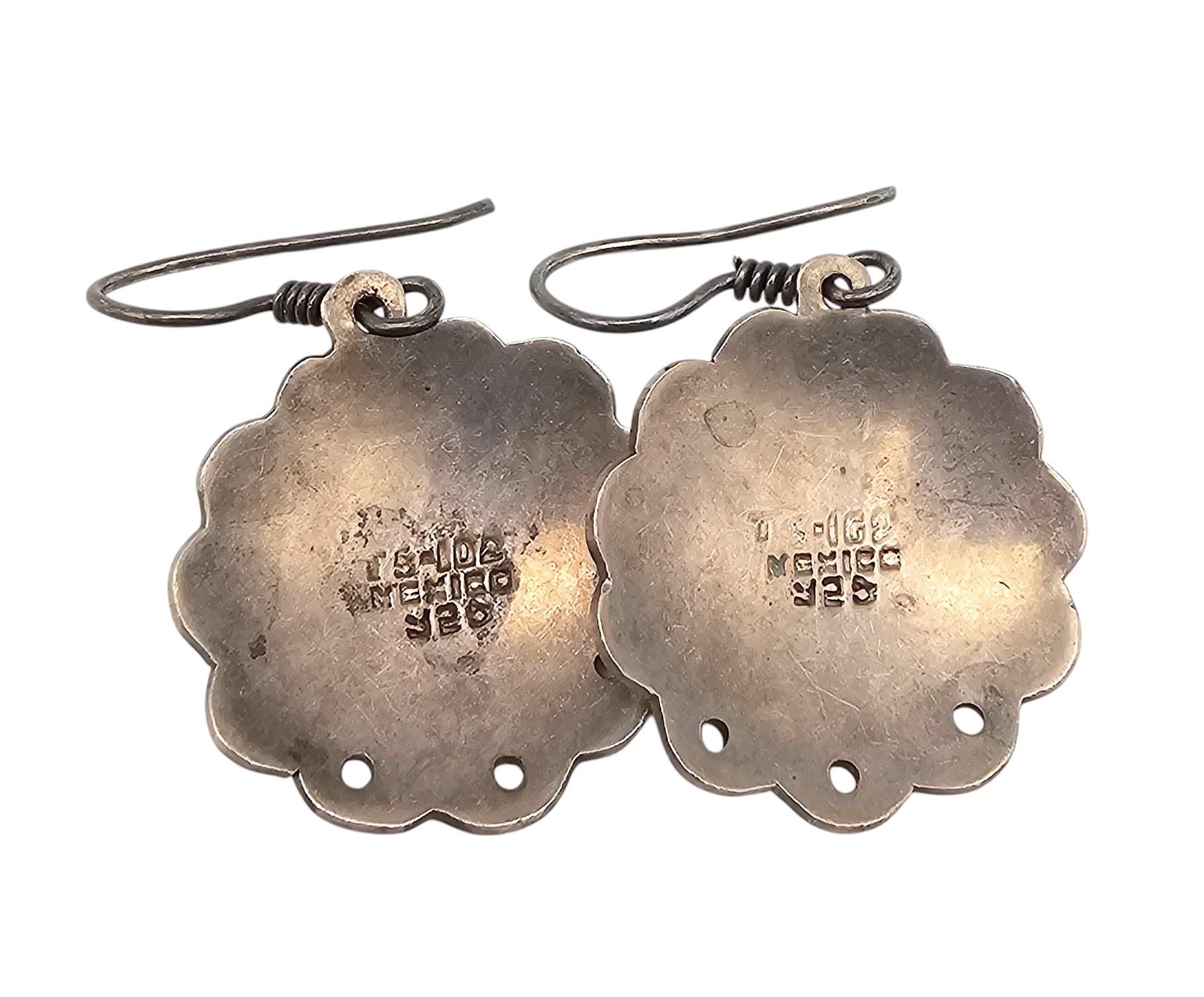 Mexico TS-102 Sterling Concho Style Drop Dangle Earrings 12.4 G