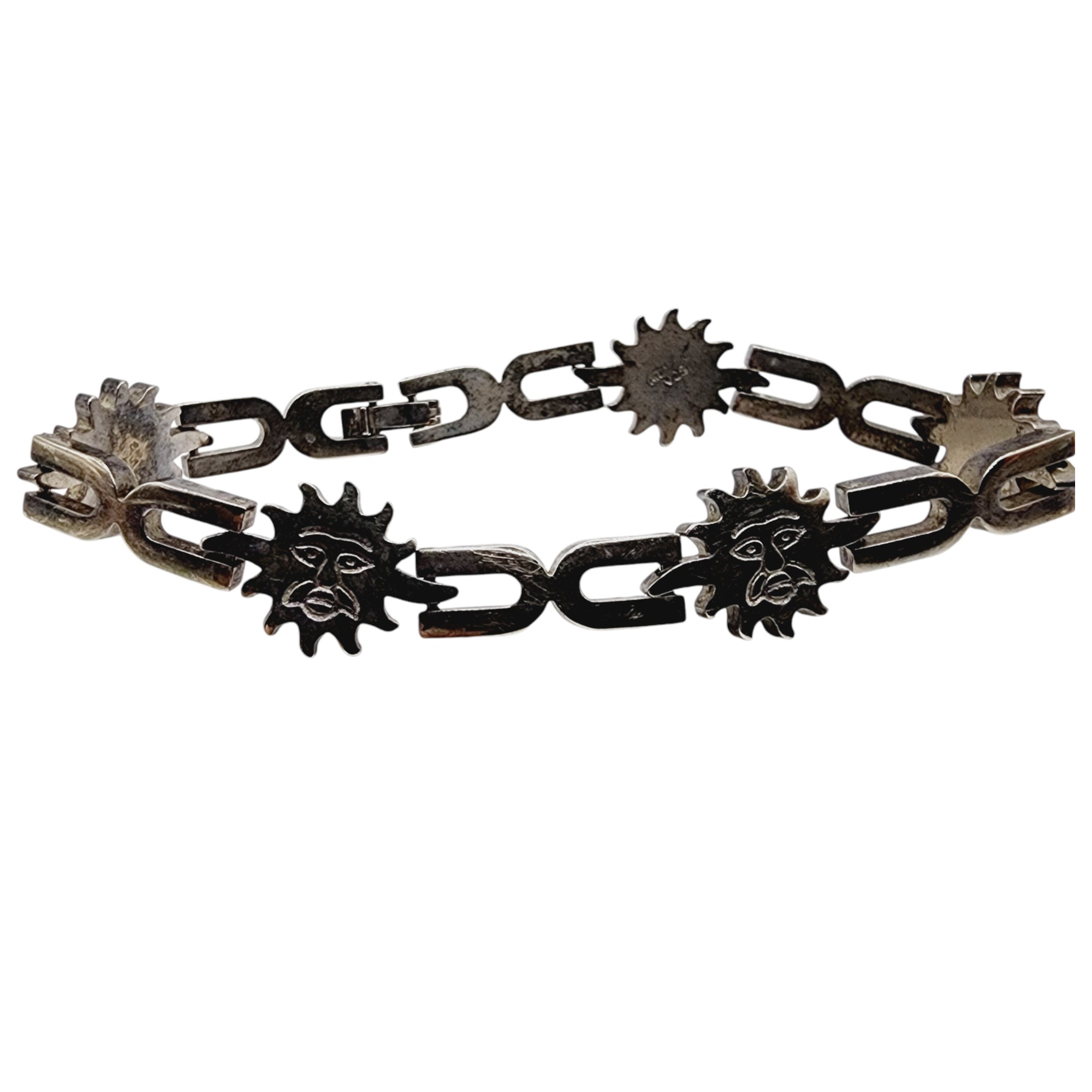 Vintage Mexico Sterling Celestial Sun Link Bracelet 23.9g