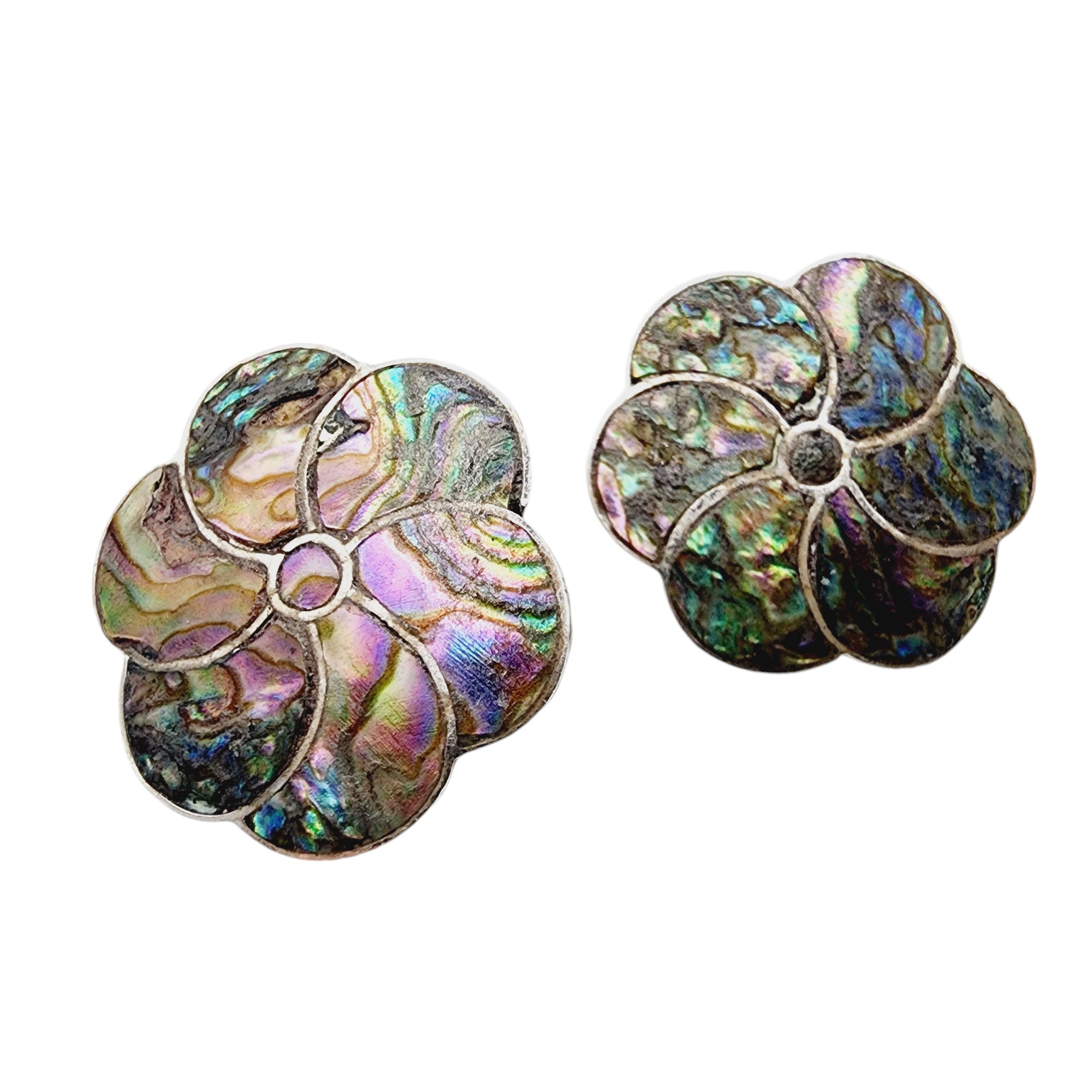 Signed ‘MSM’ Taxco Eagle 3 Vintage Sterling Abalone Earrings 5.4g