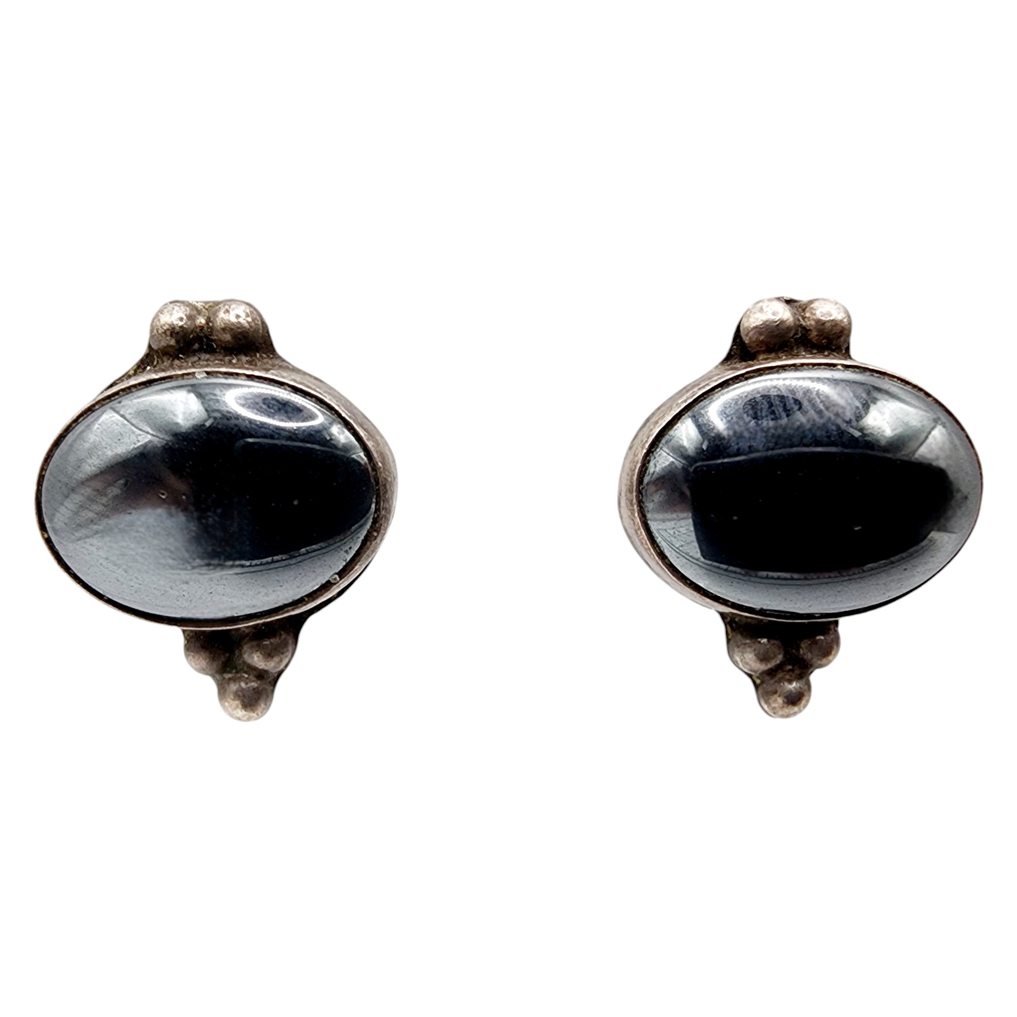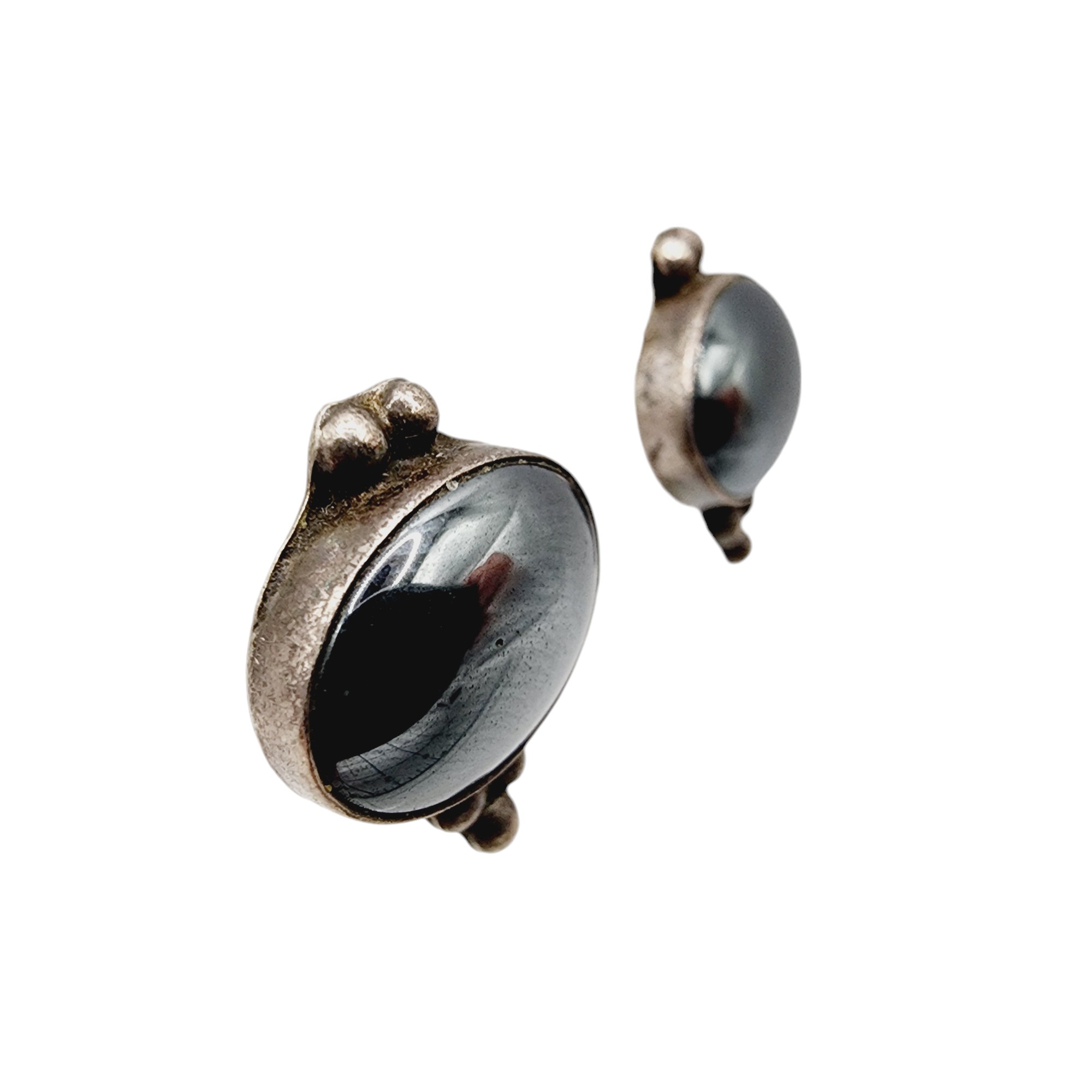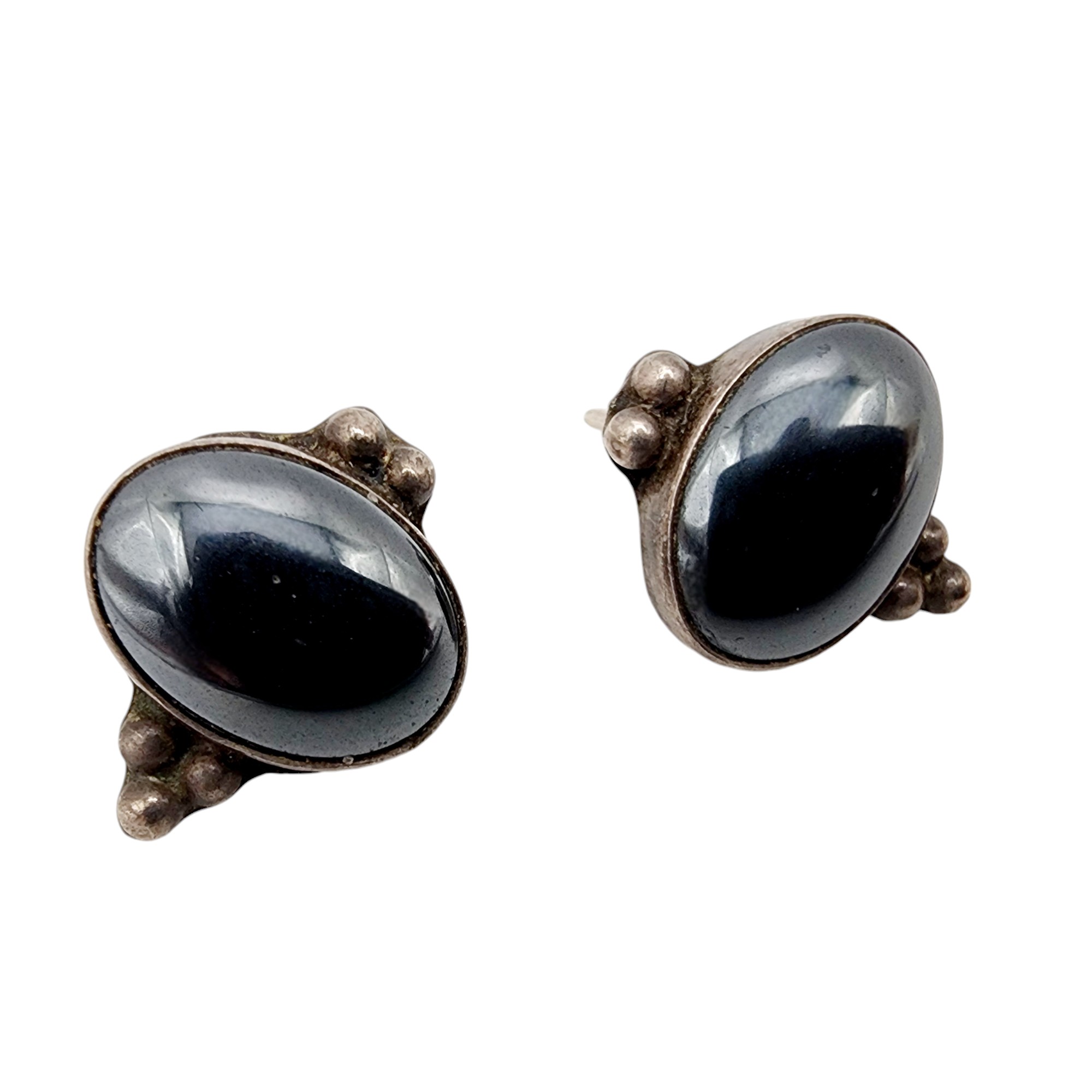 Vintage Mexico Sterling Hematite Earrings 5.5g