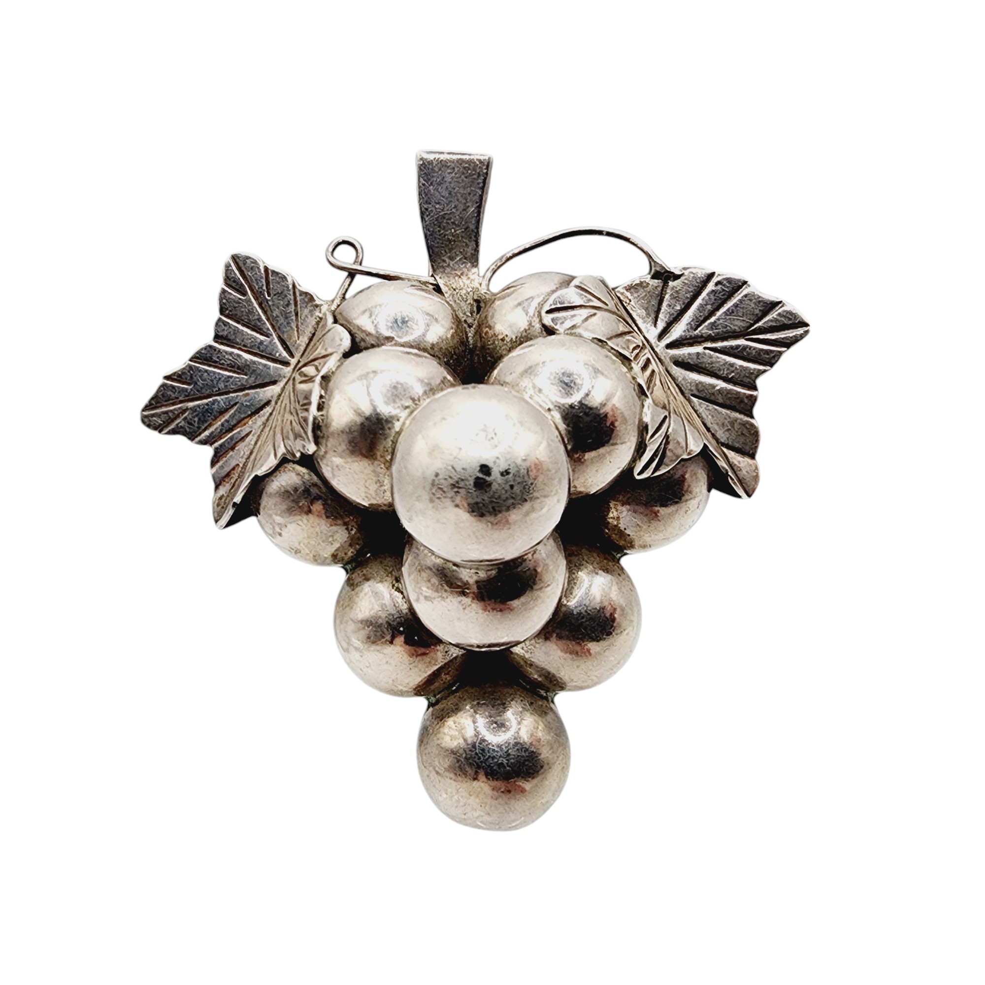 Signed Taxco TC-1? Sterling Cluster Grape Brooch