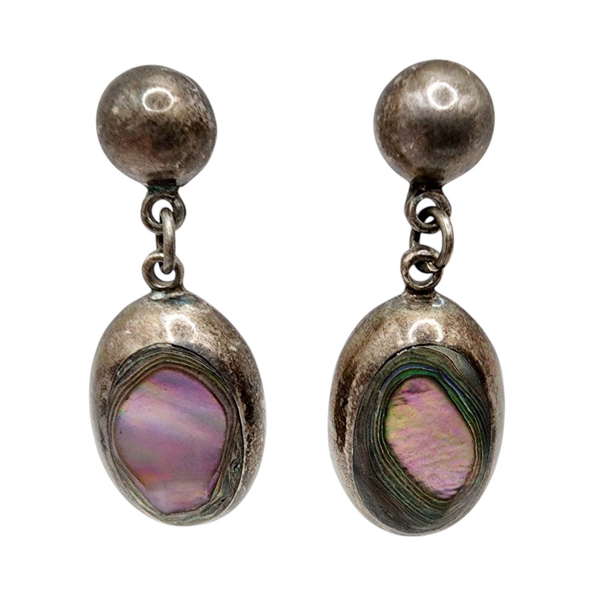Taxco TV-102 Vintage Sterling Abalone Earrings 12.1g