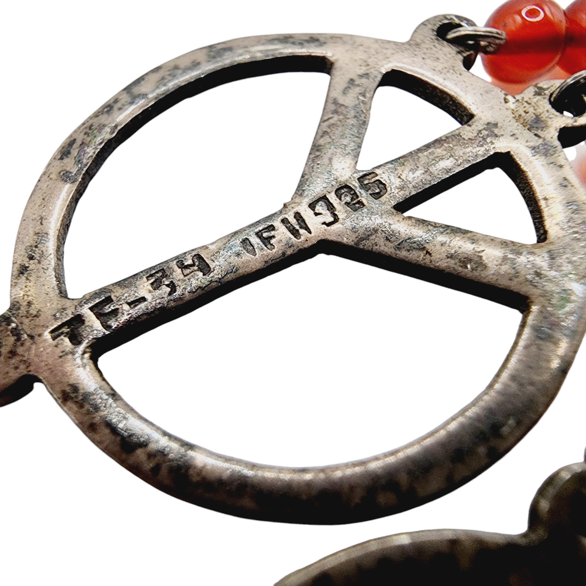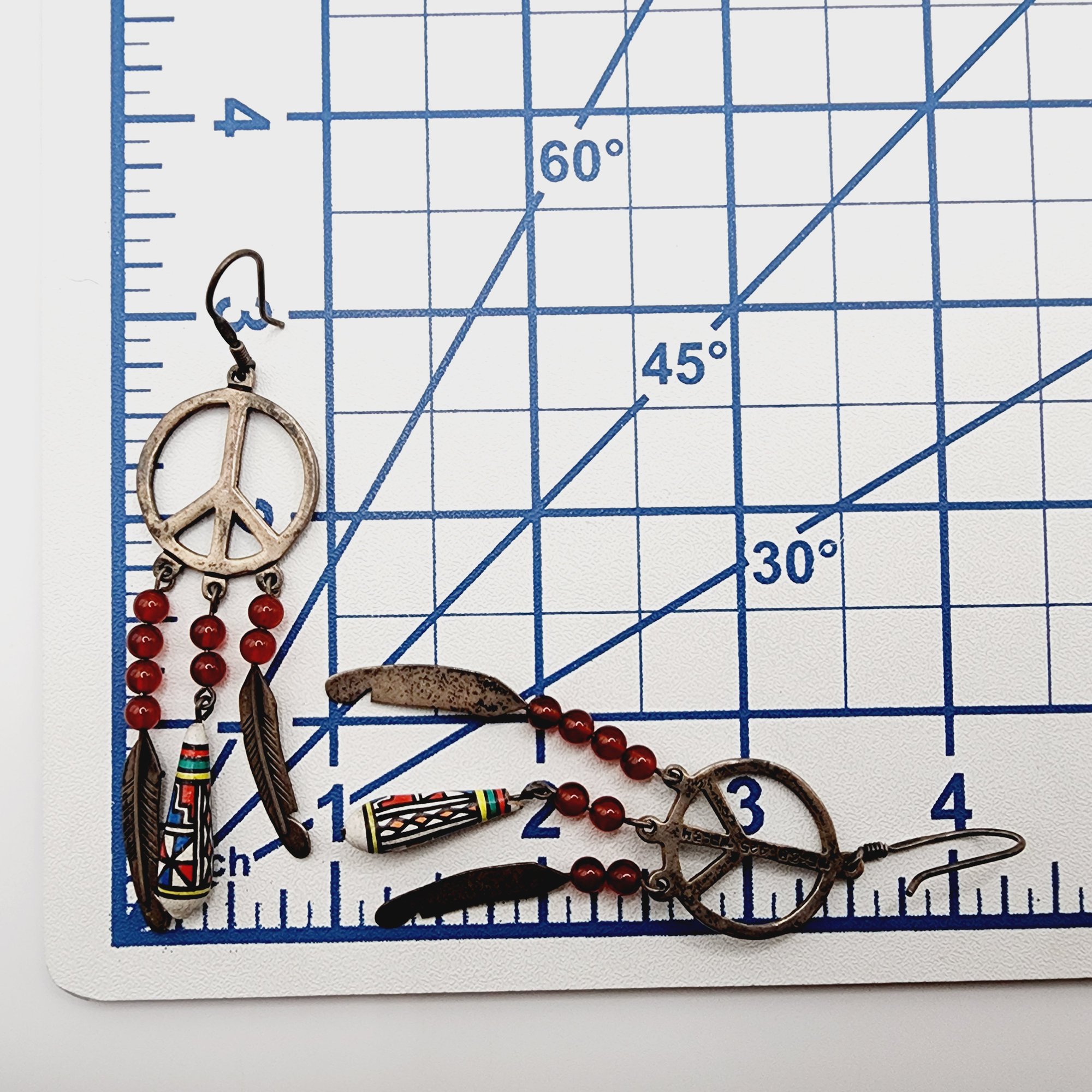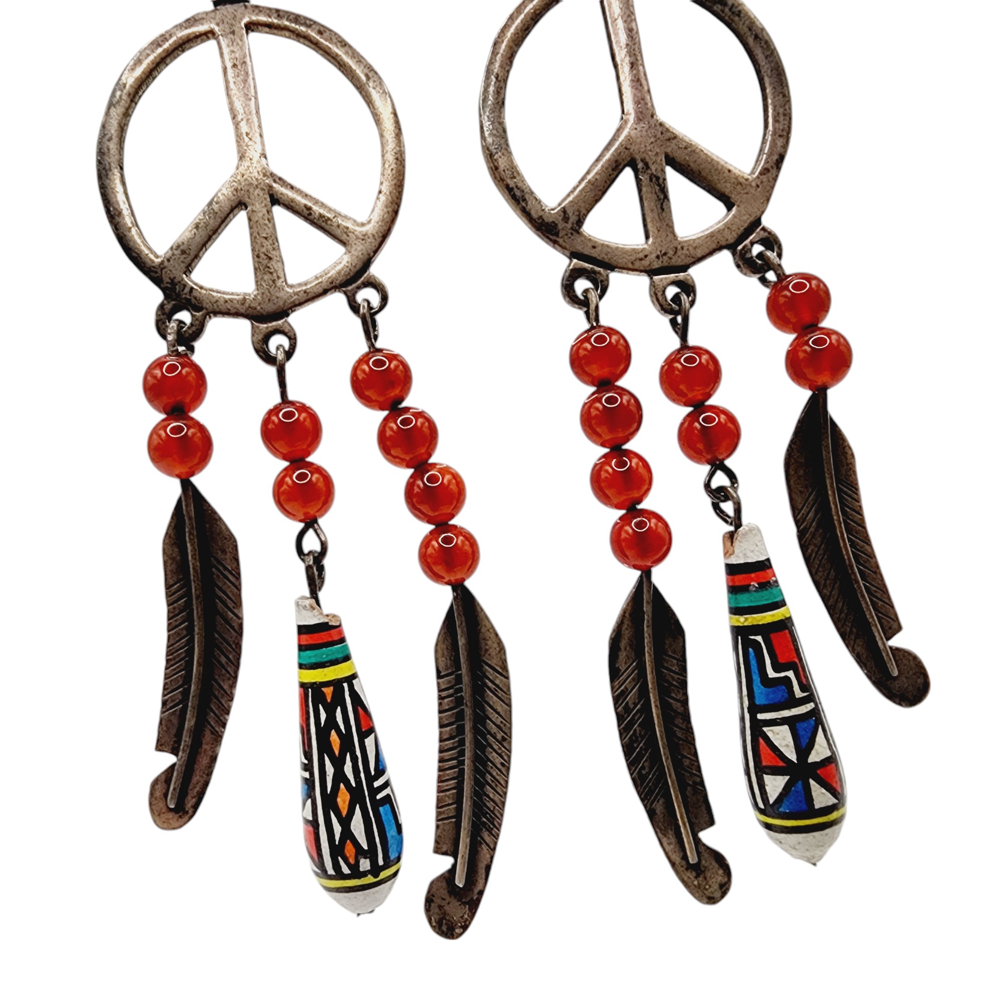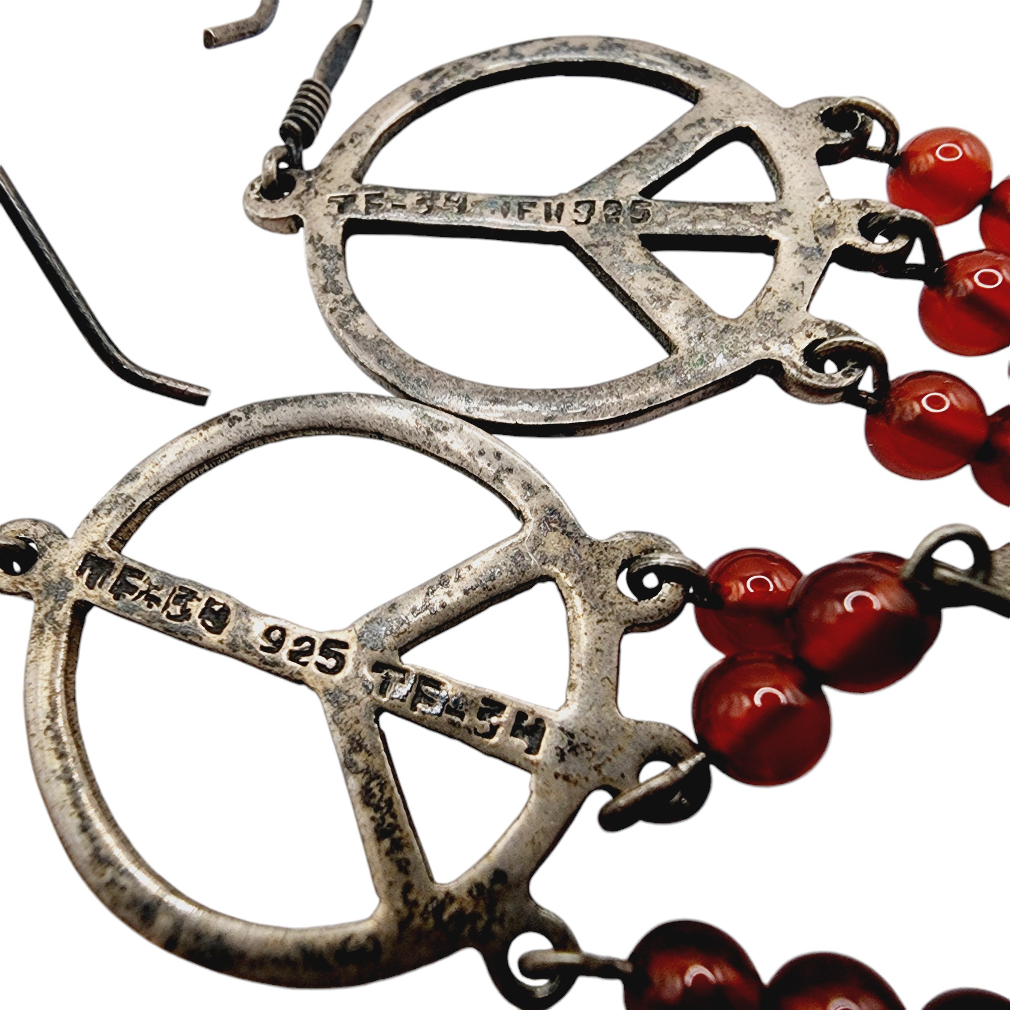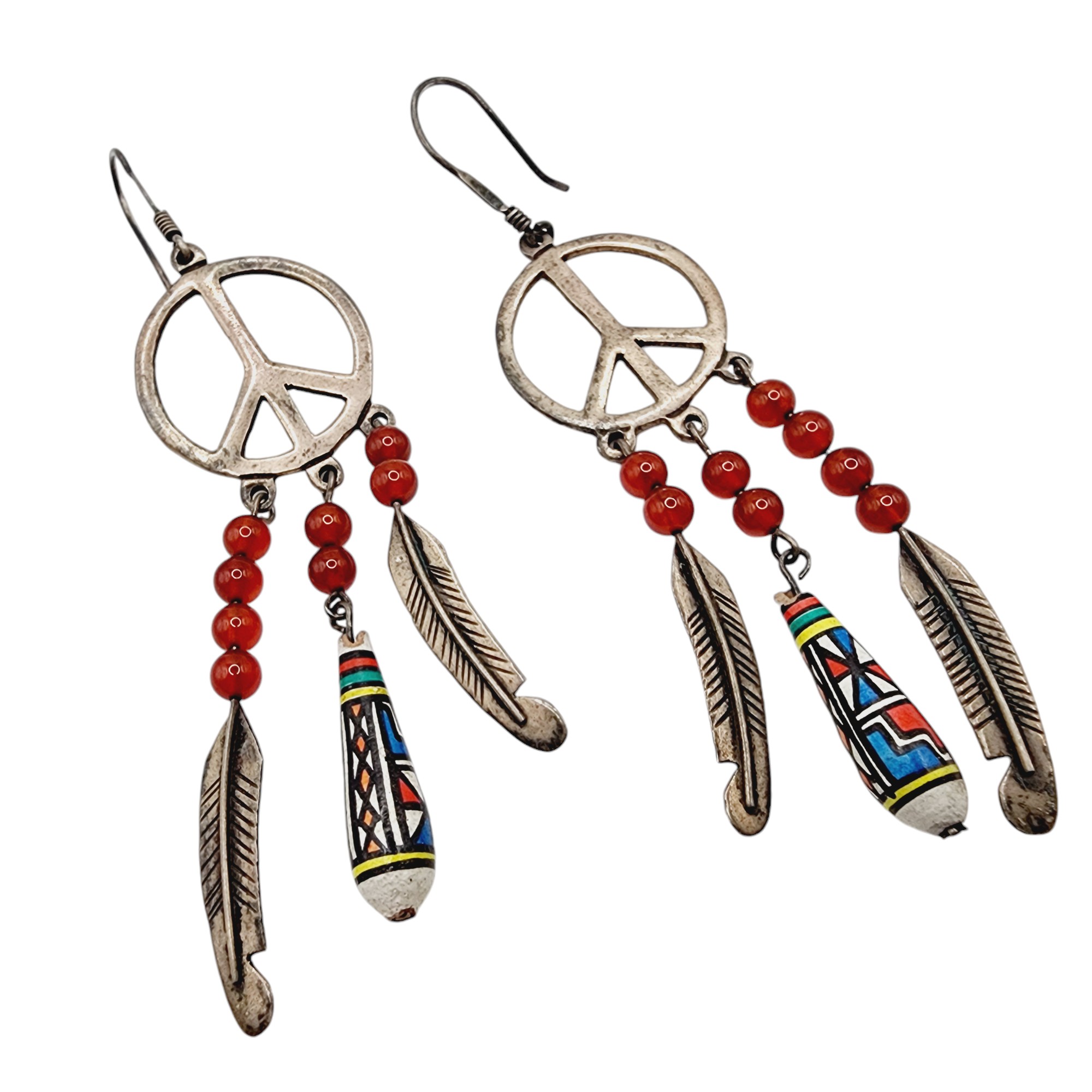 Signed Taxco TF-34 Mexico Vintage Sterling Peace Sign Feather Bead Earrings 12.5g
