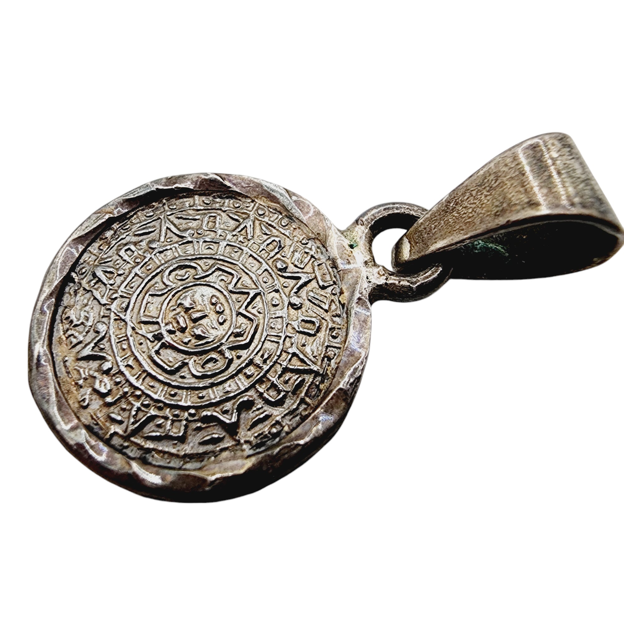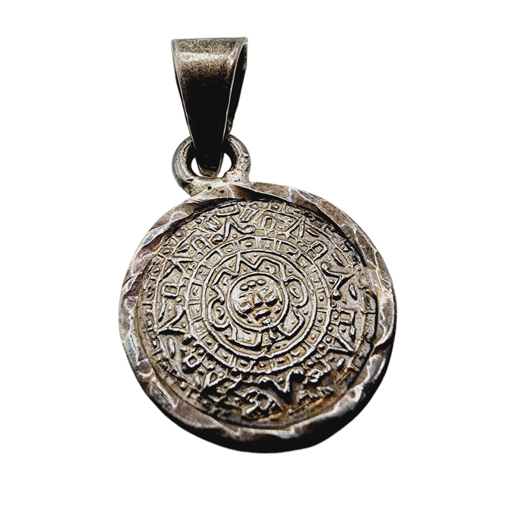 Vintage Sterling Mayan Aztec Calendar Pendant 3.9g