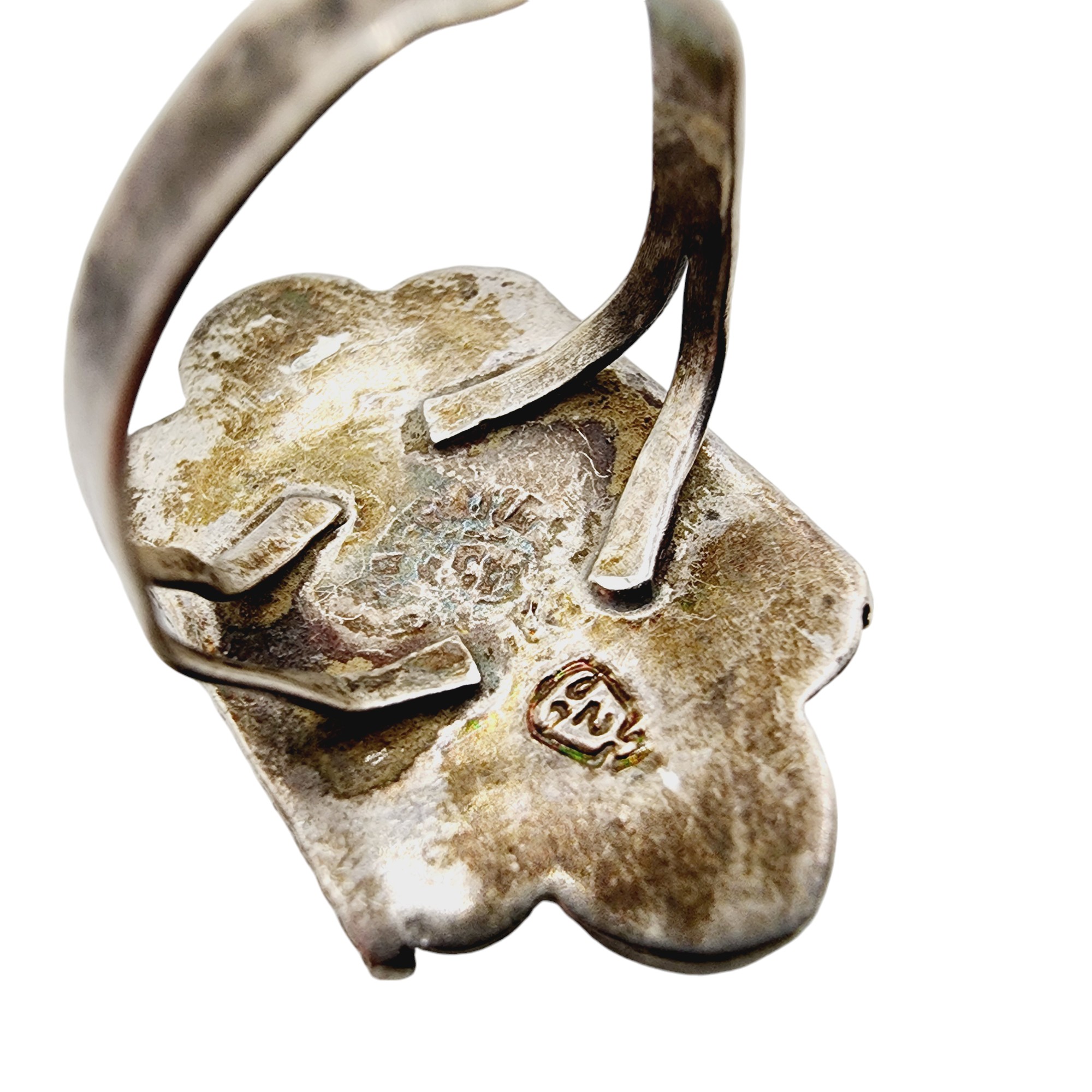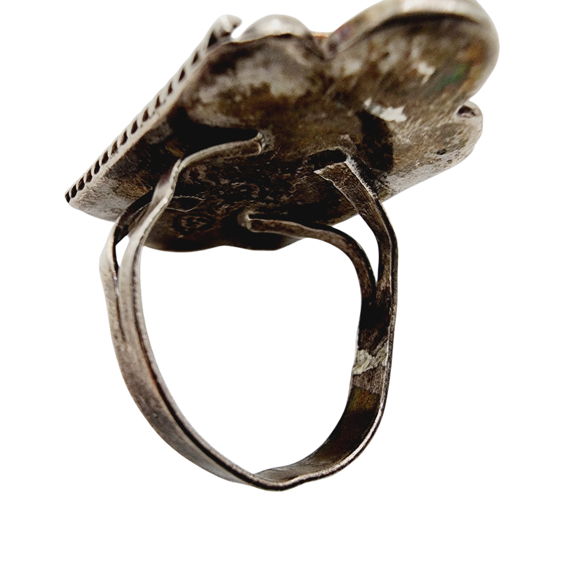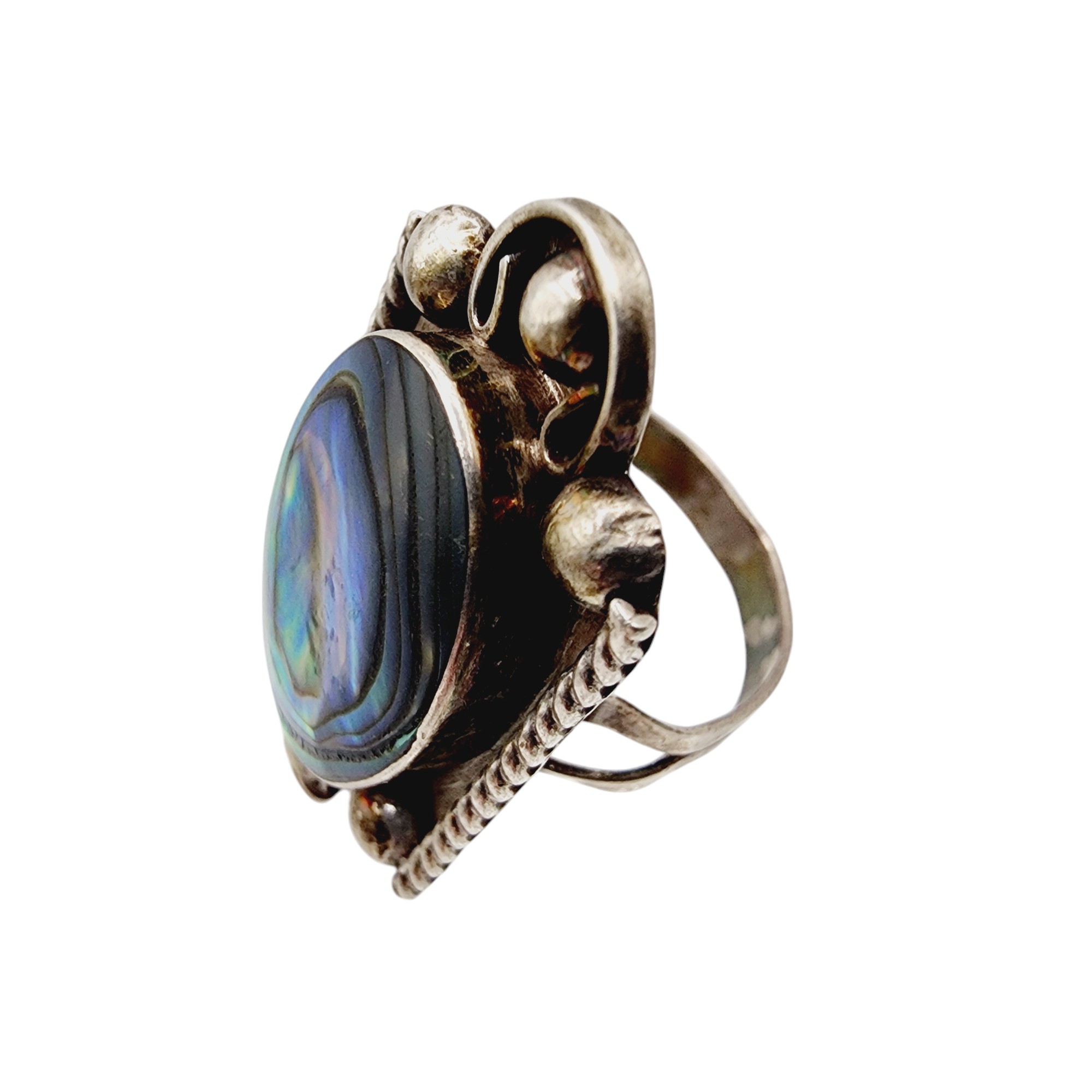 Vintage Eagle 2 Sterling Abalone Ring Sz 6 5.2g, as is, warped ring band