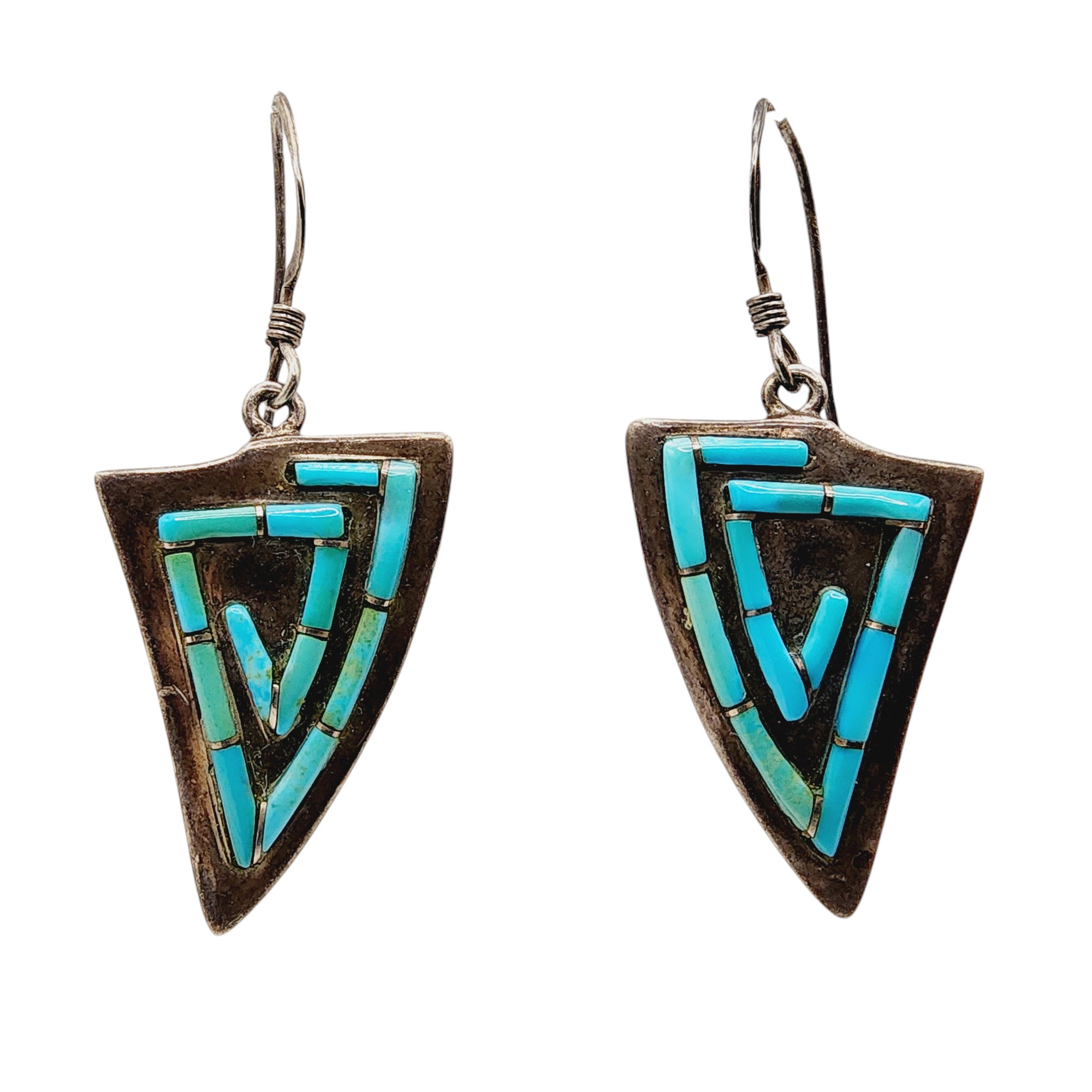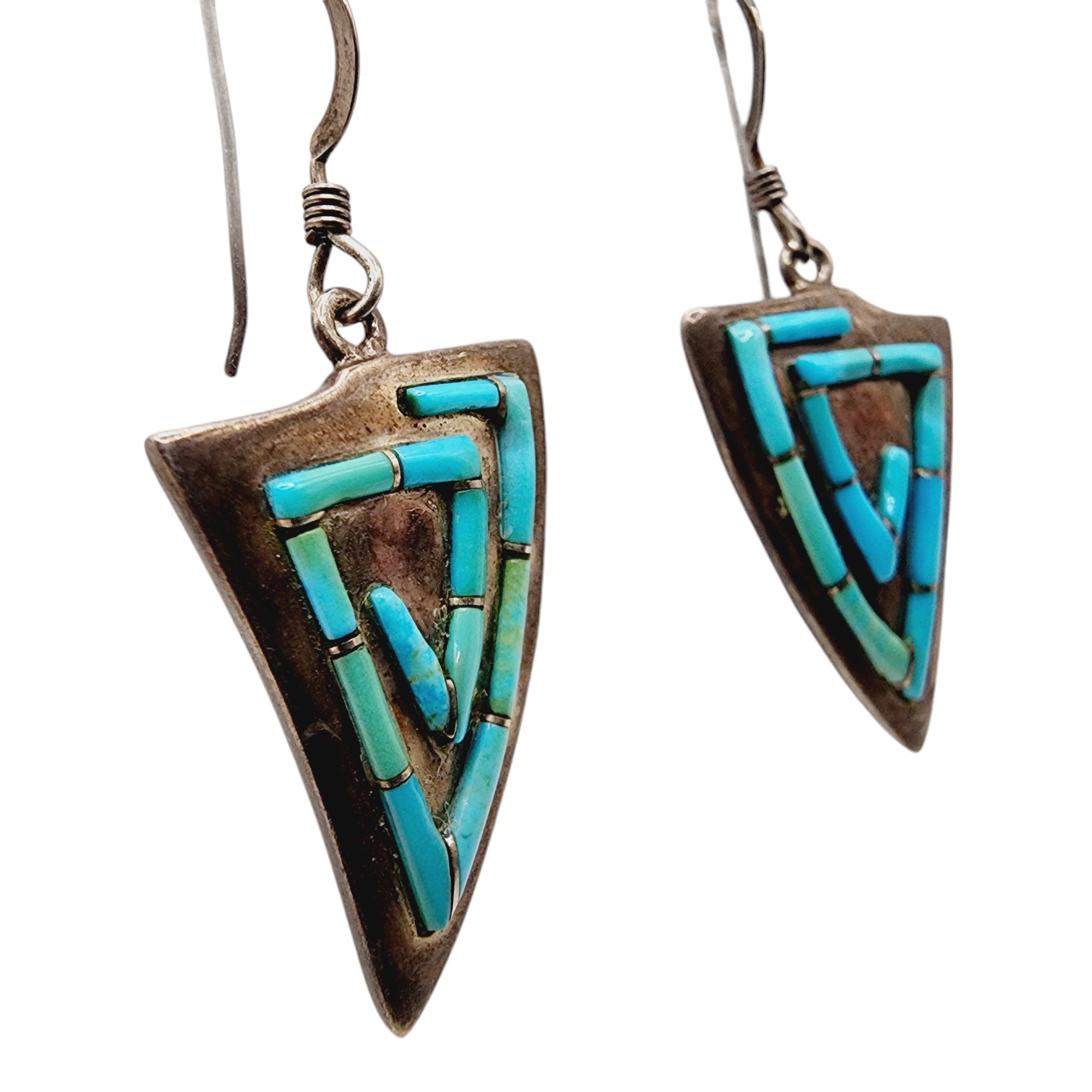 Signed Turquoise Inlay Earrings 7.4g