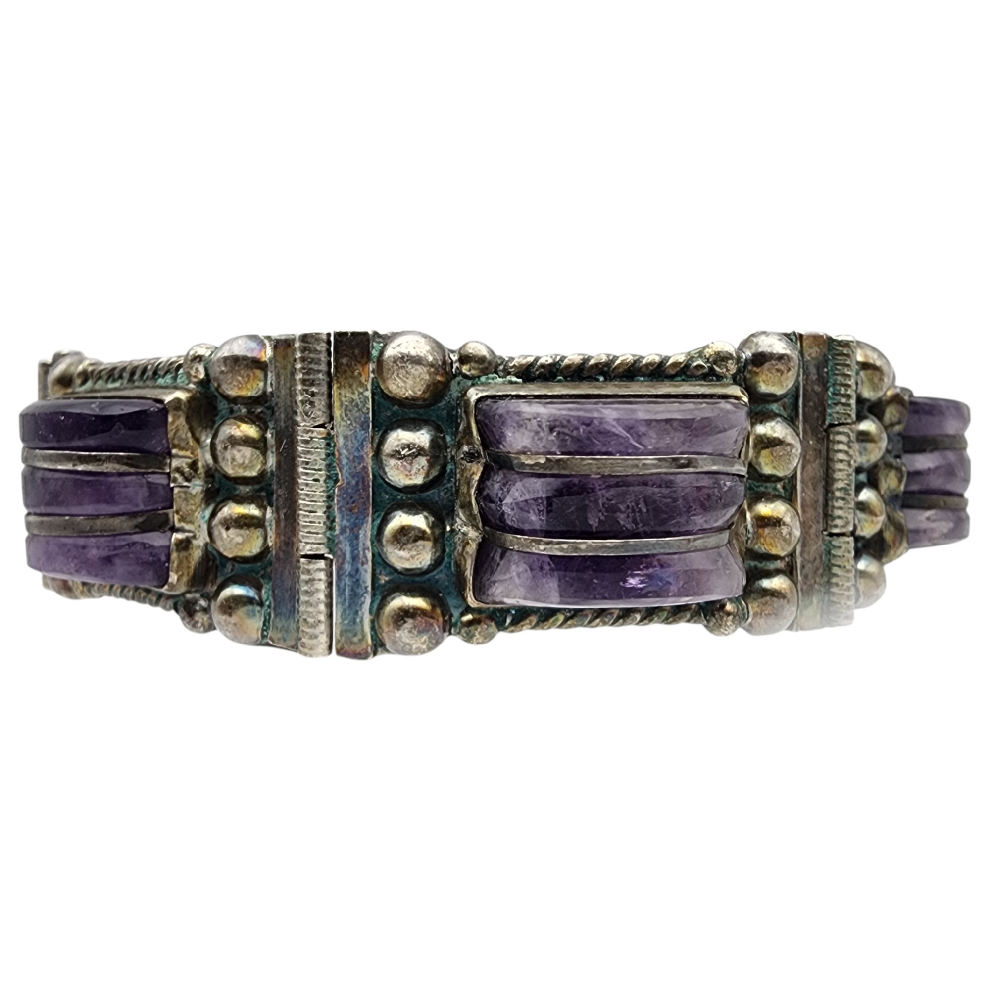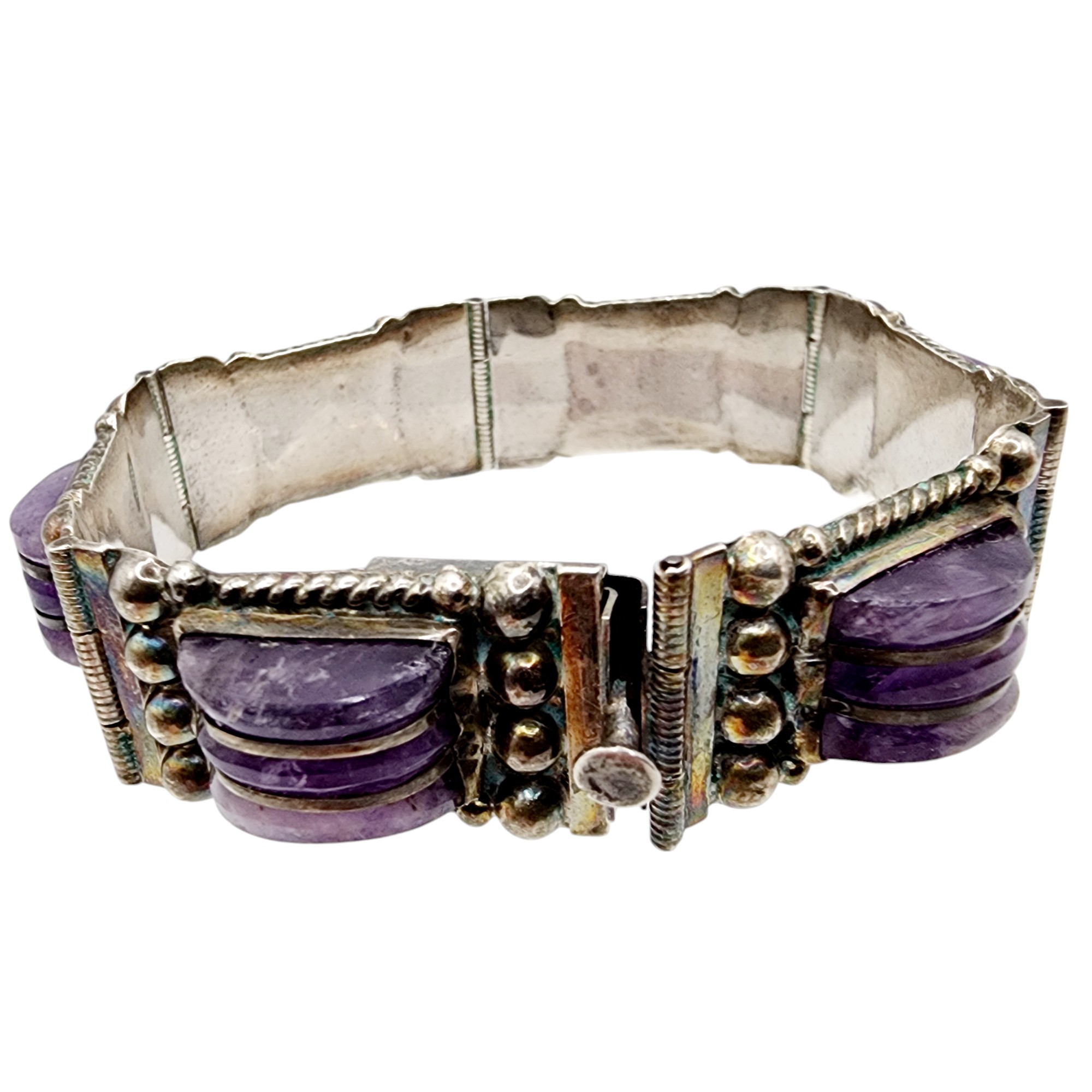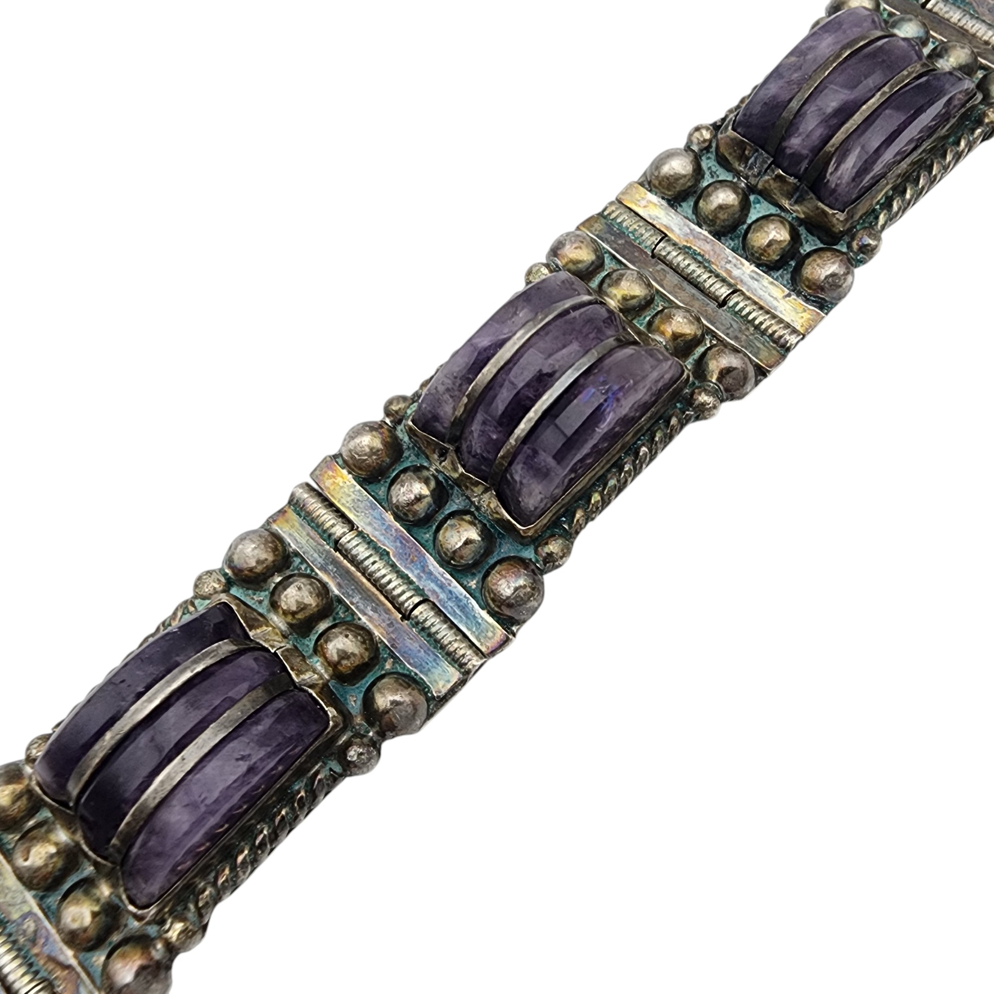 Amazing Signed Vintage Mexico Sterling Amethyst Bracelet 35.5g