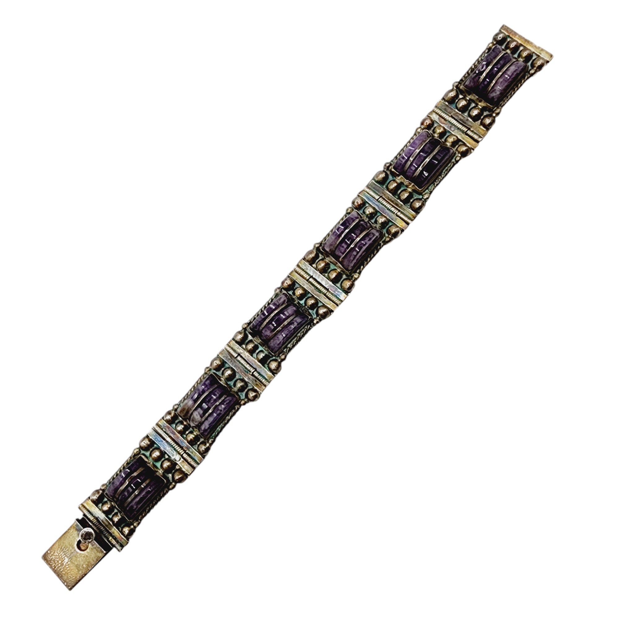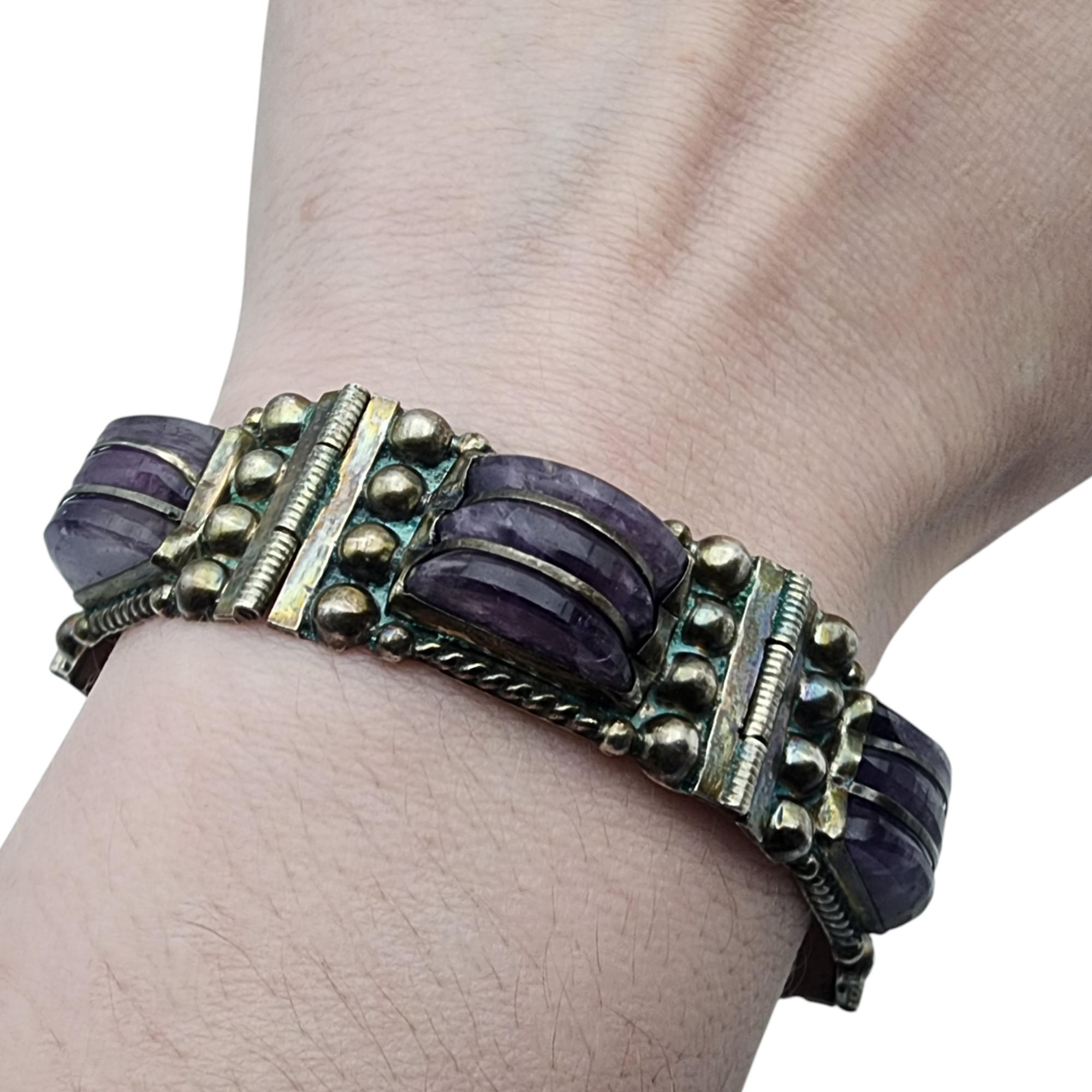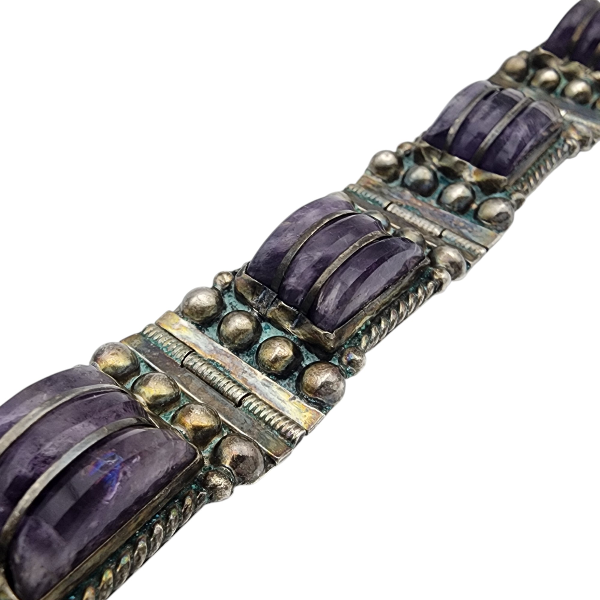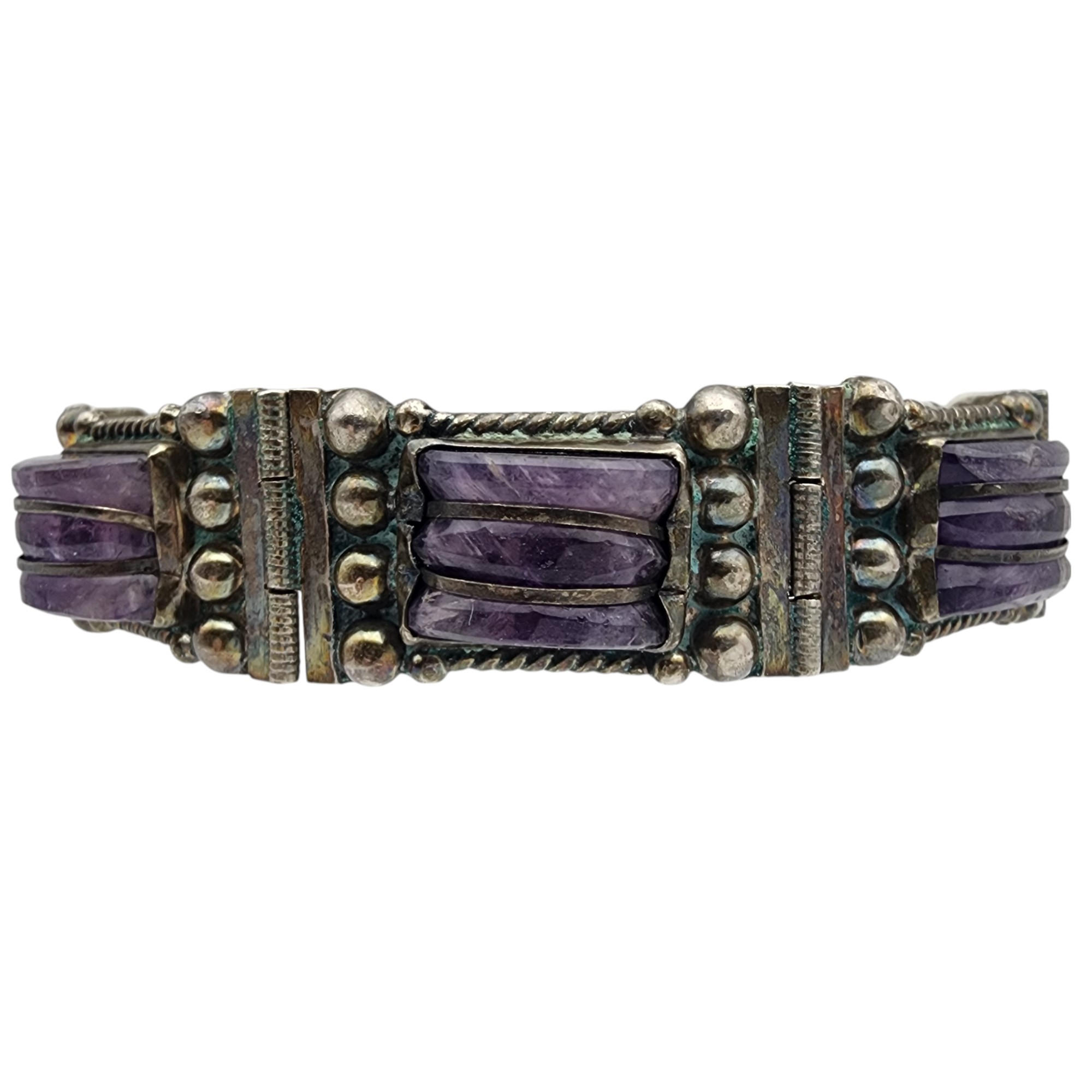 Amazing Signed Vintage Mexico Sterling Amethyst Bracelet 35.5g