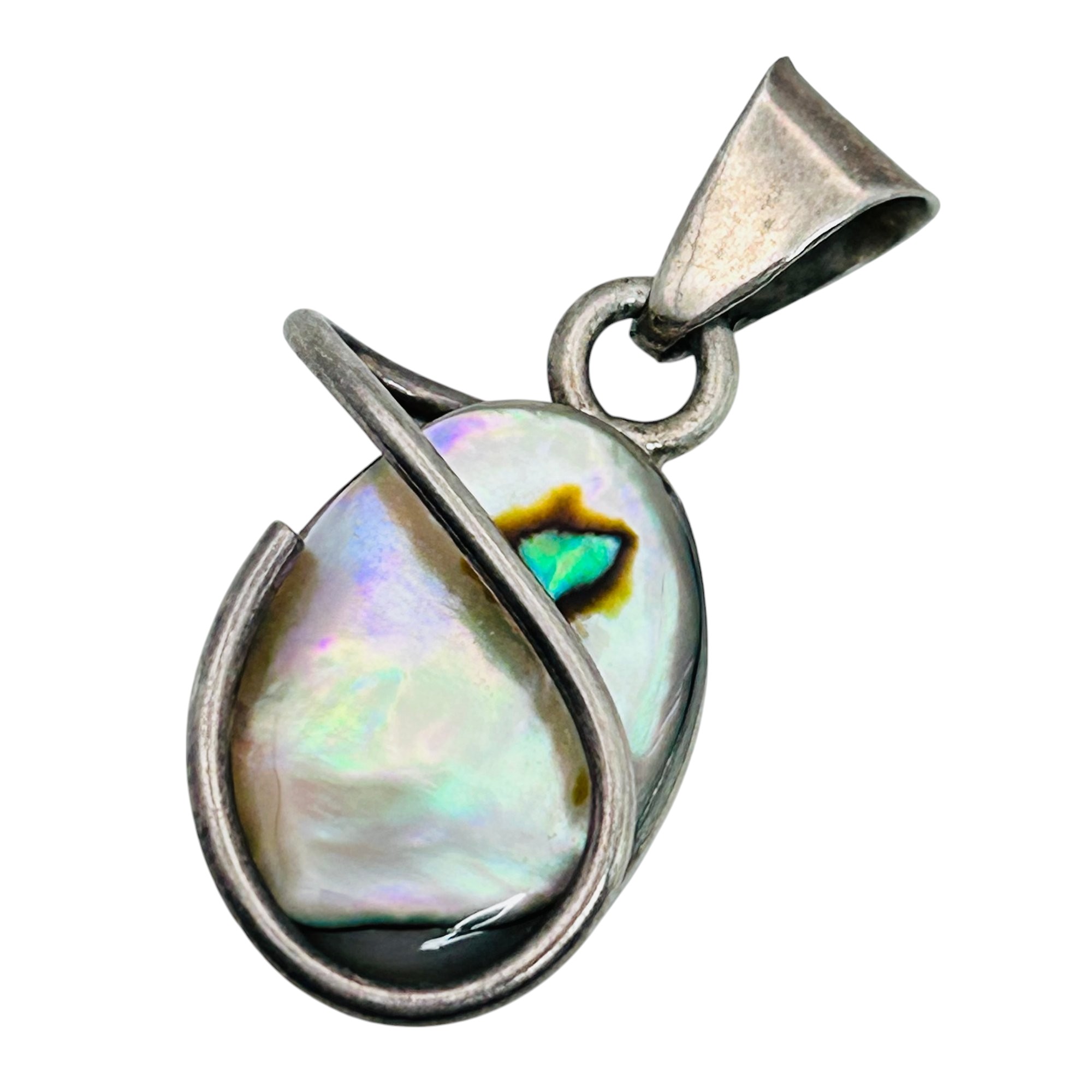 Mexico Abalone Sterling Oval Pendant, 8.38 G