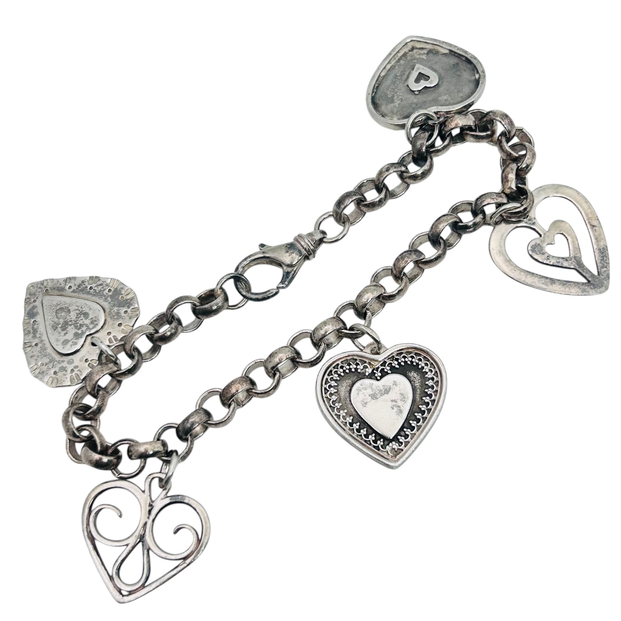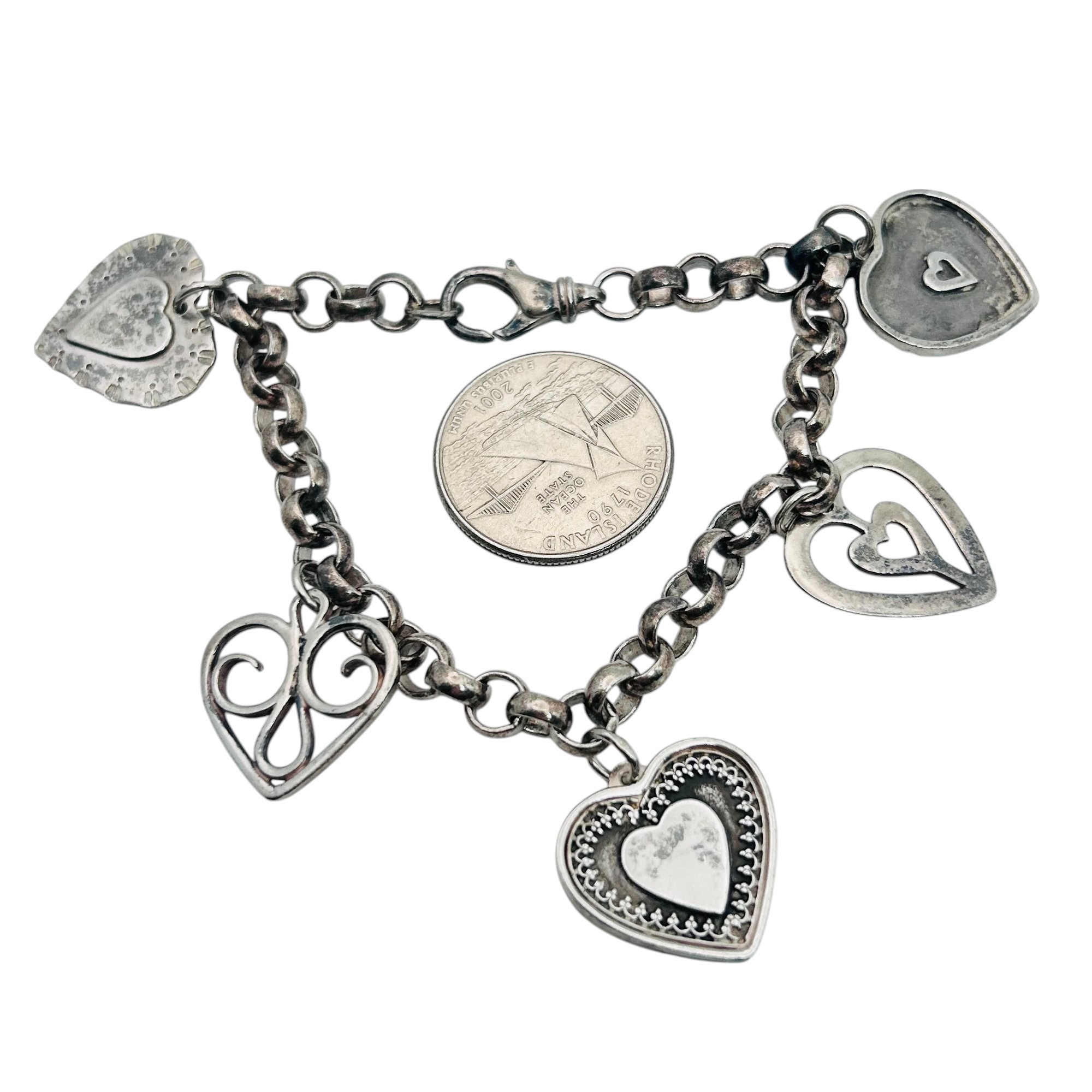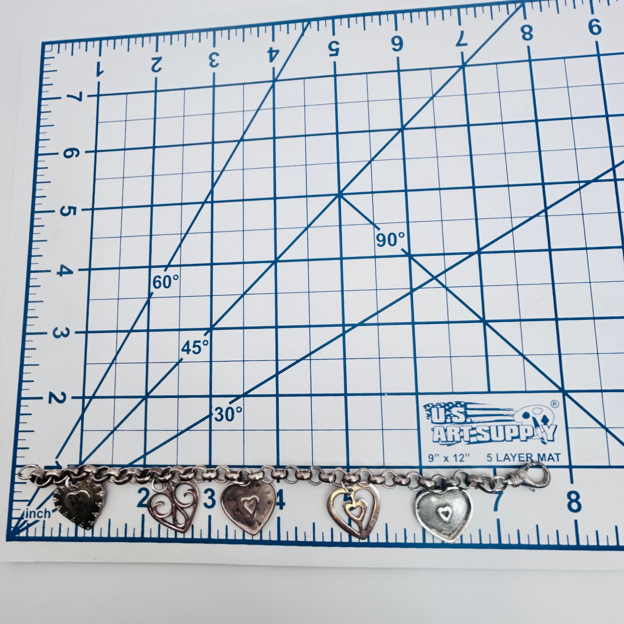 Sterling Signed Heart Charm Bracelet 27.02 G