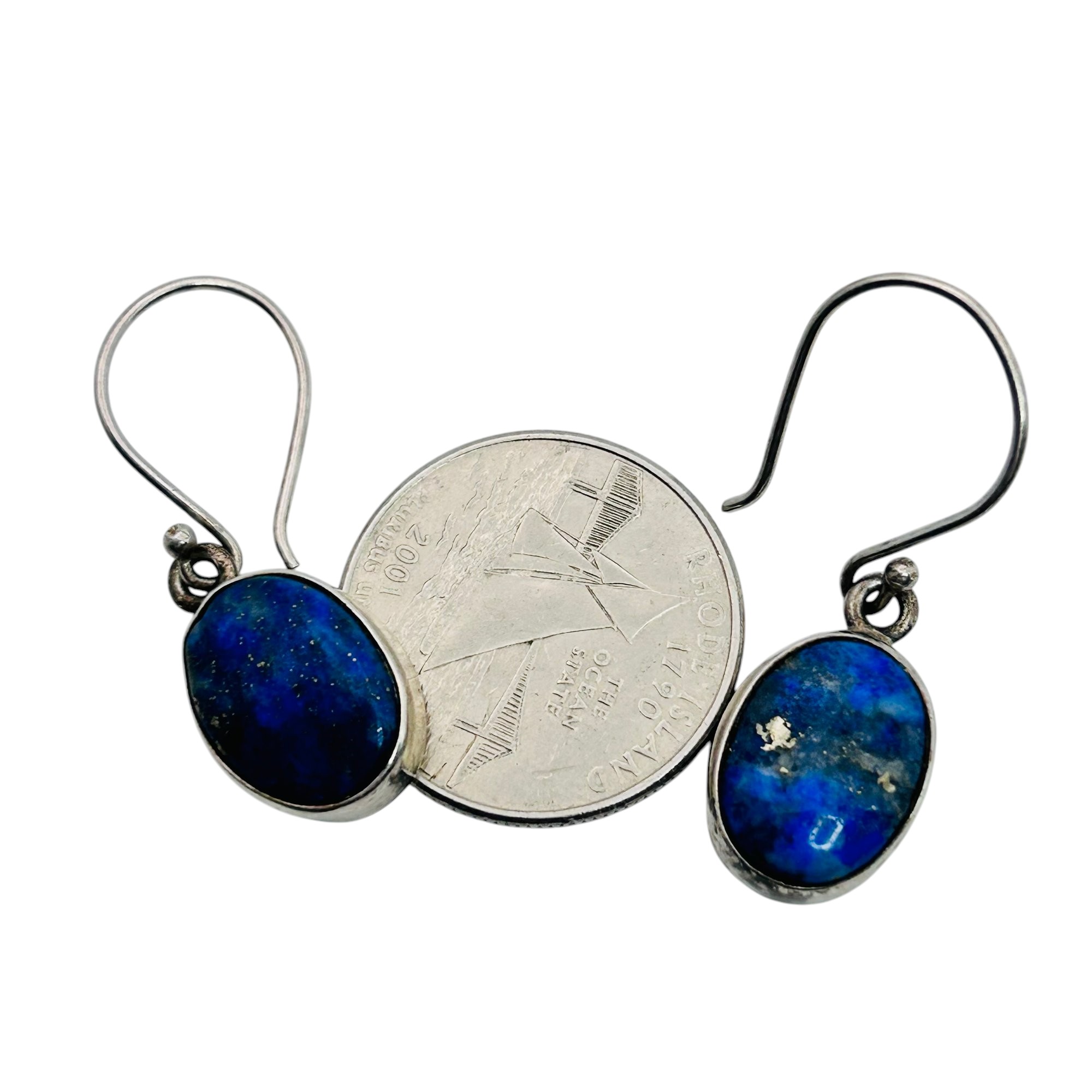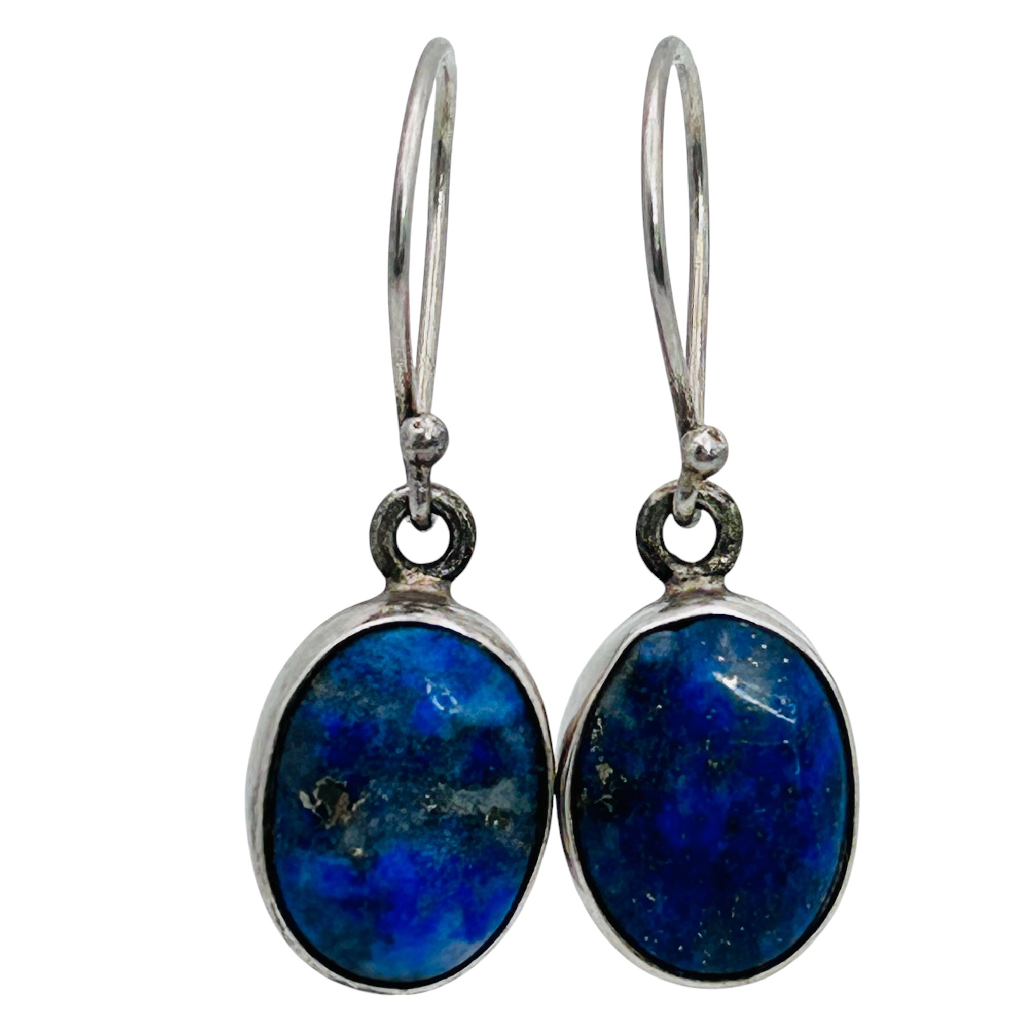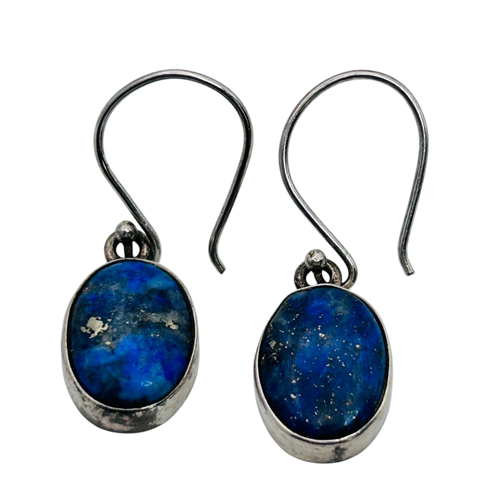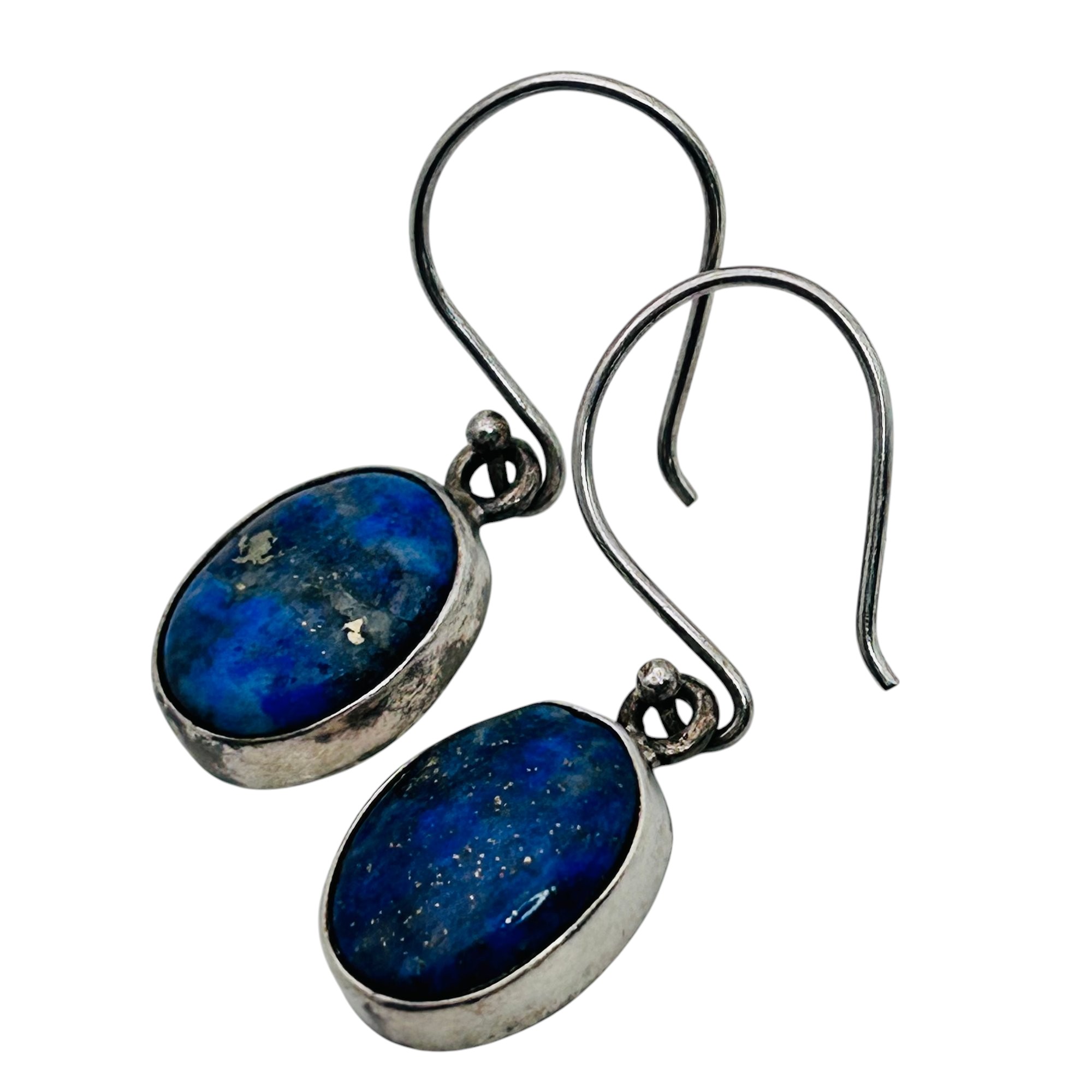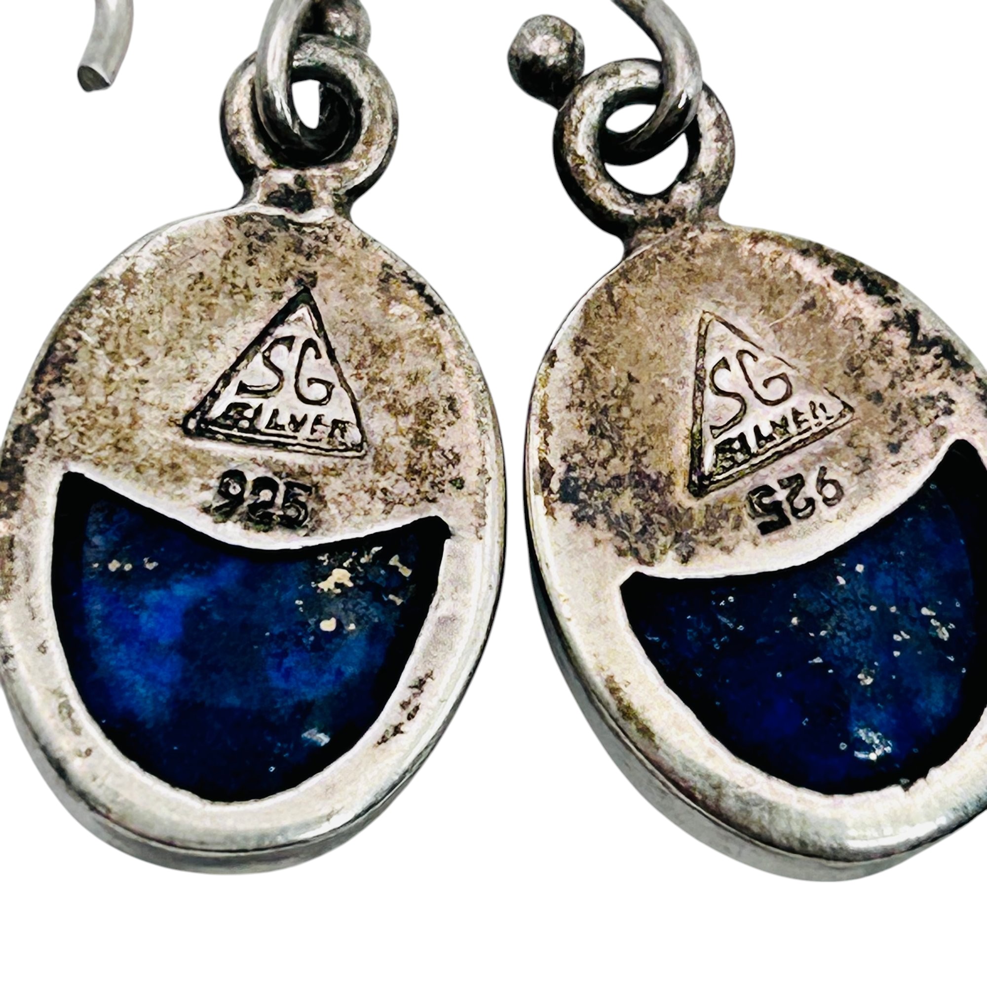Lapis lazuli signed SG silver sterling oval hook back earrings 6.48 g