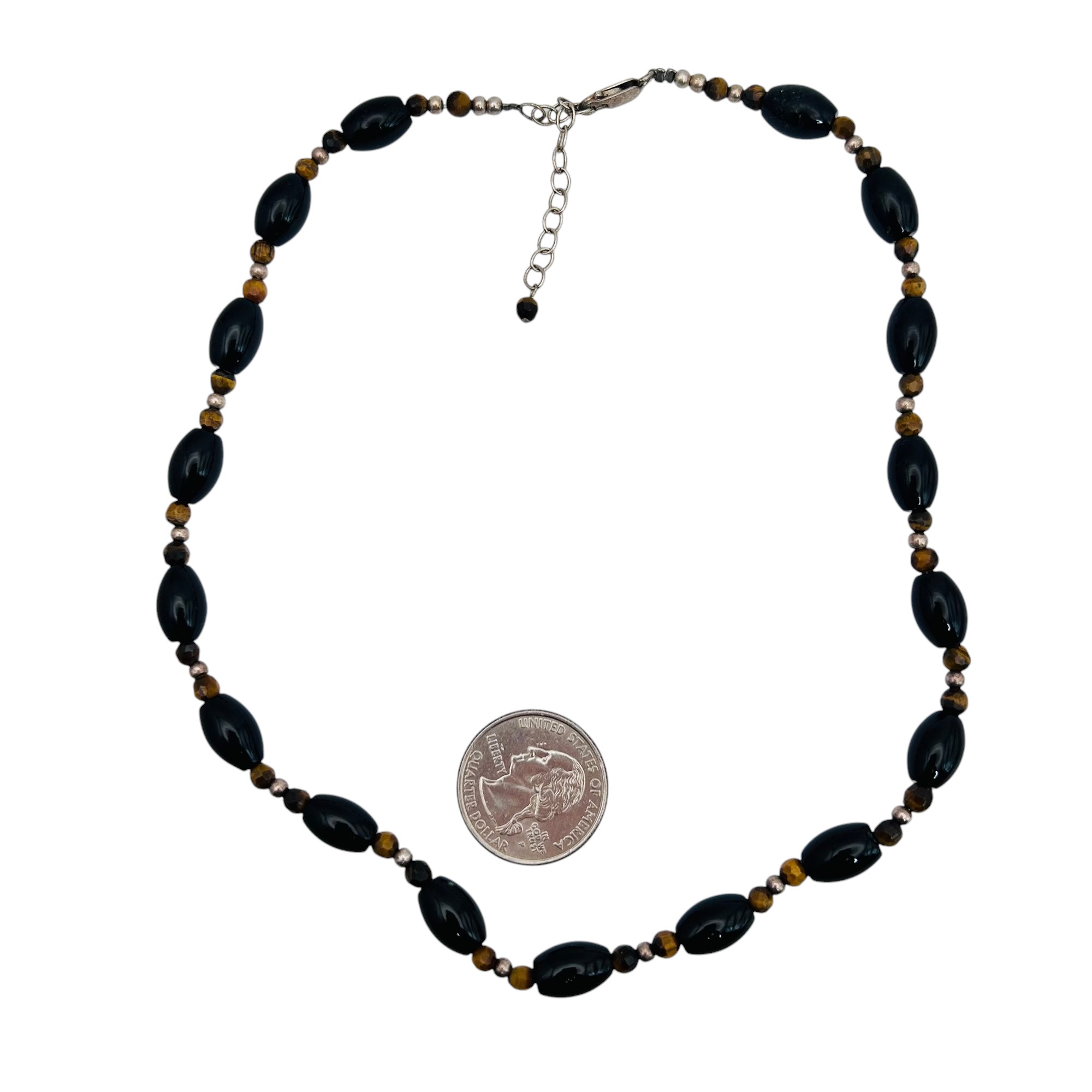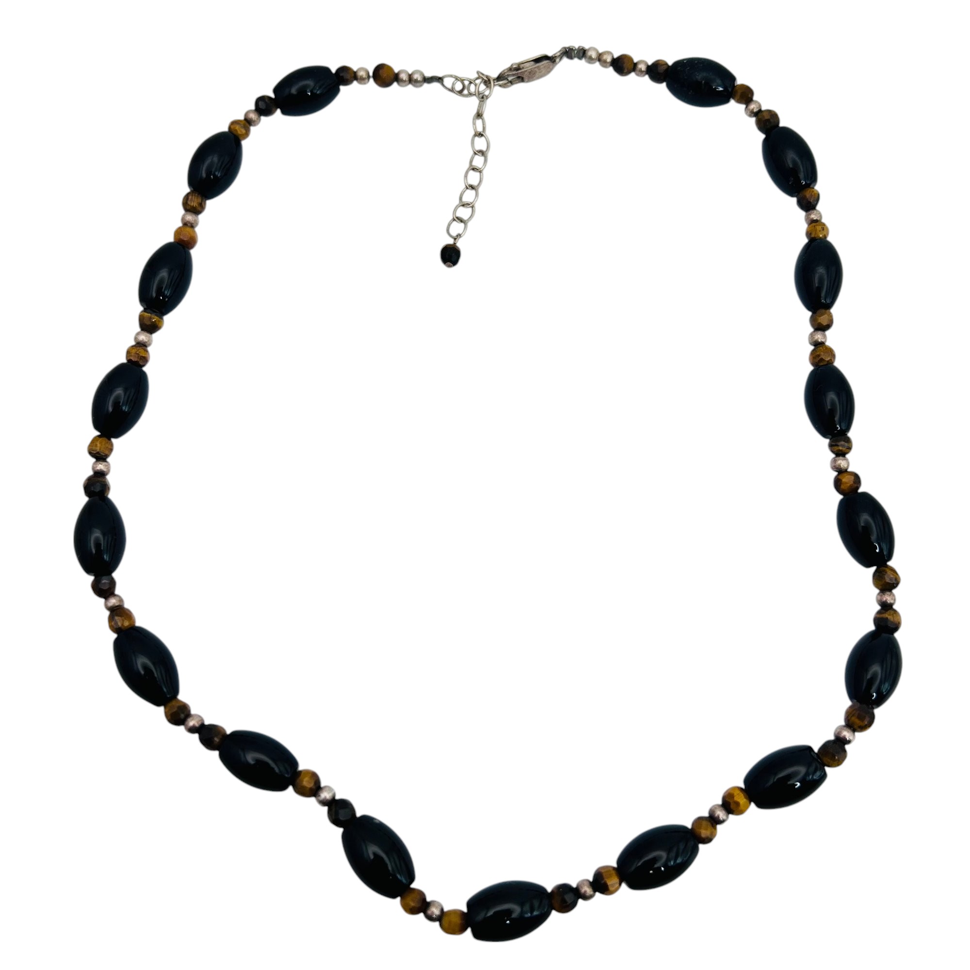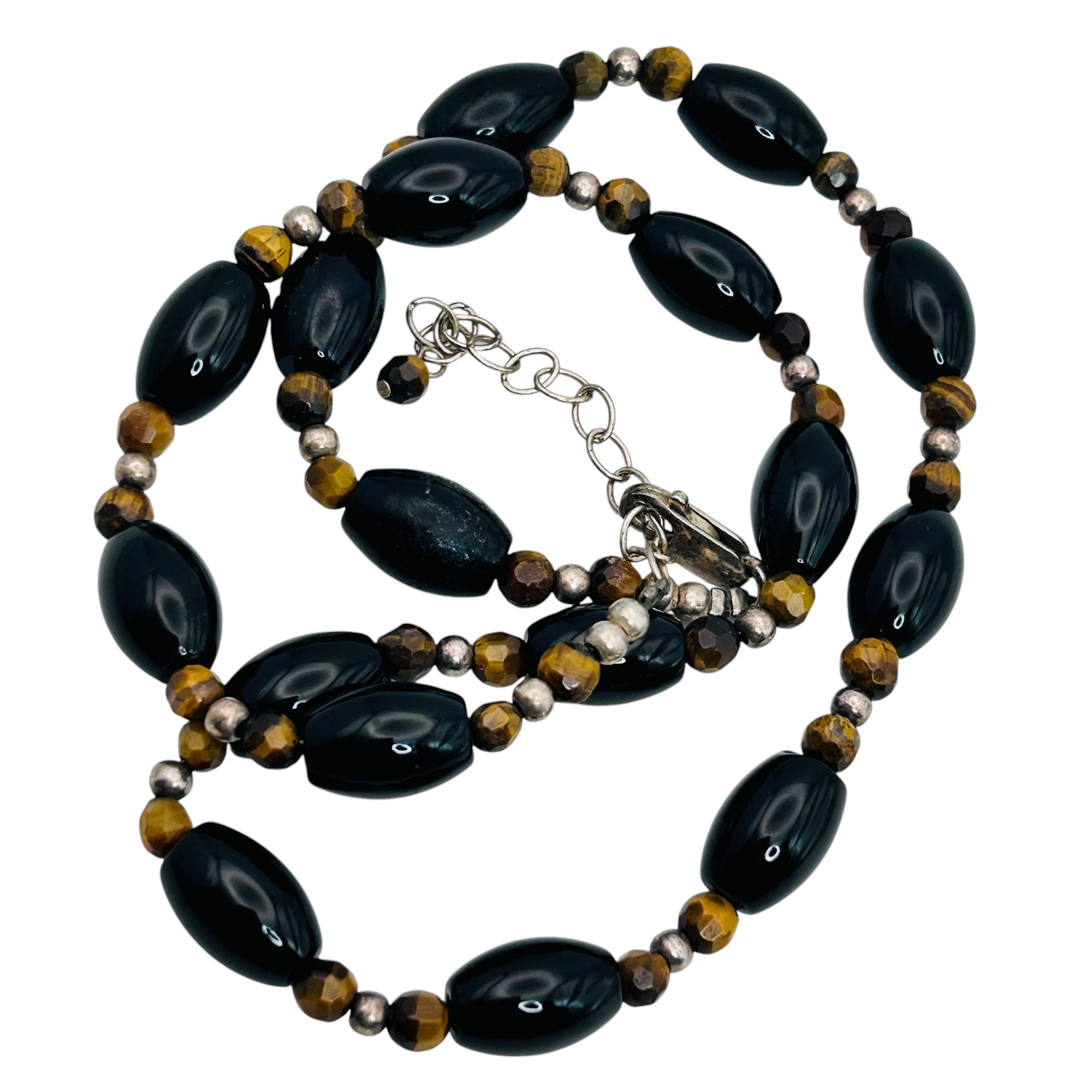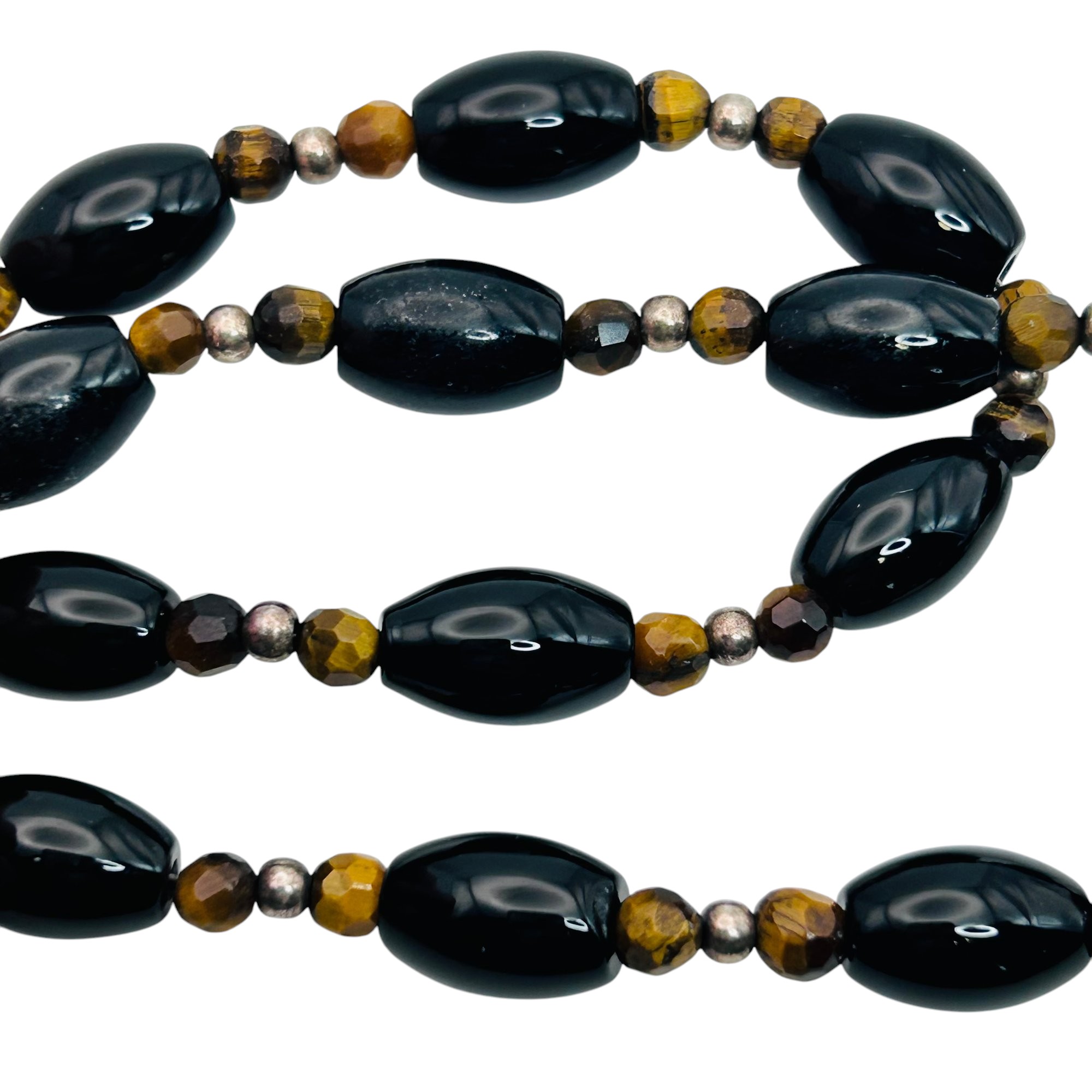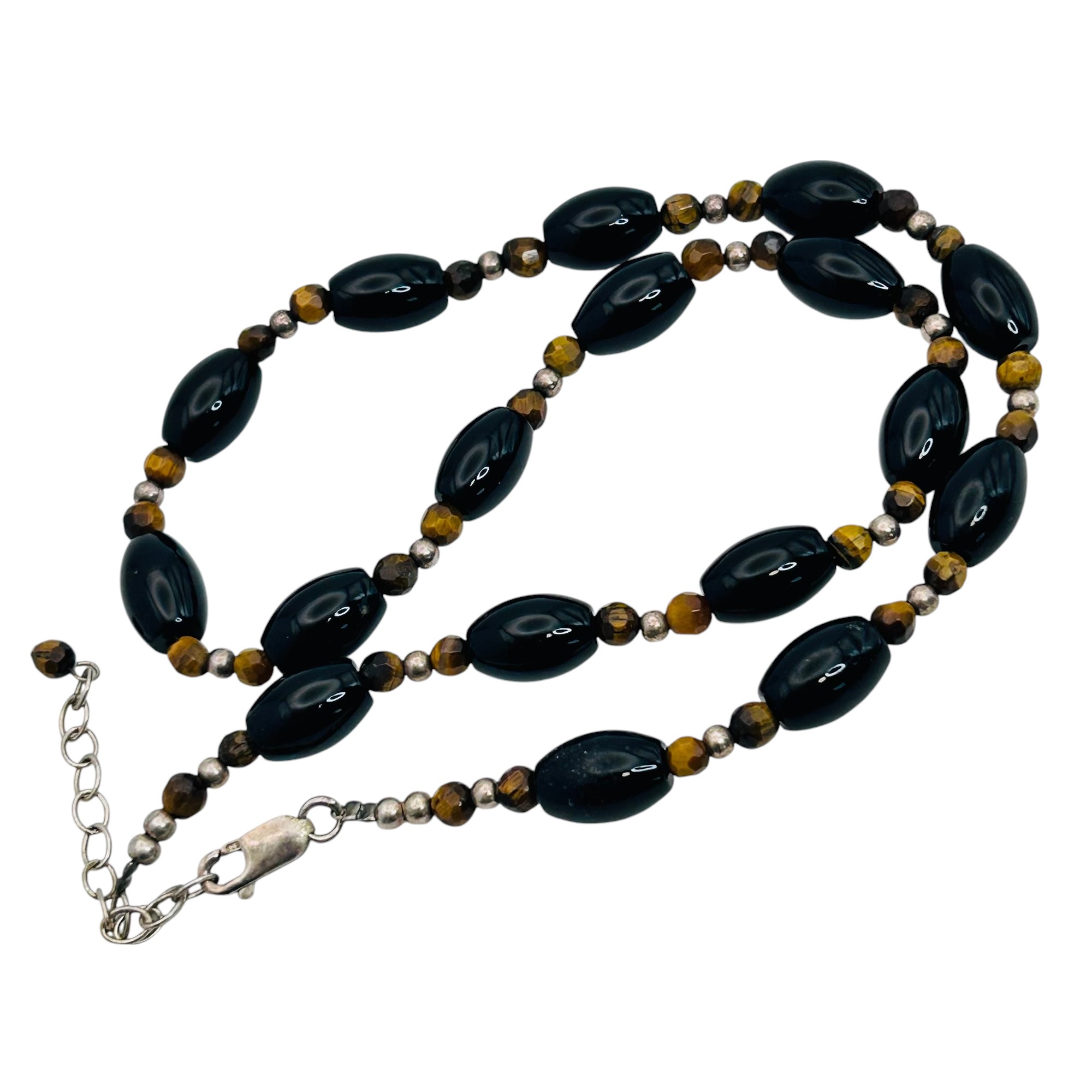 ONYX and Tigers eye Sterling adjustable chain necklace 24 g