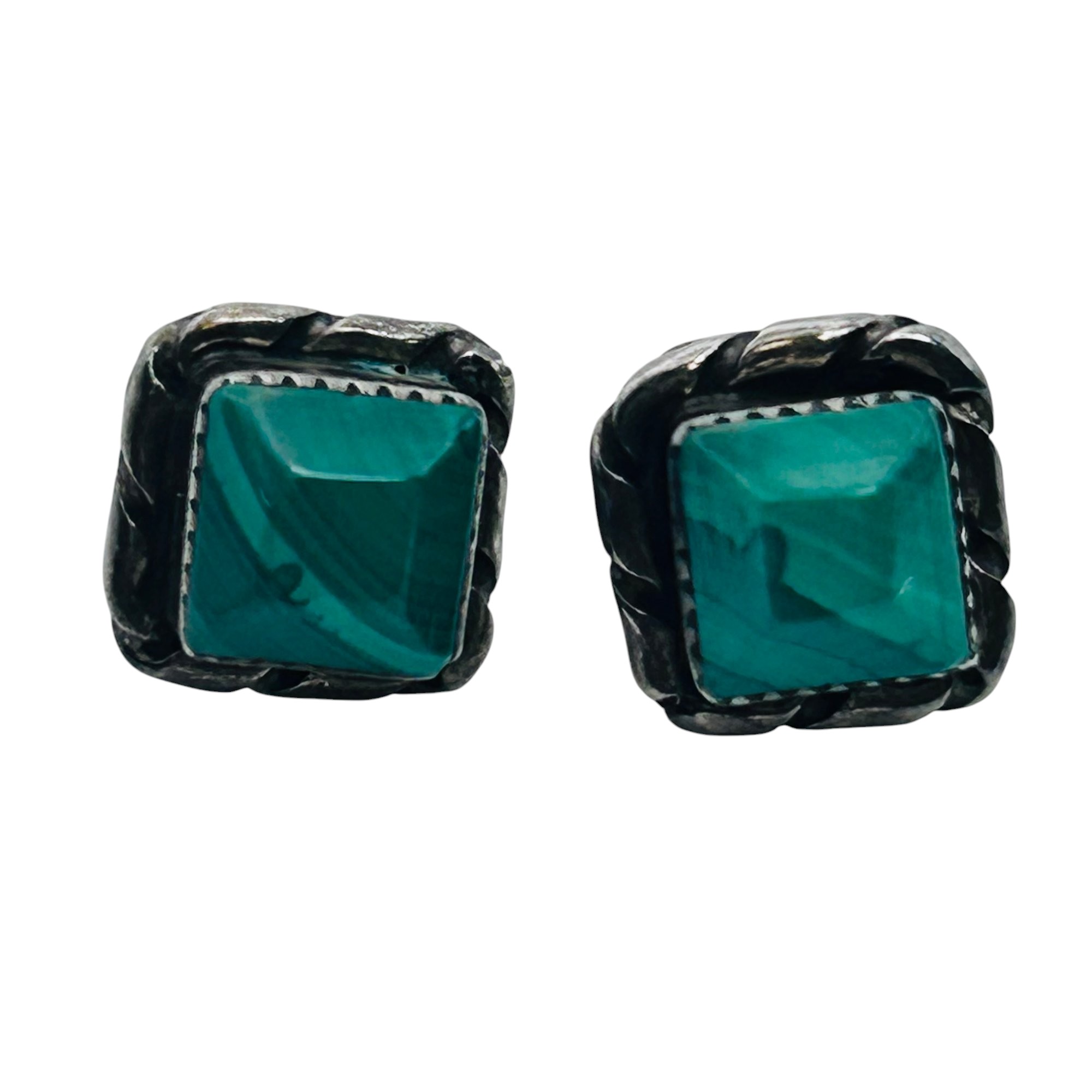 Navajo MALACHITE Sterling stud earrings 1.73 g