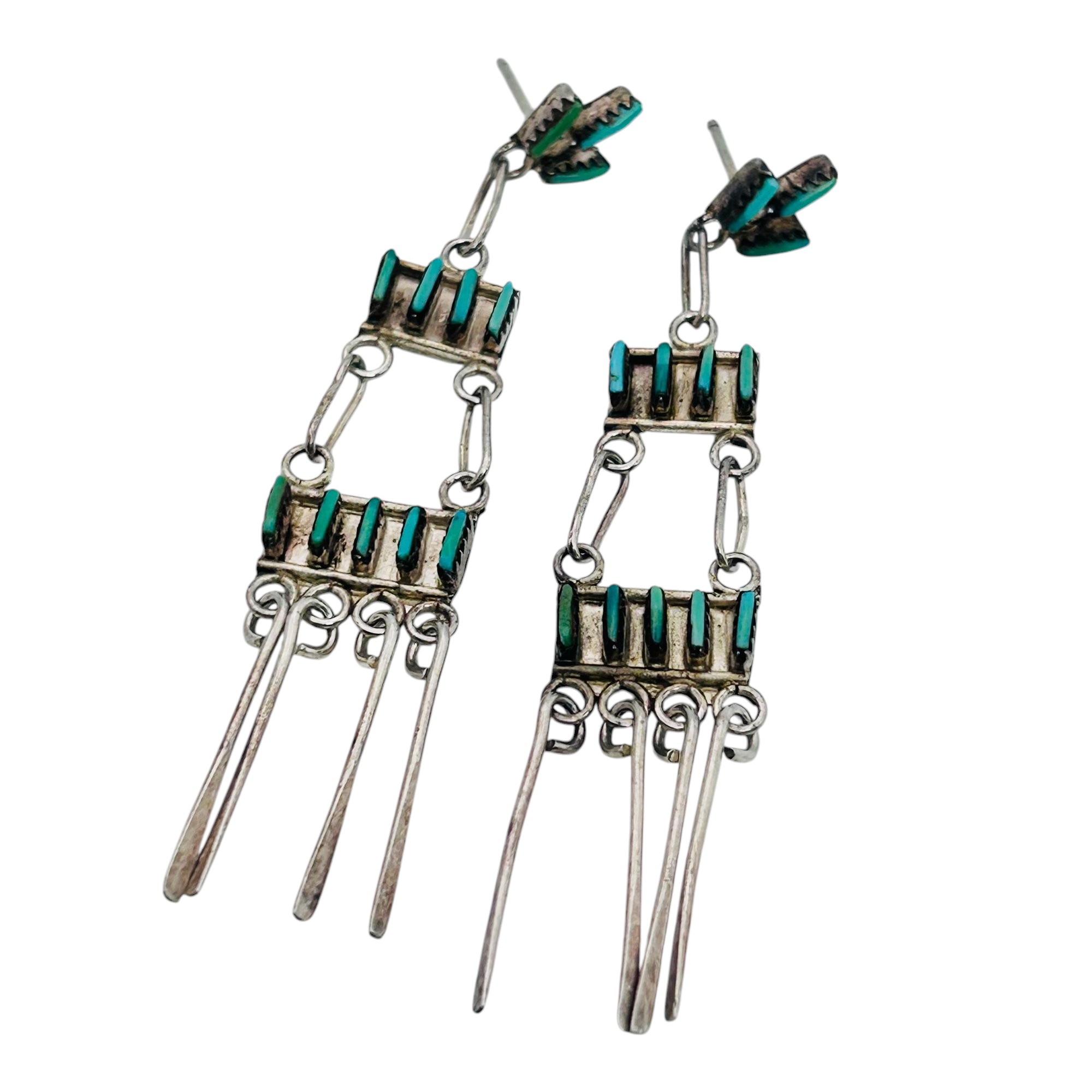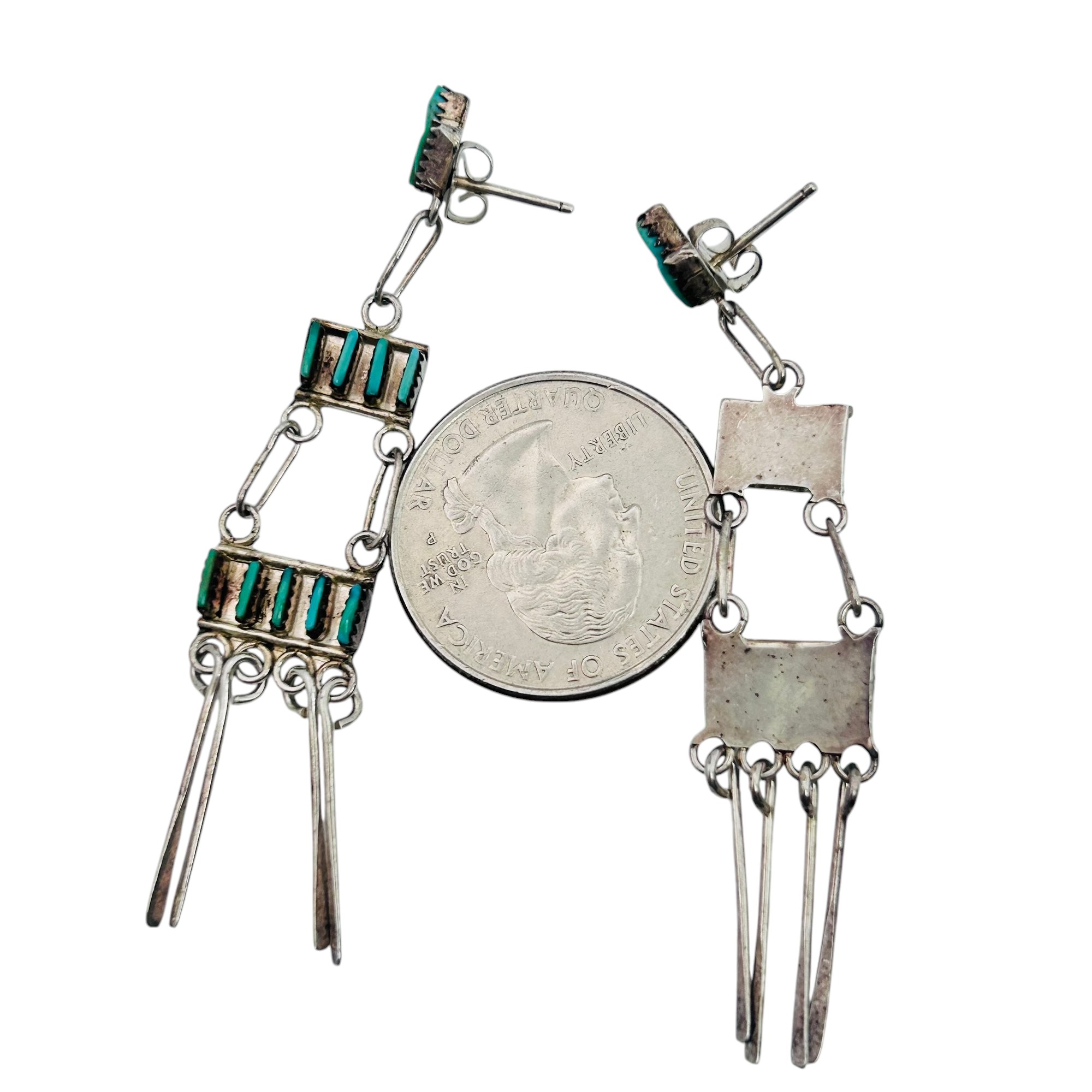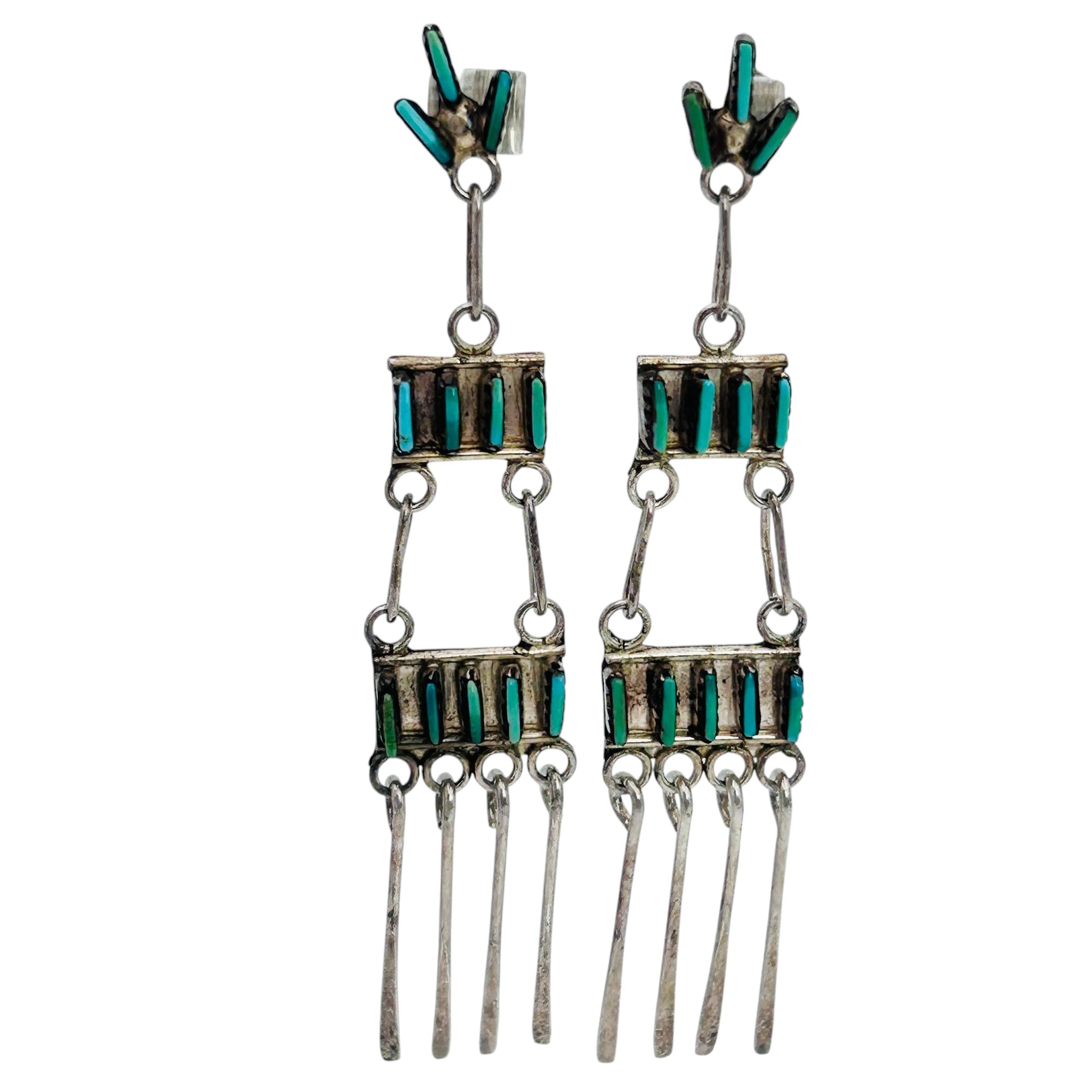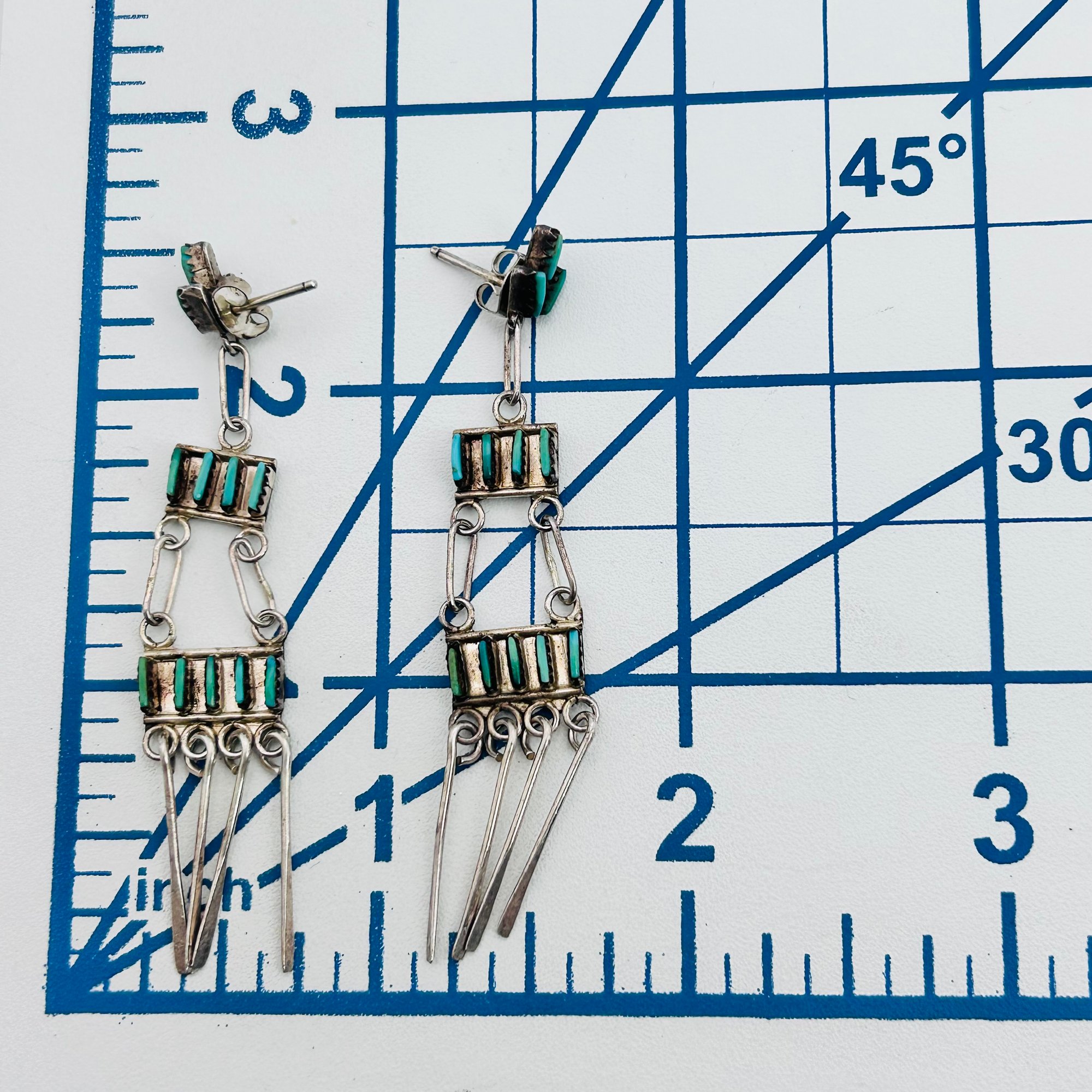 Zuni Turquoise Needlepoint Chandelier Waterfall Earrings 4.73g