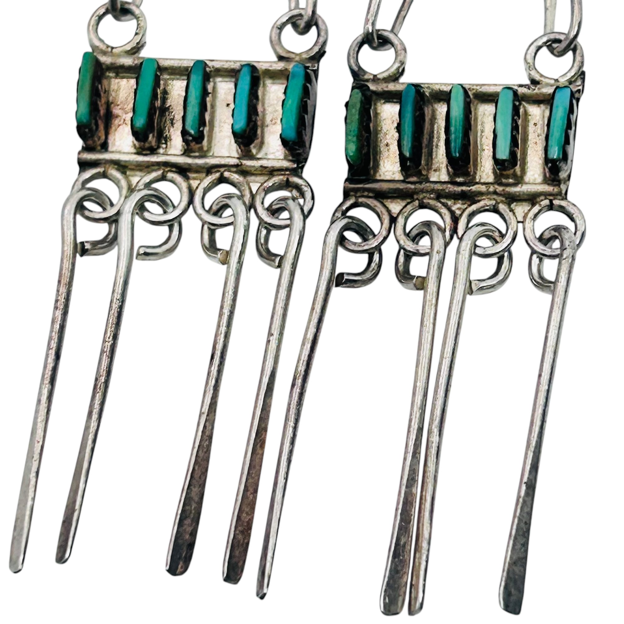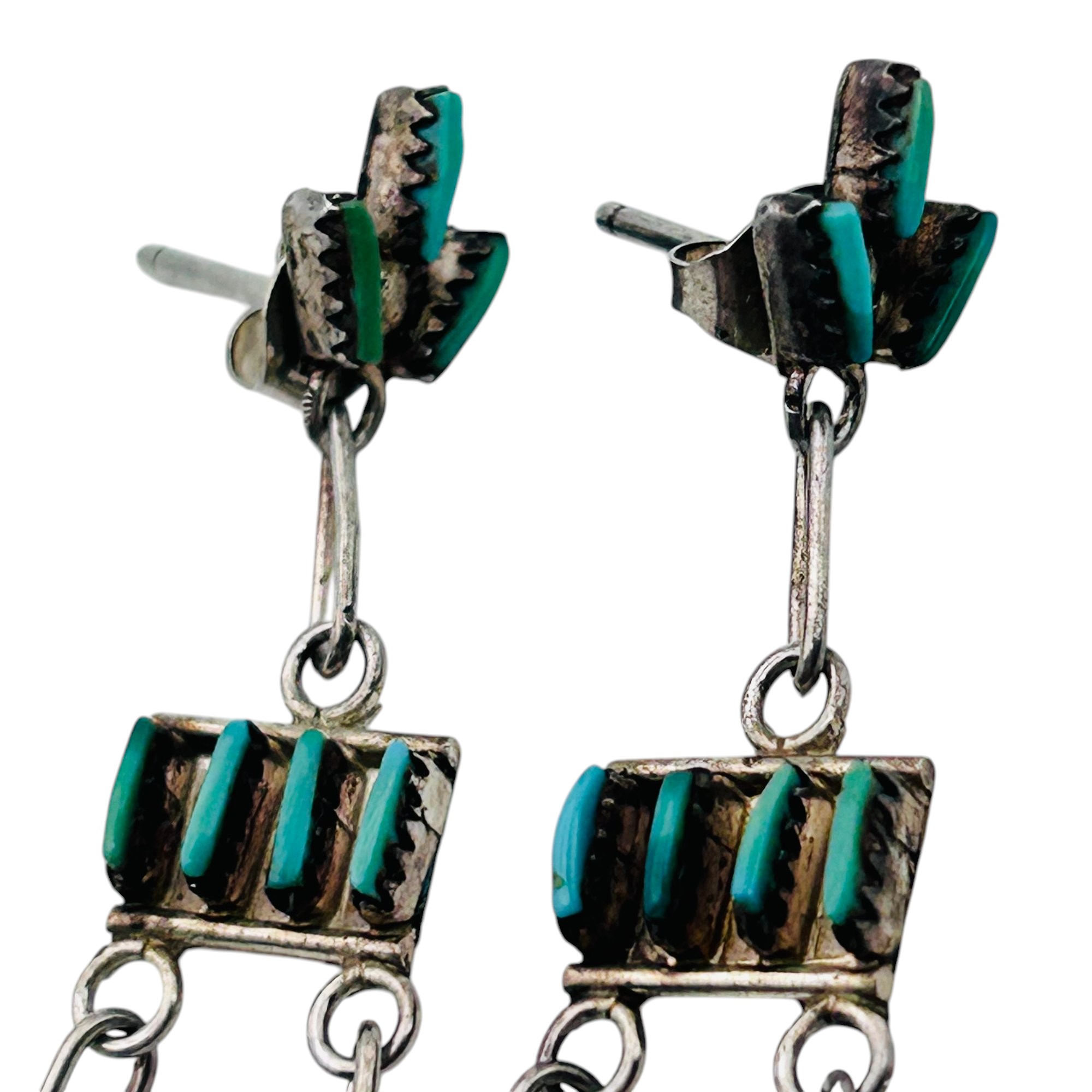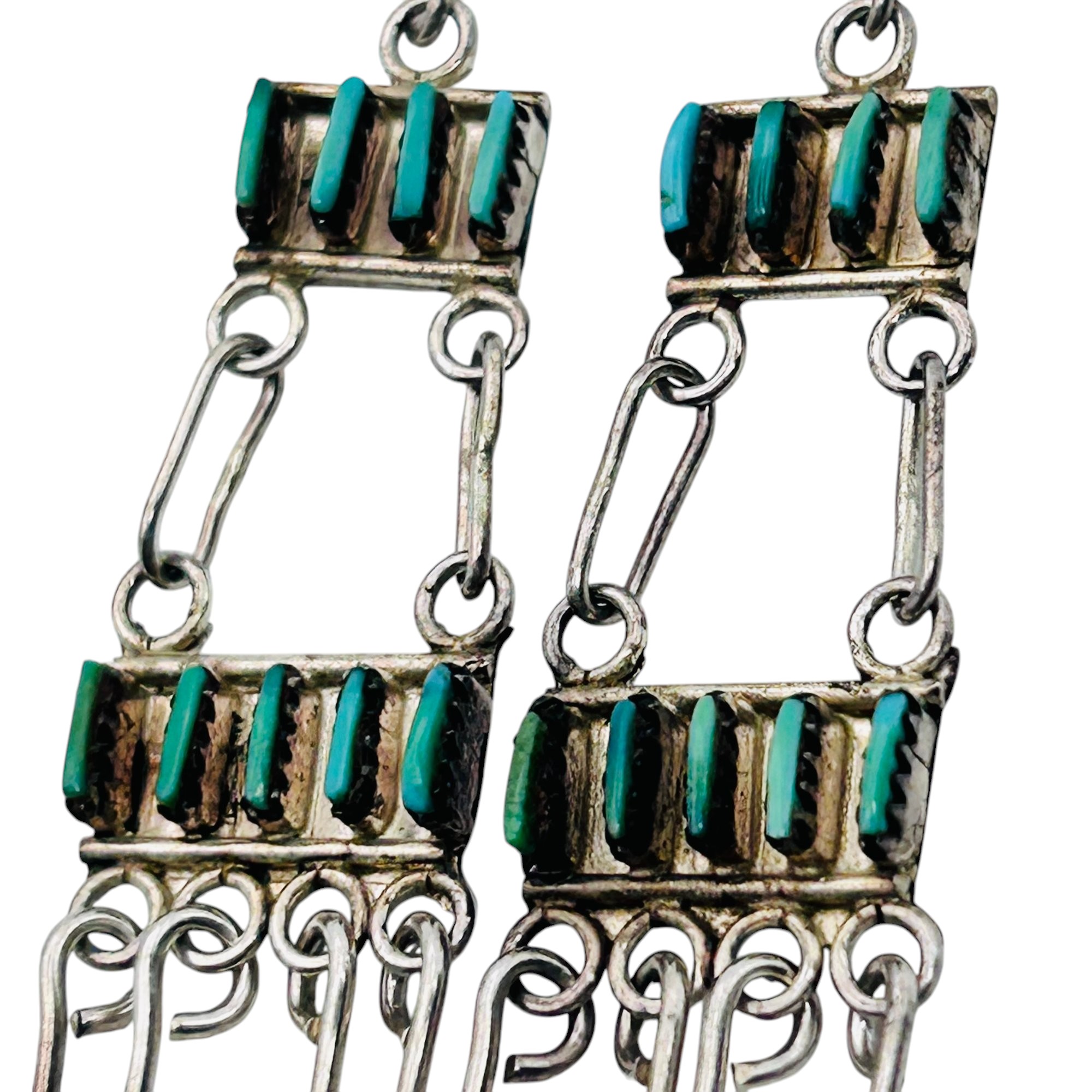 Zuni turquoise needlepoint chandelier waterfall earrings 4.73g