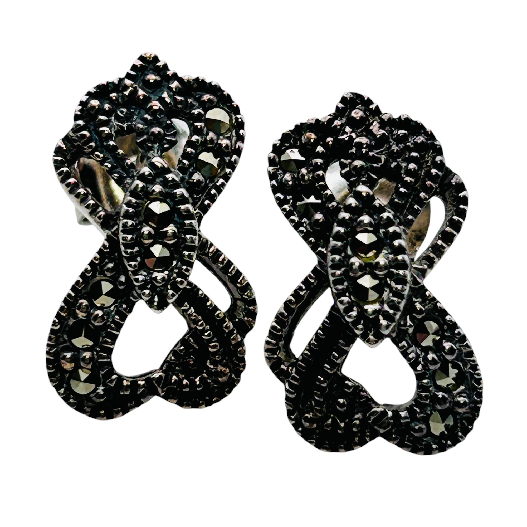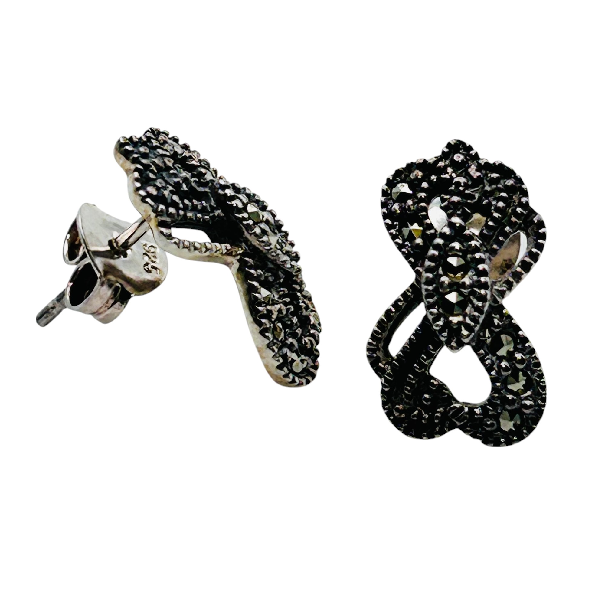 Marcasite sterling pushback earrings bow shape 3.24 g