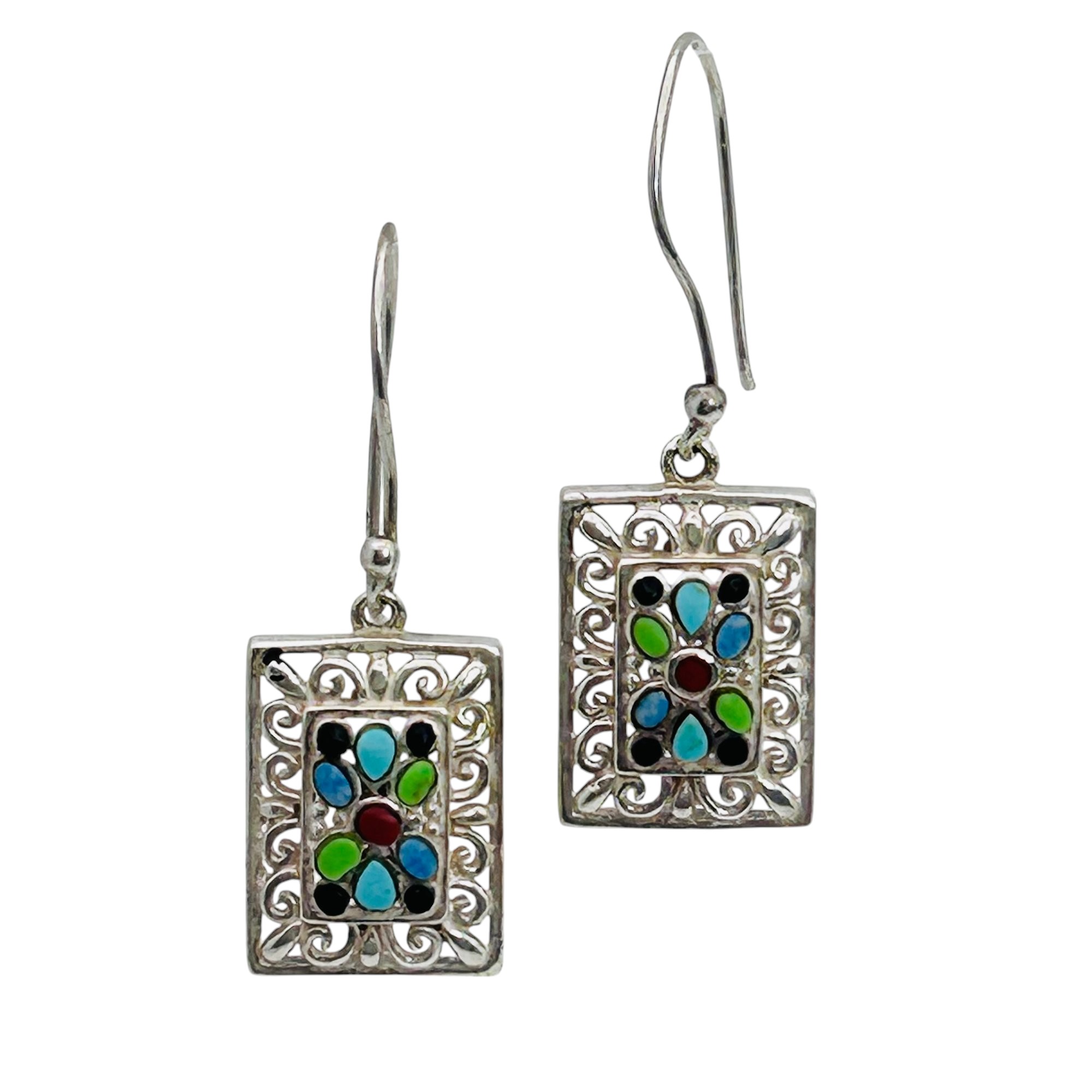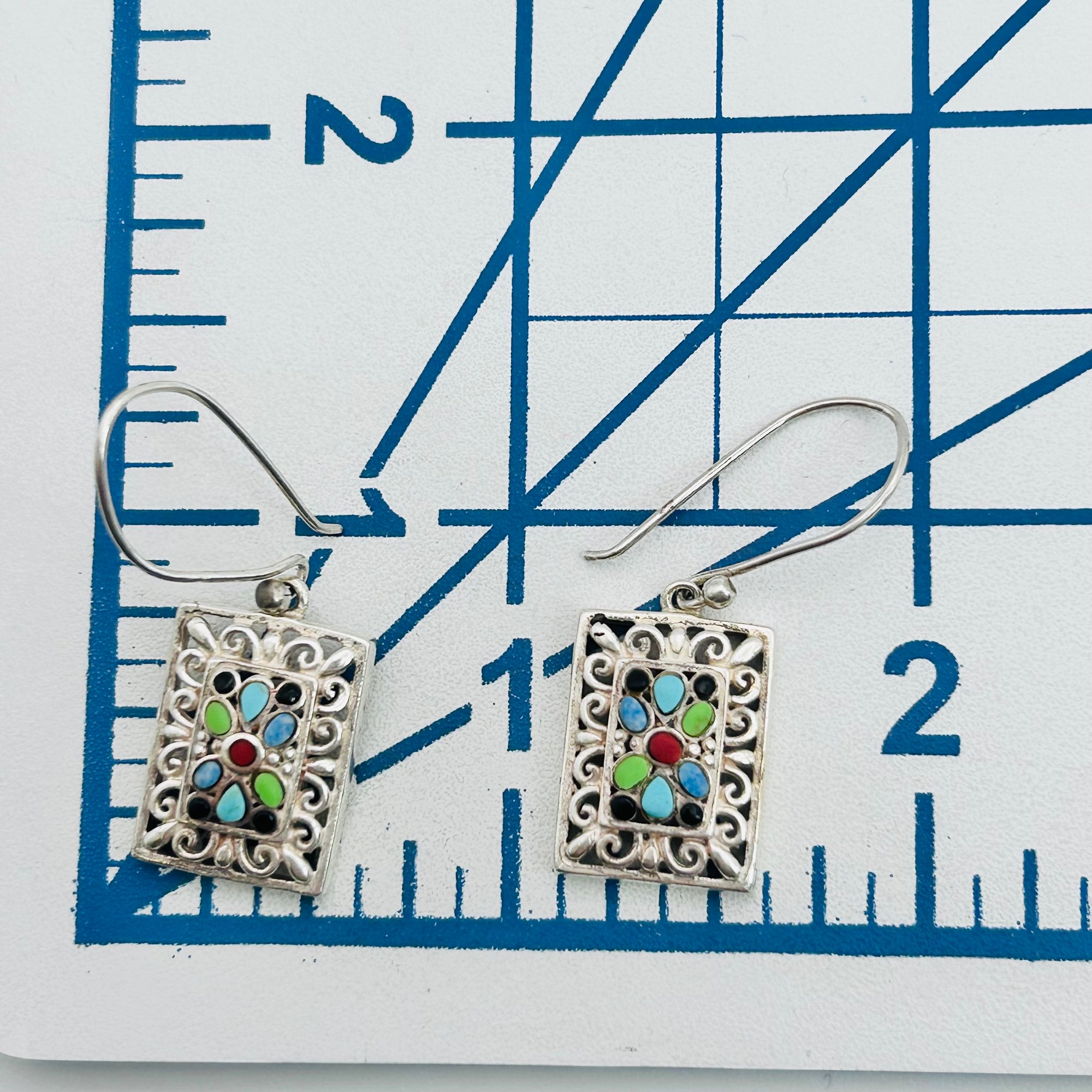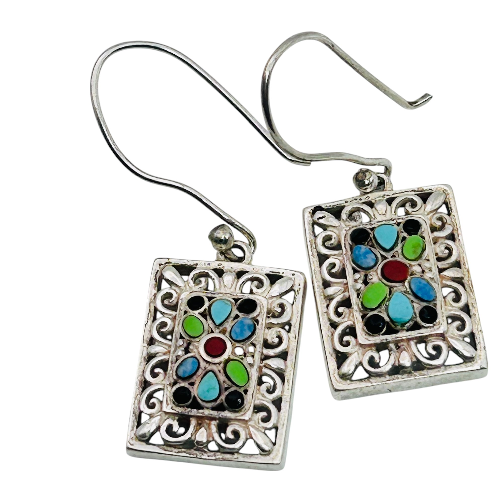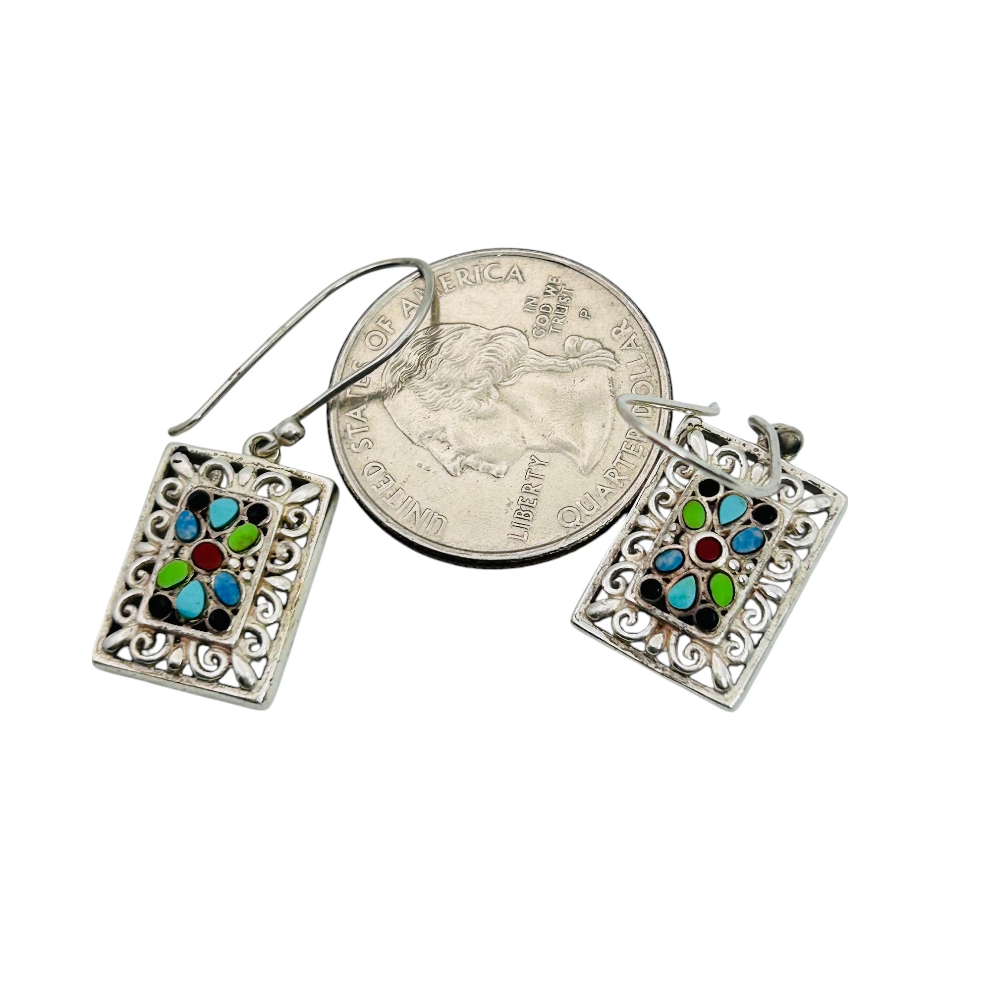 Turquoise rectangular Sterling dangle earrings 5.31 g