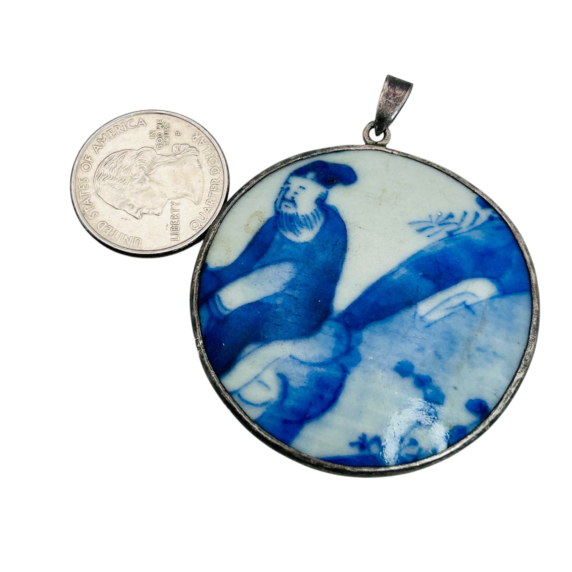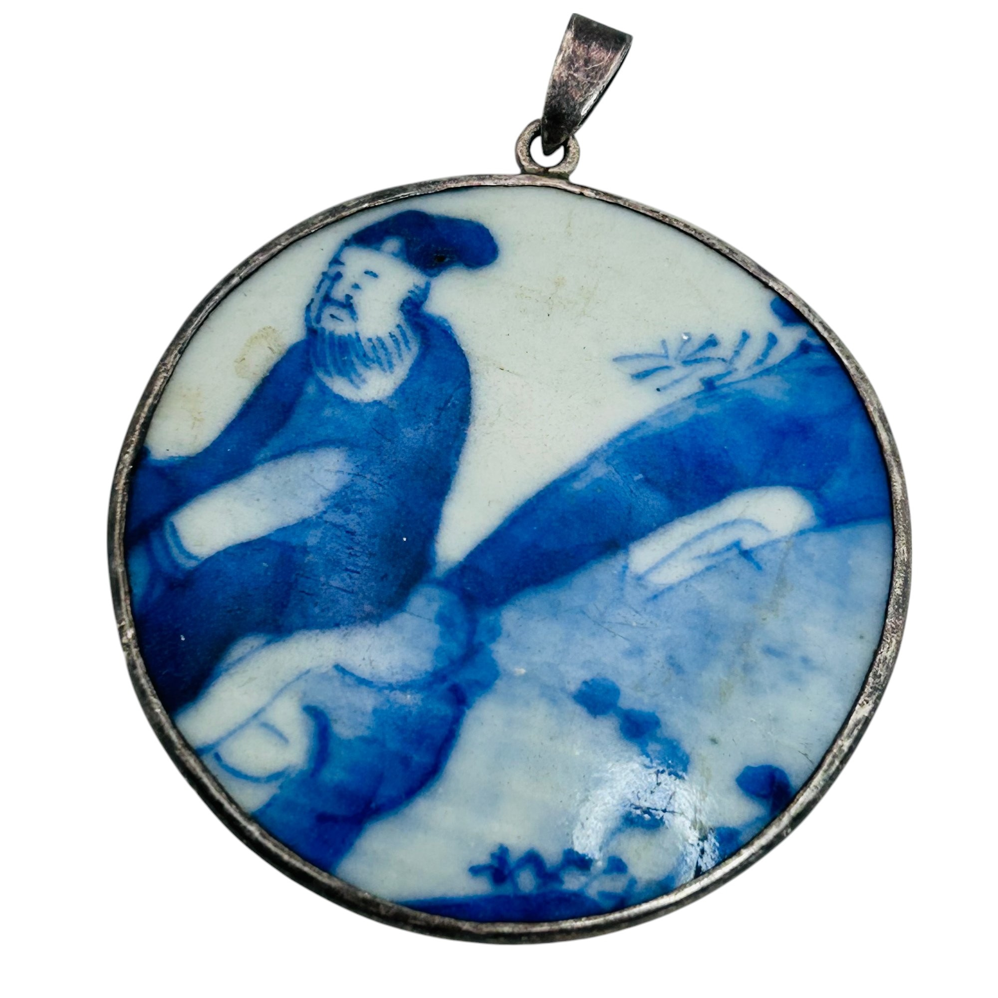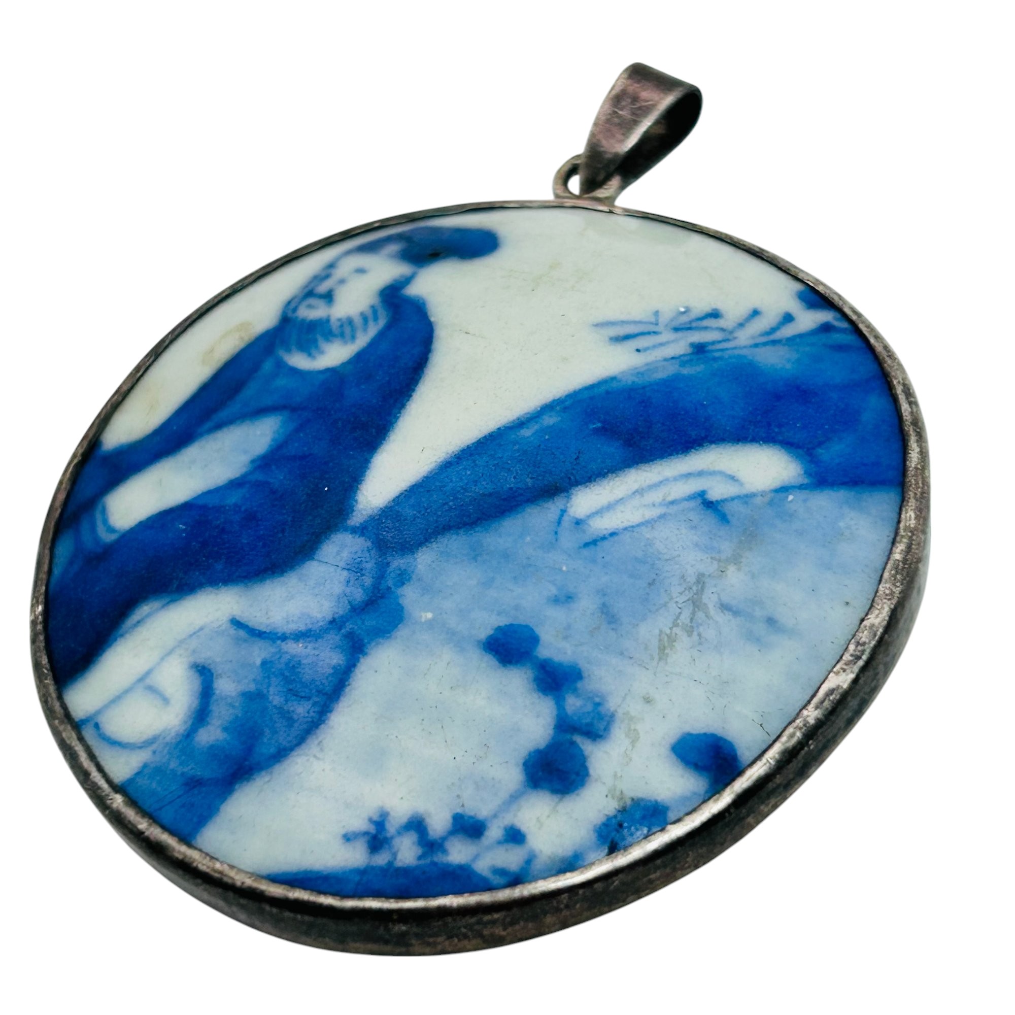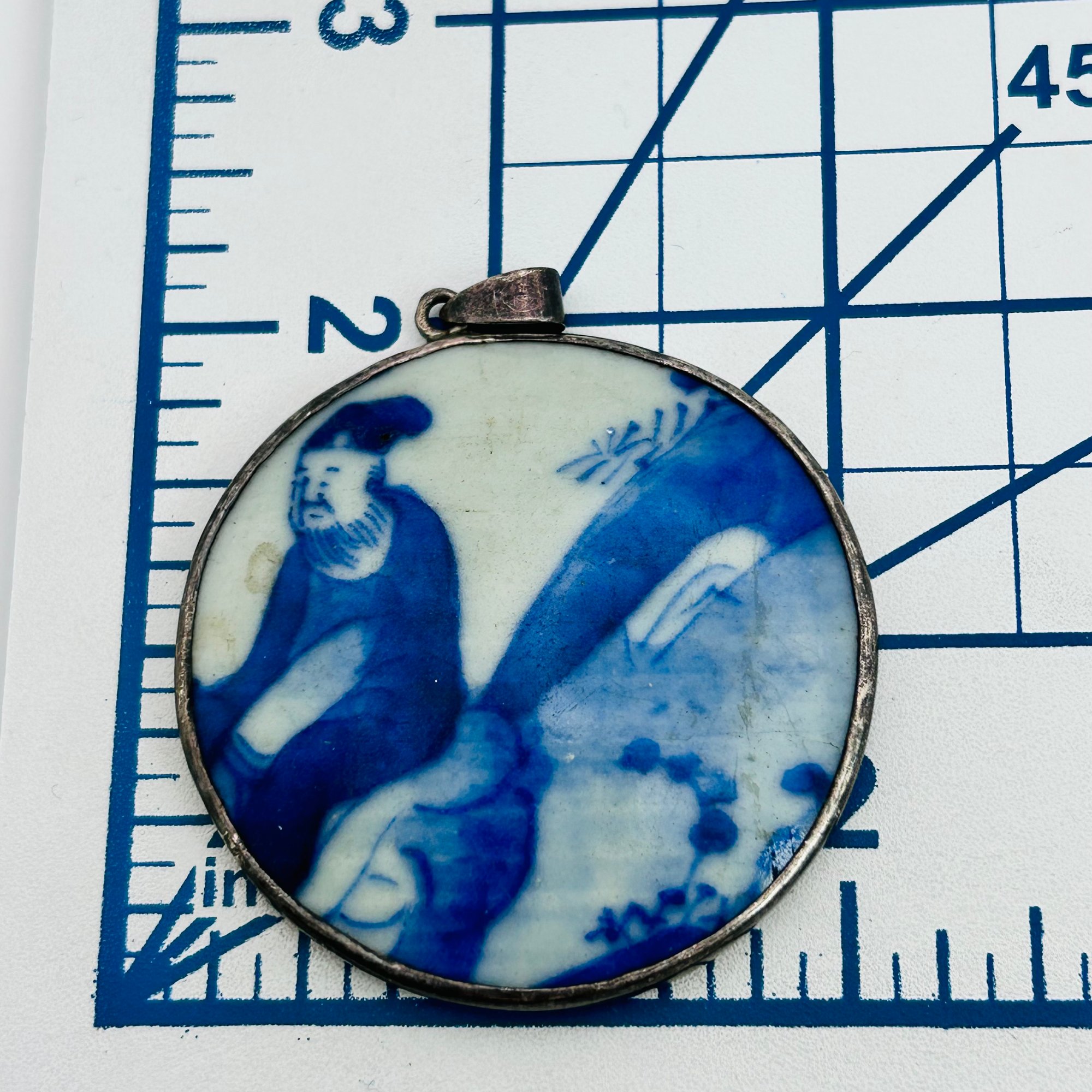 Sterling vintage white shard porcelain Chinese pendant 18.96 g