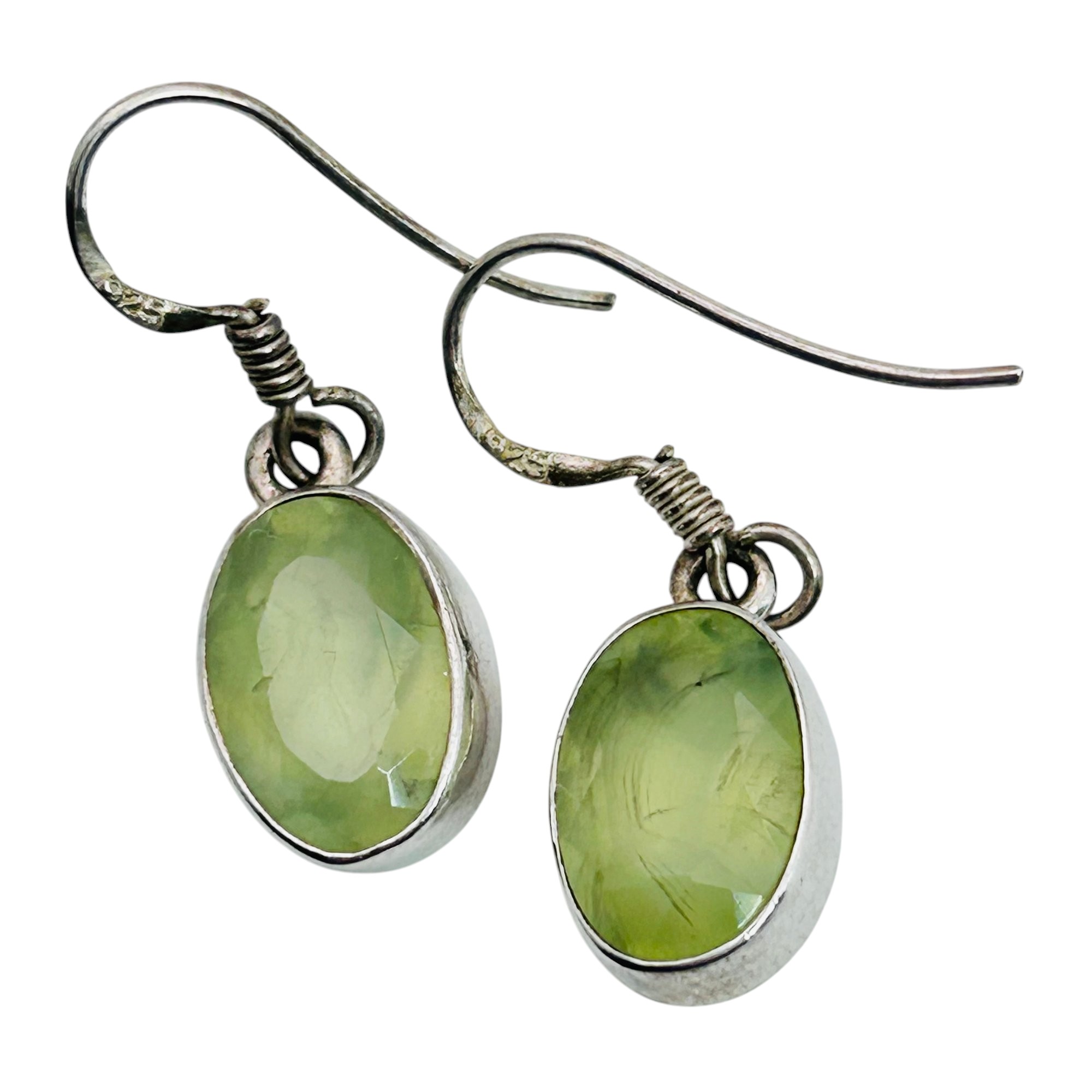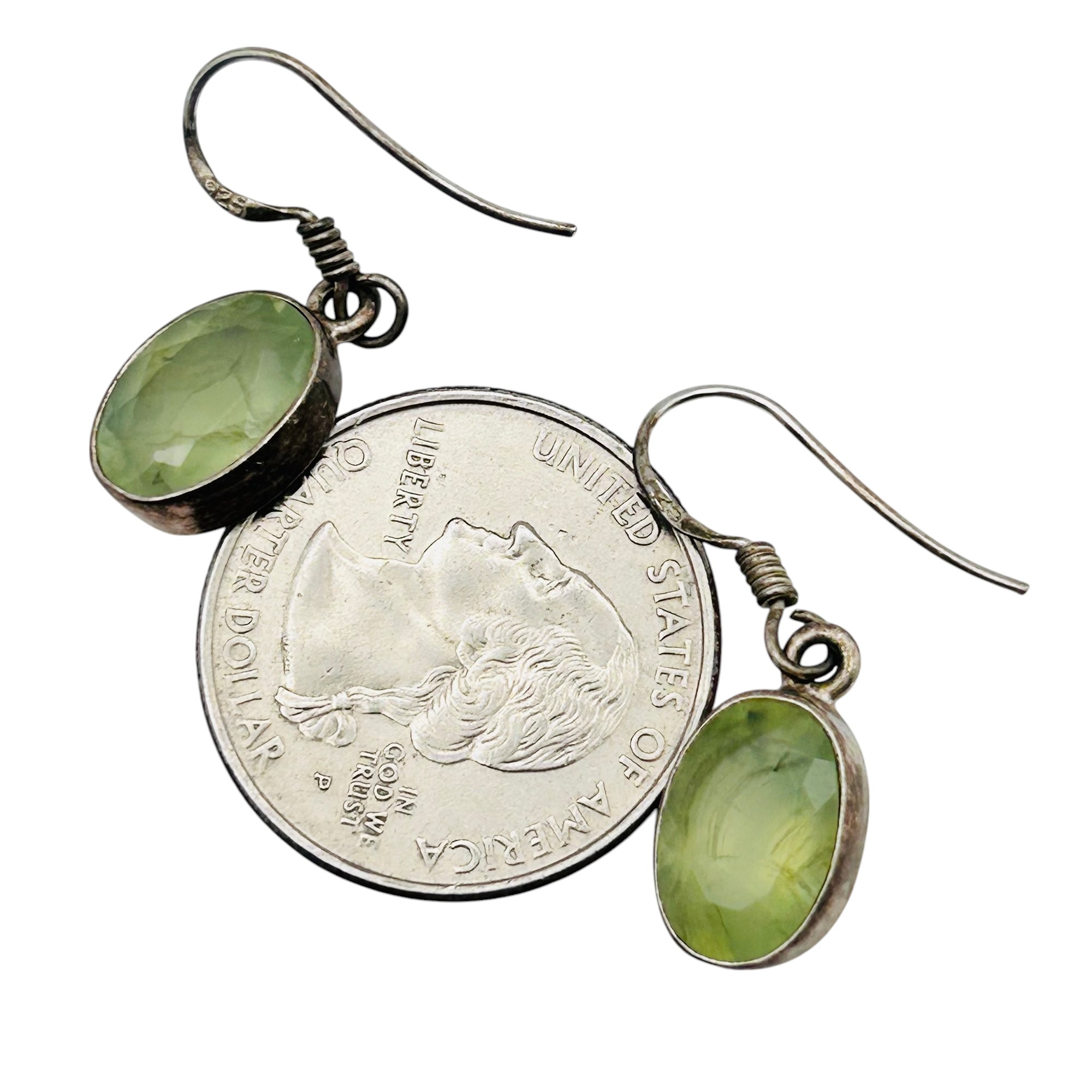 Green Garnet, Sterling Dangle Earrings 3.46 G