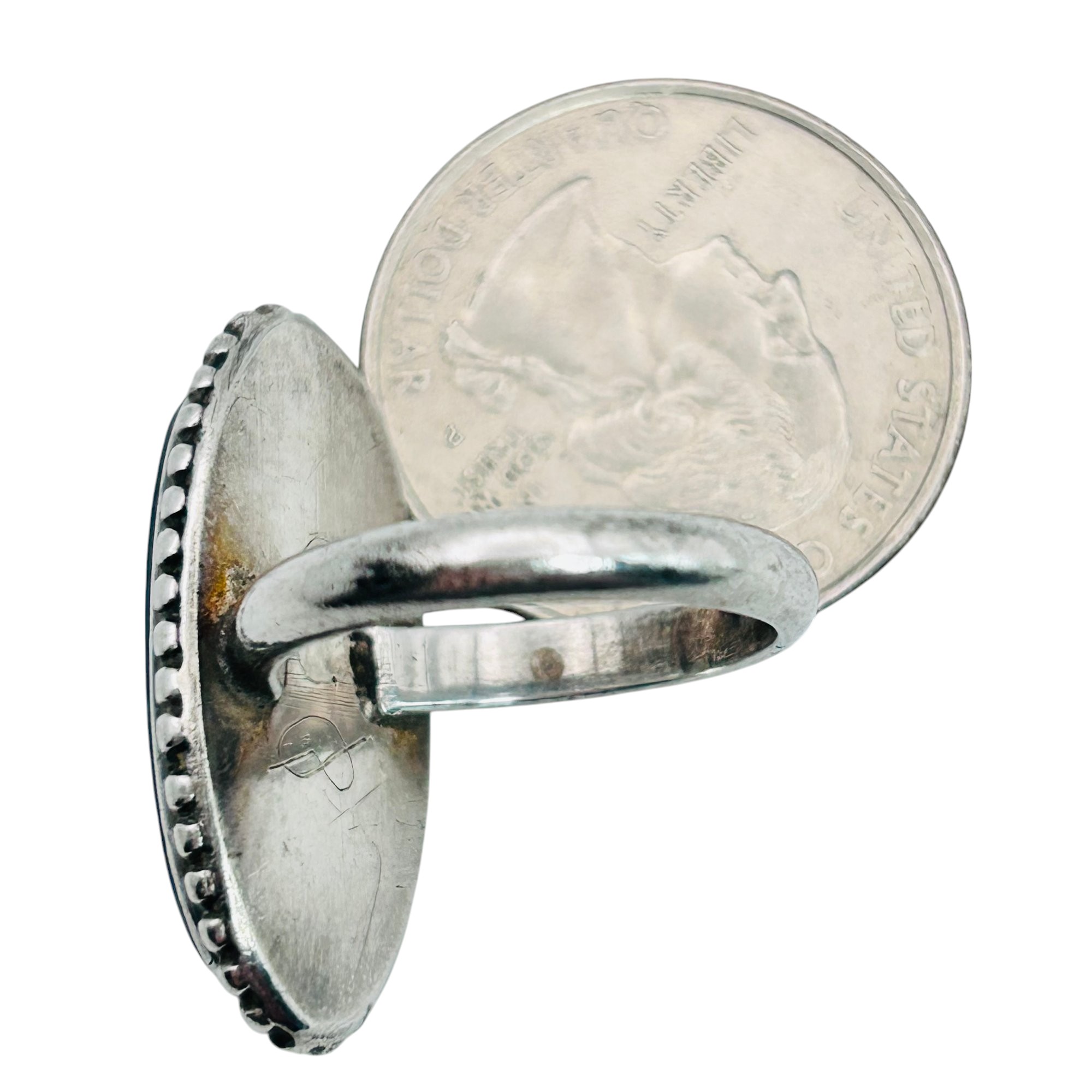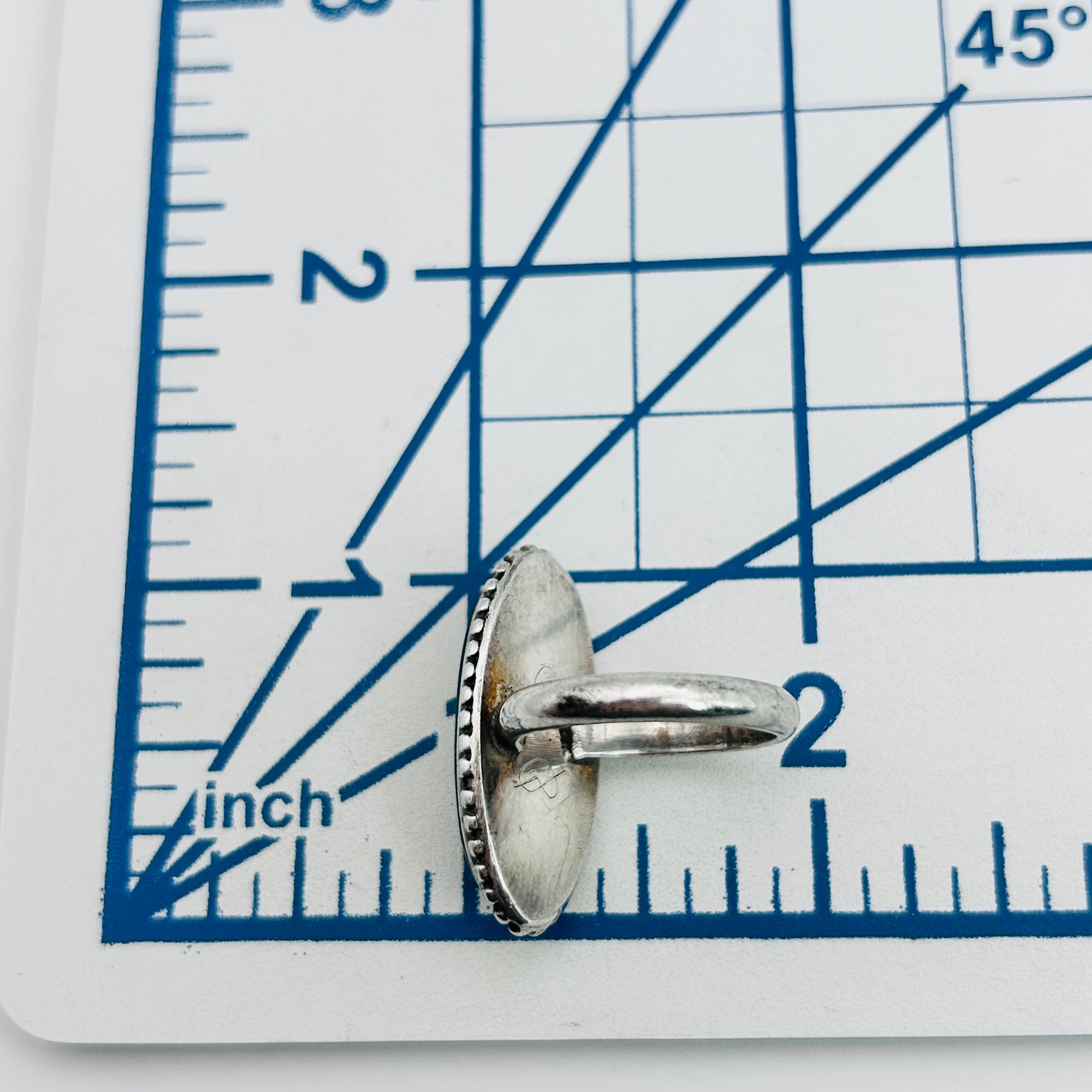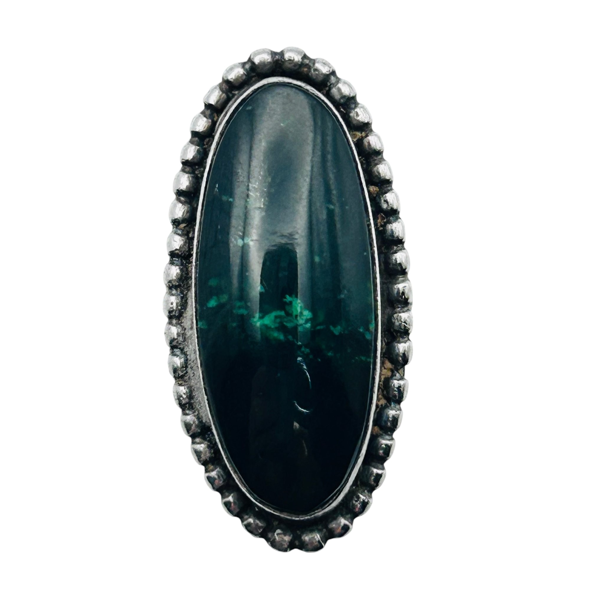 Navajo Signed Malachite Sterling Oval Ring Size 7, 7.9 G
