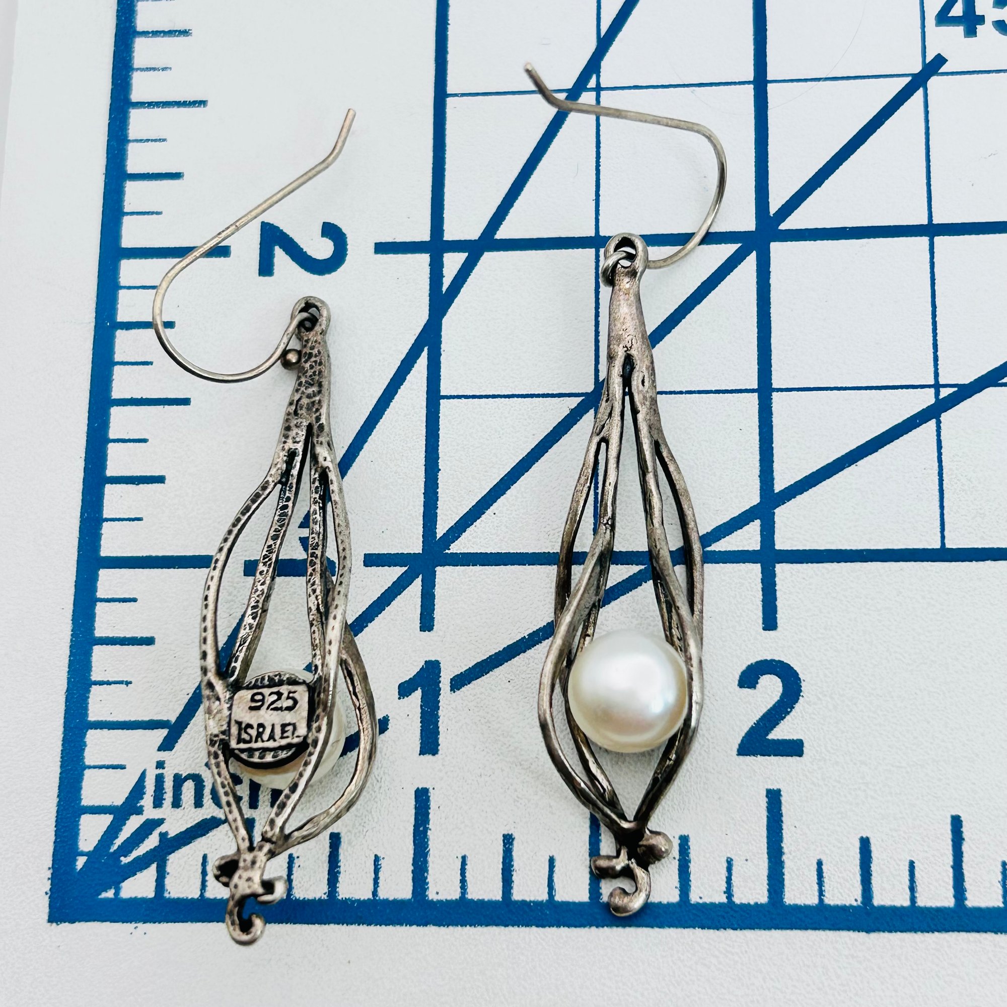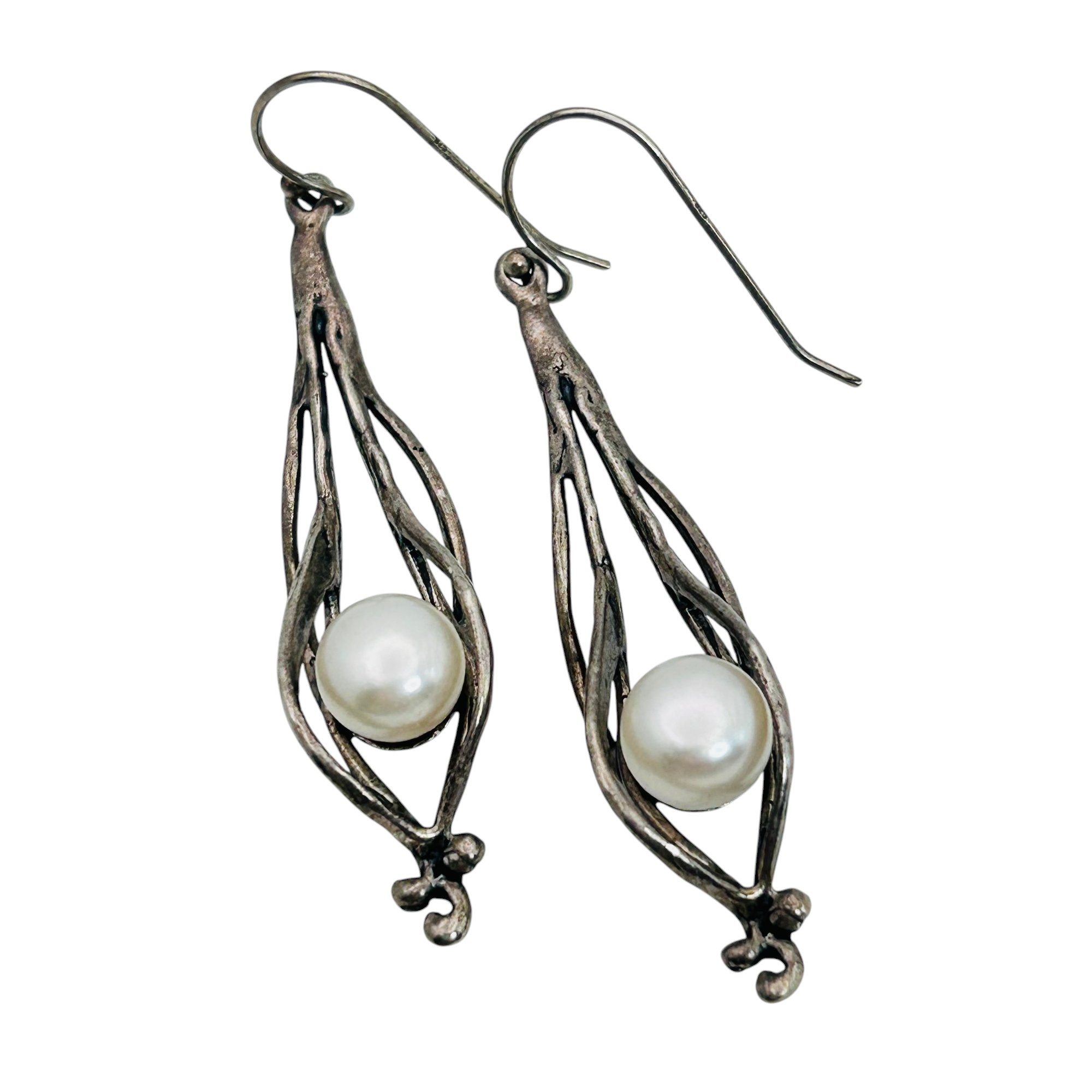 Israel Sterling Pearl wrapped hook earrings 8.26 g