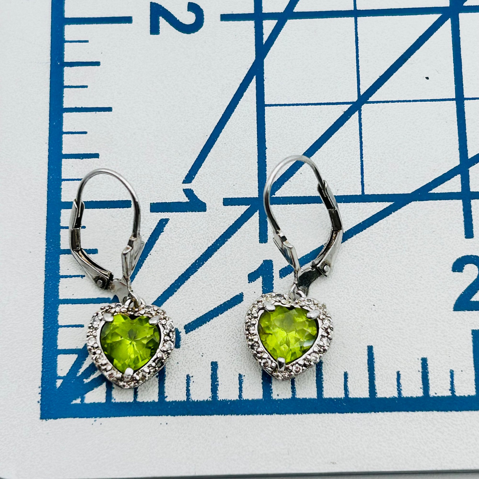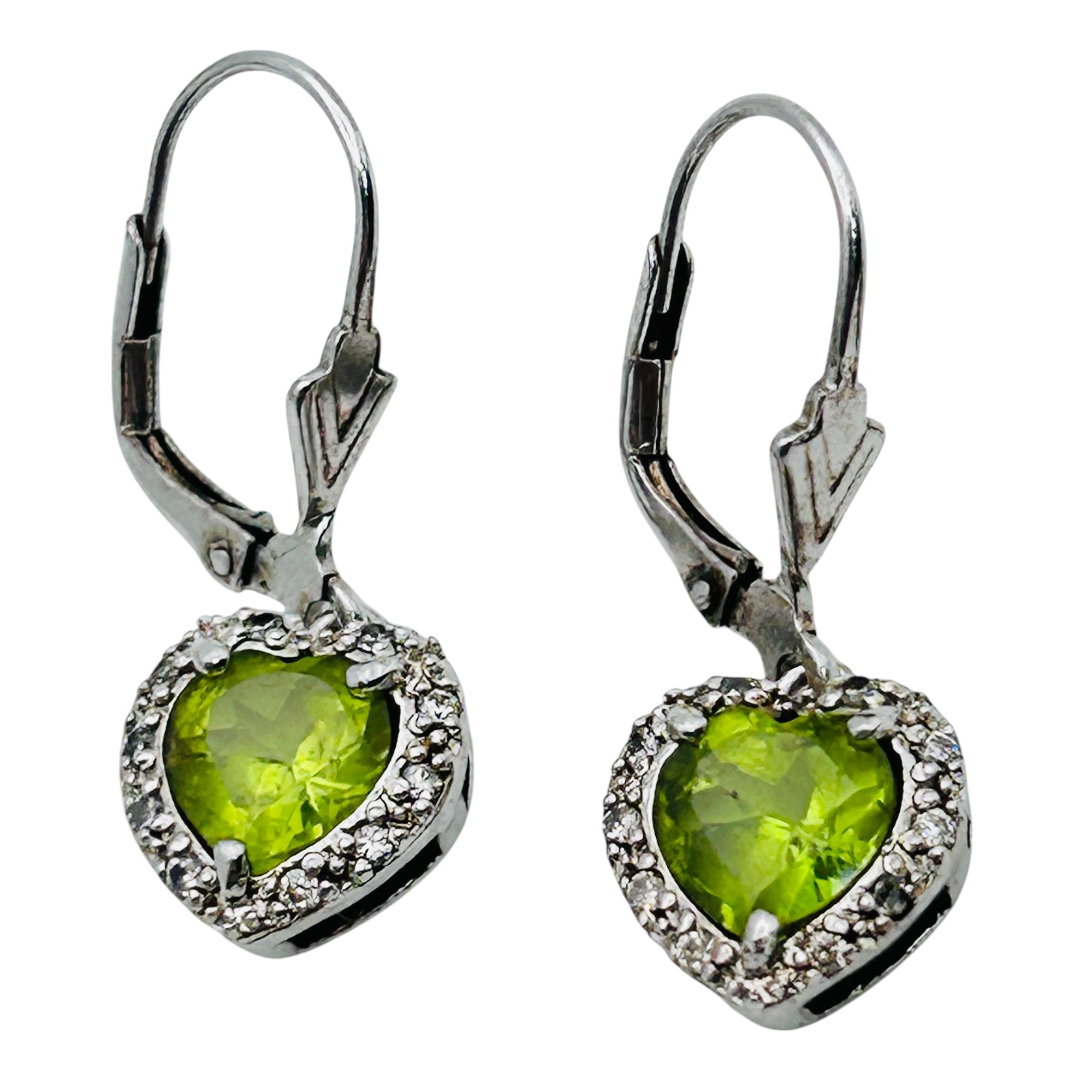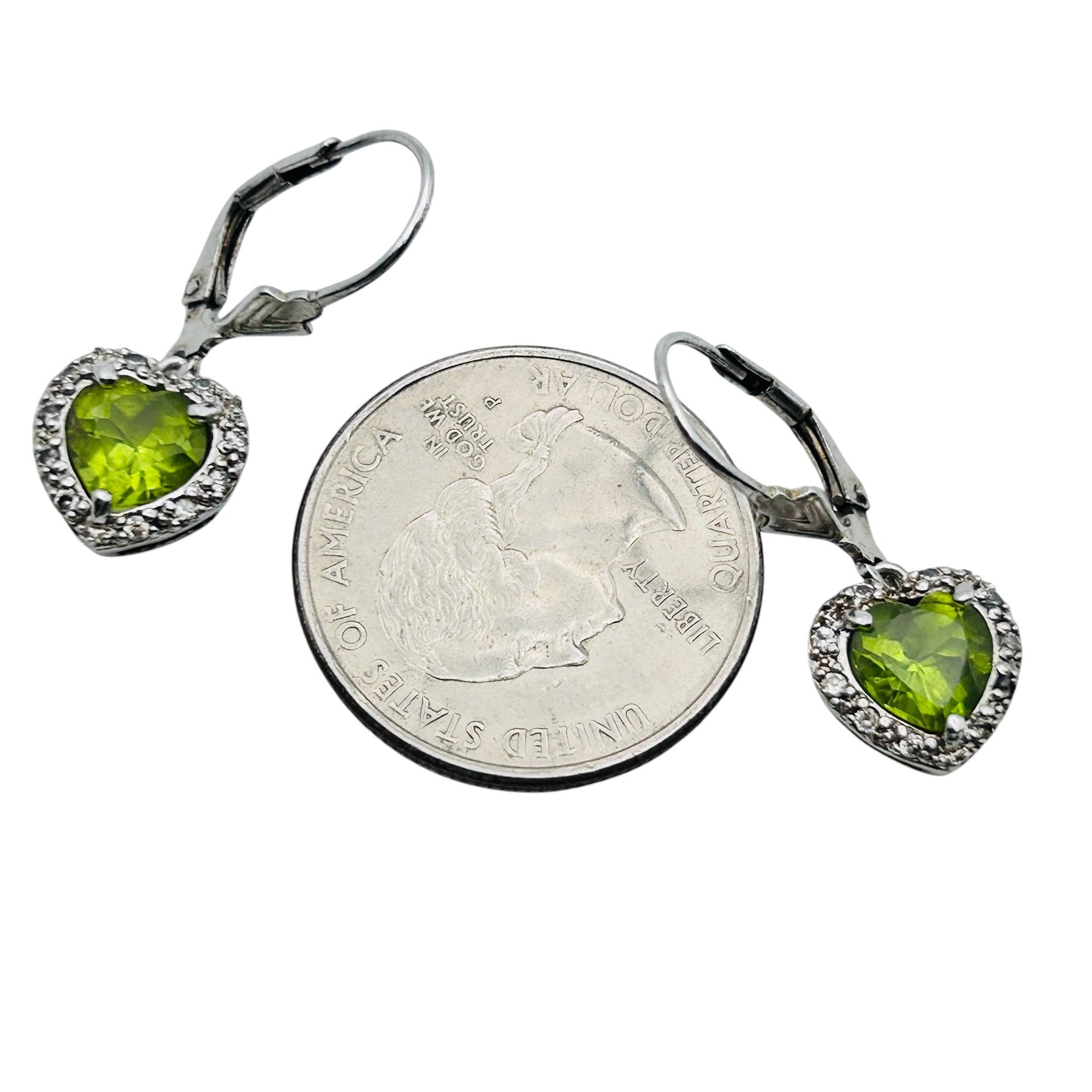 SILPADA Sterling Green-stone Heart Dangle Earrings 3.8 G