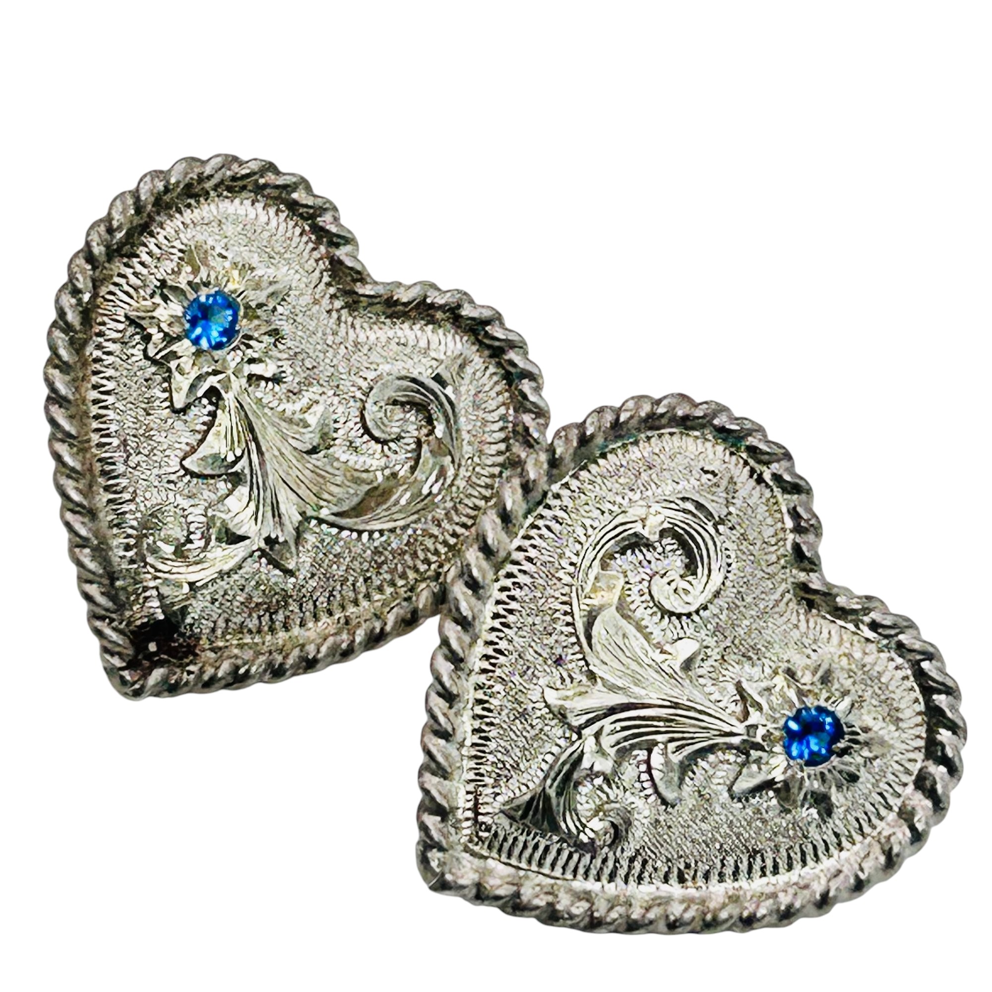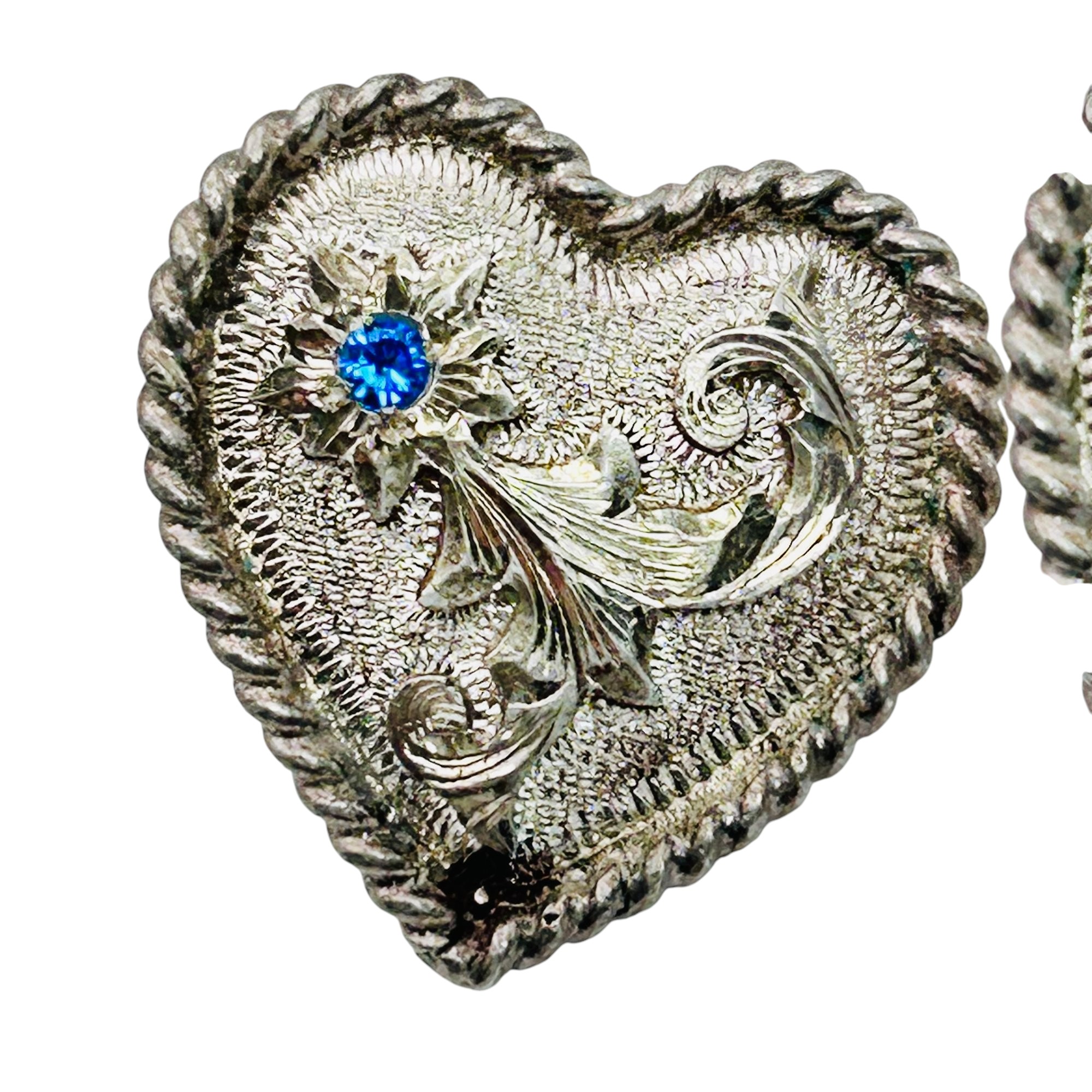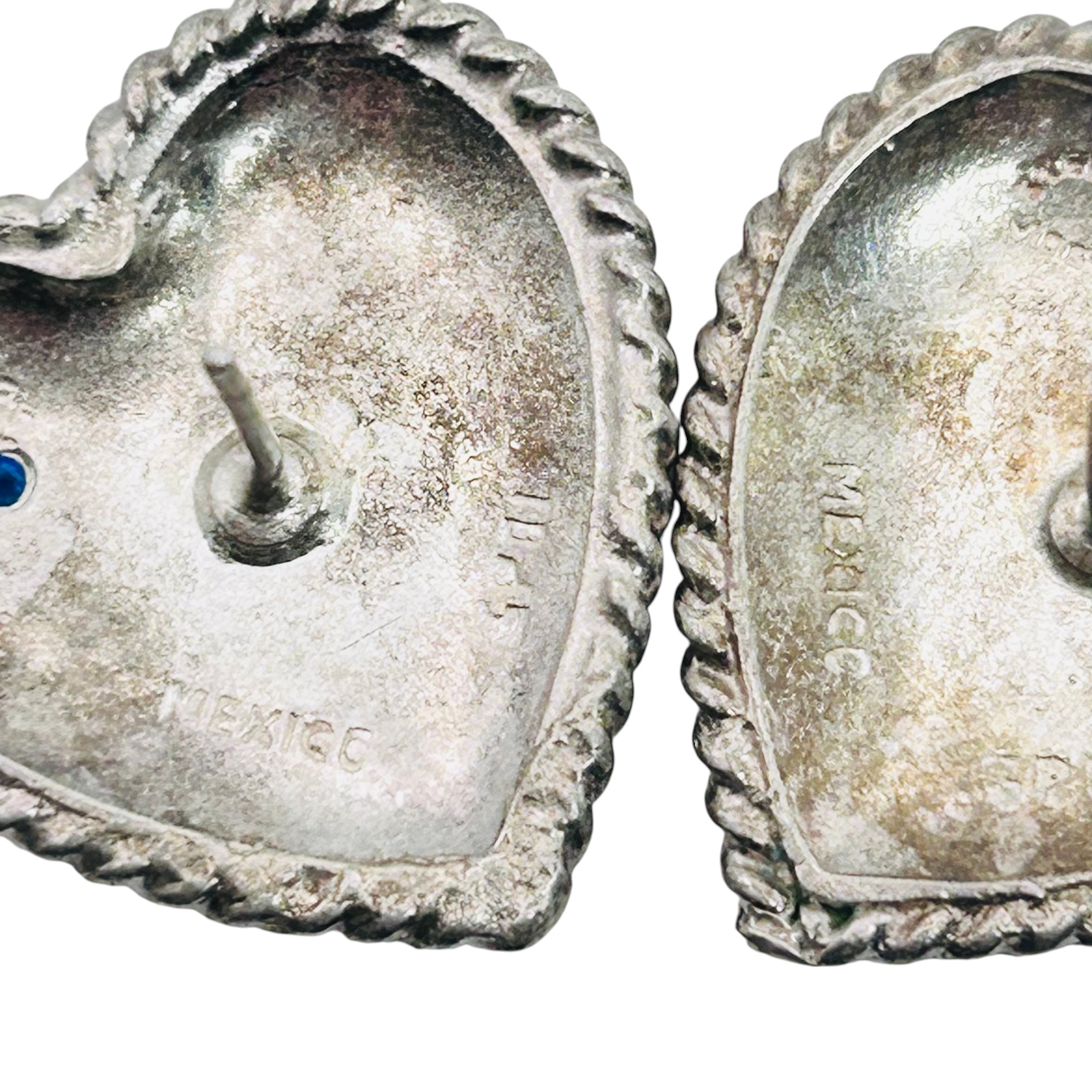 VOGT Sterling Mexico blue gem GP 01 heart earrings 6.5 g