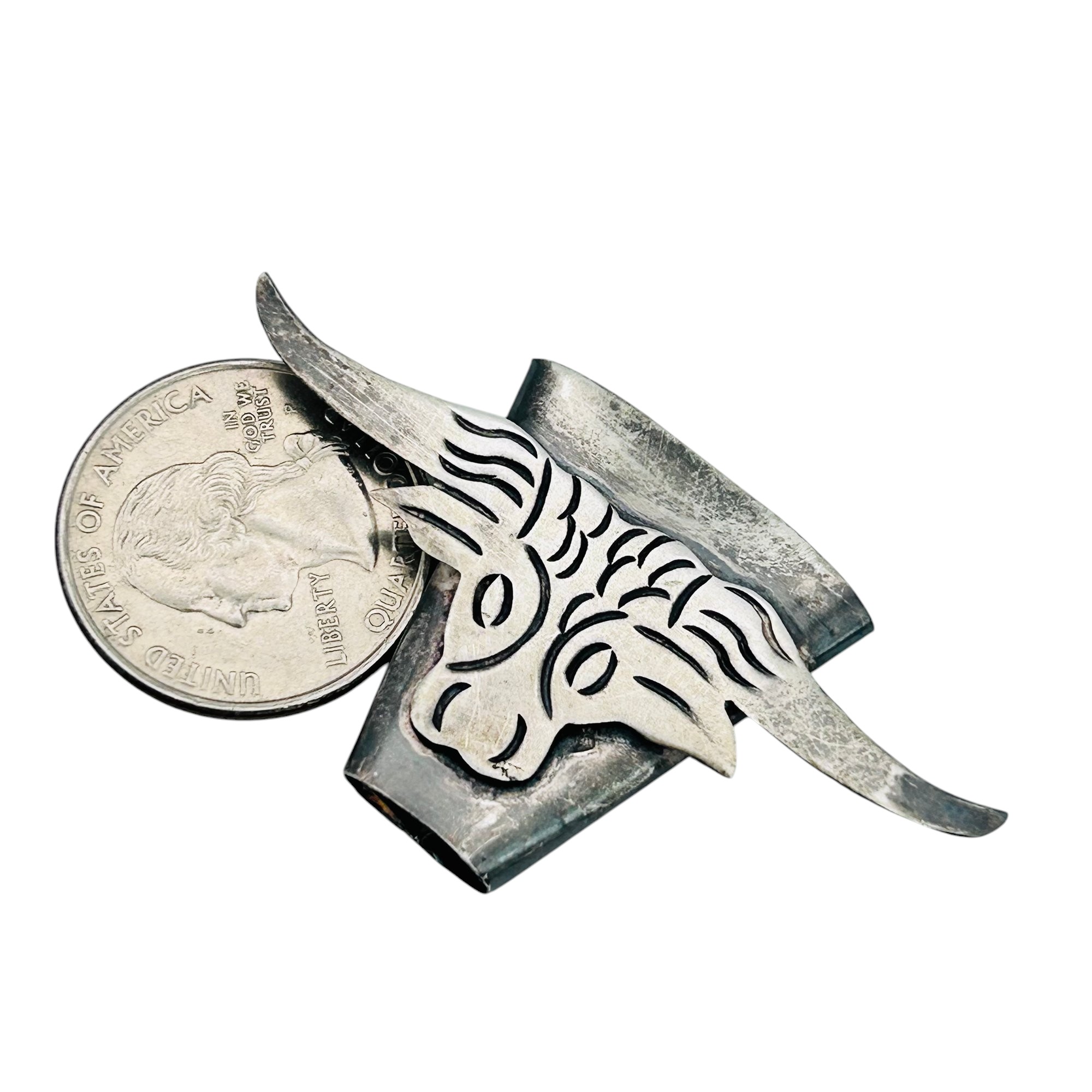 TAXCO Mexico Sterling scarf slide or bolo tie longhorn 7.2 g