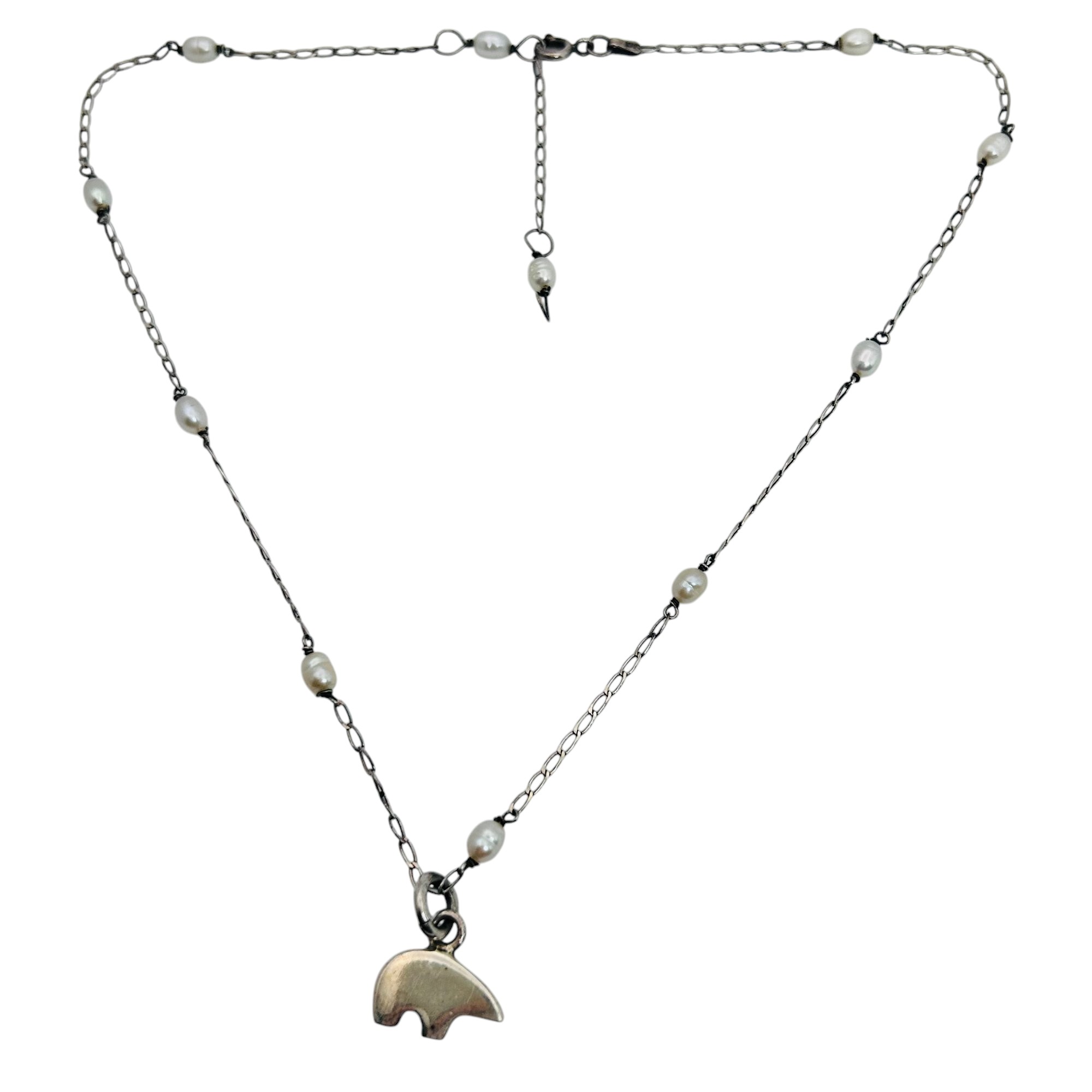 Mexico Sterling pearl and cable chain bear pendant necklace 5.46 g