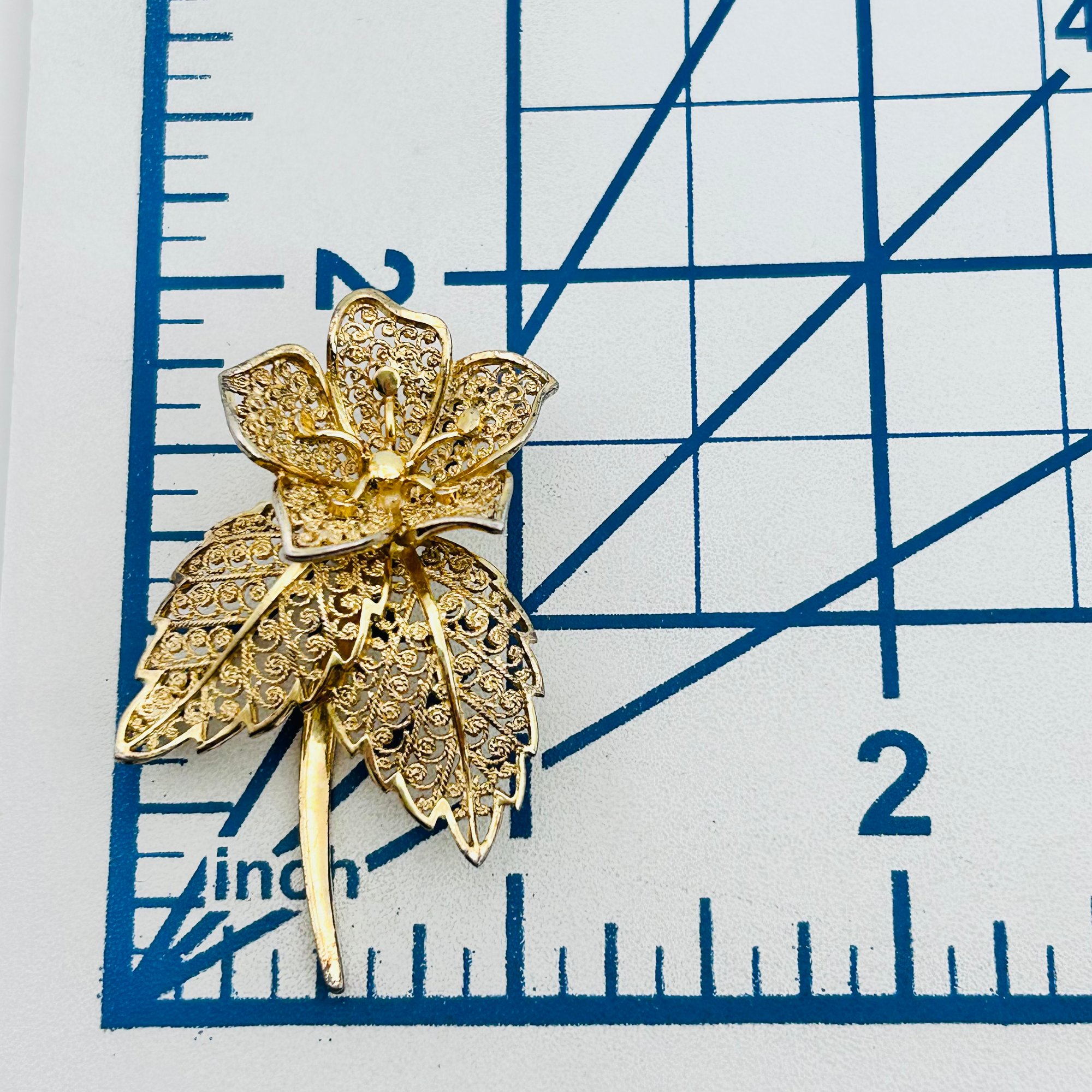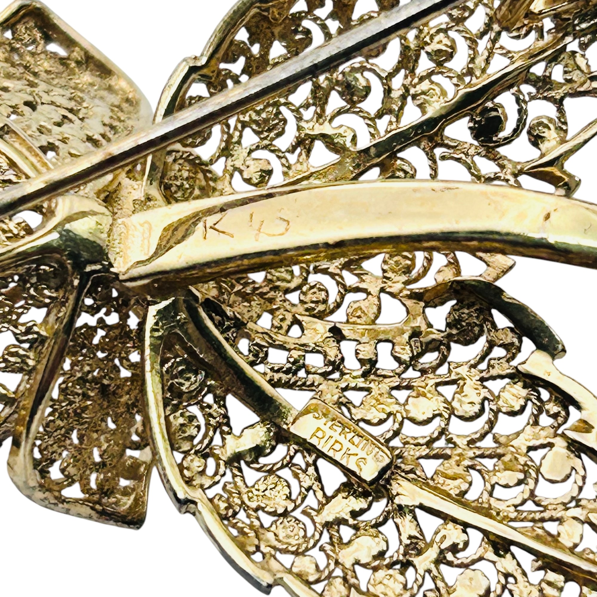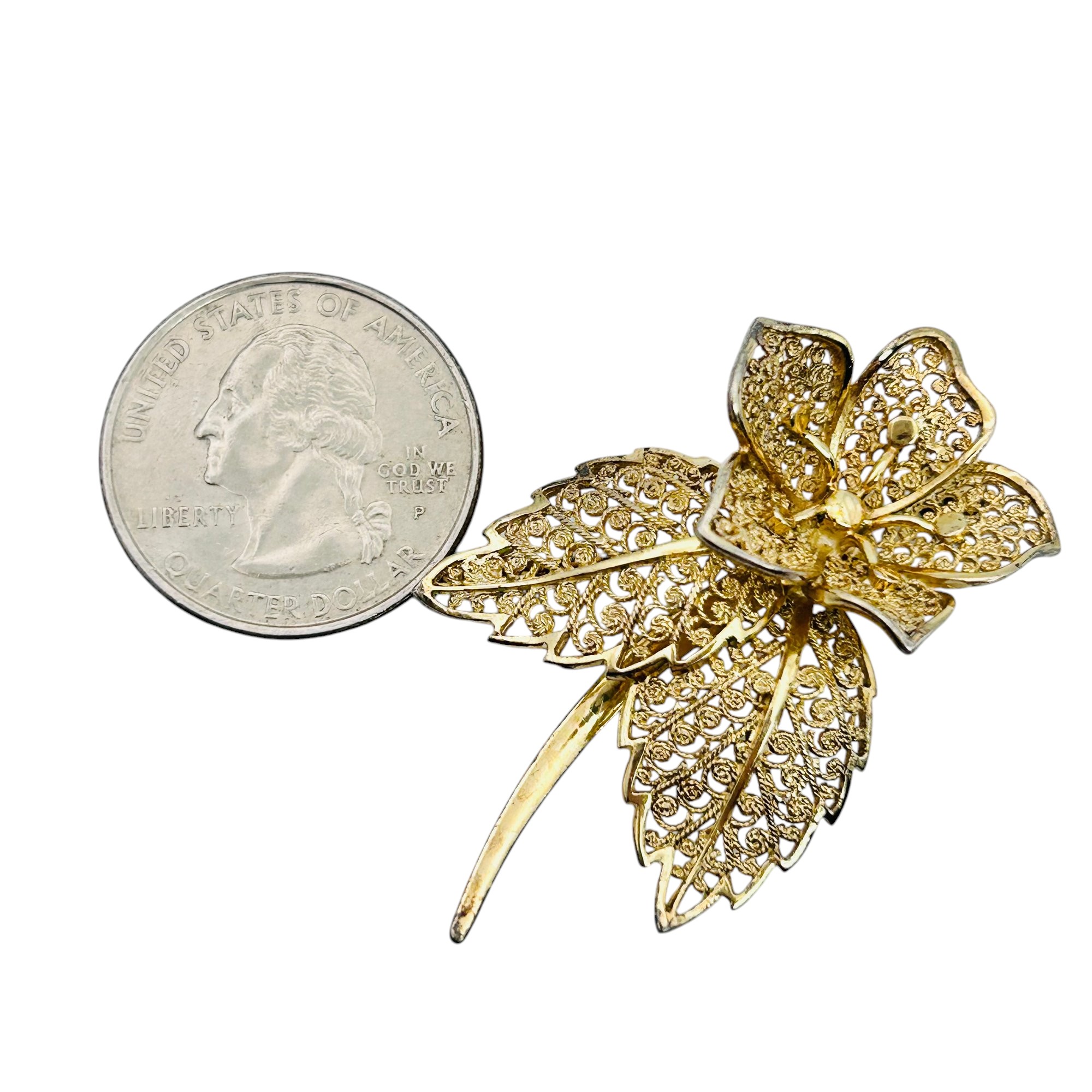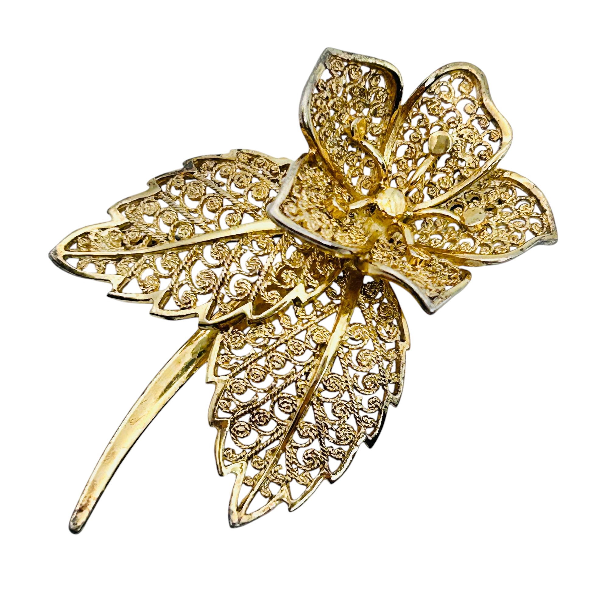 Signed BIRKS Sterling filigree flower brooch 6.53 g
