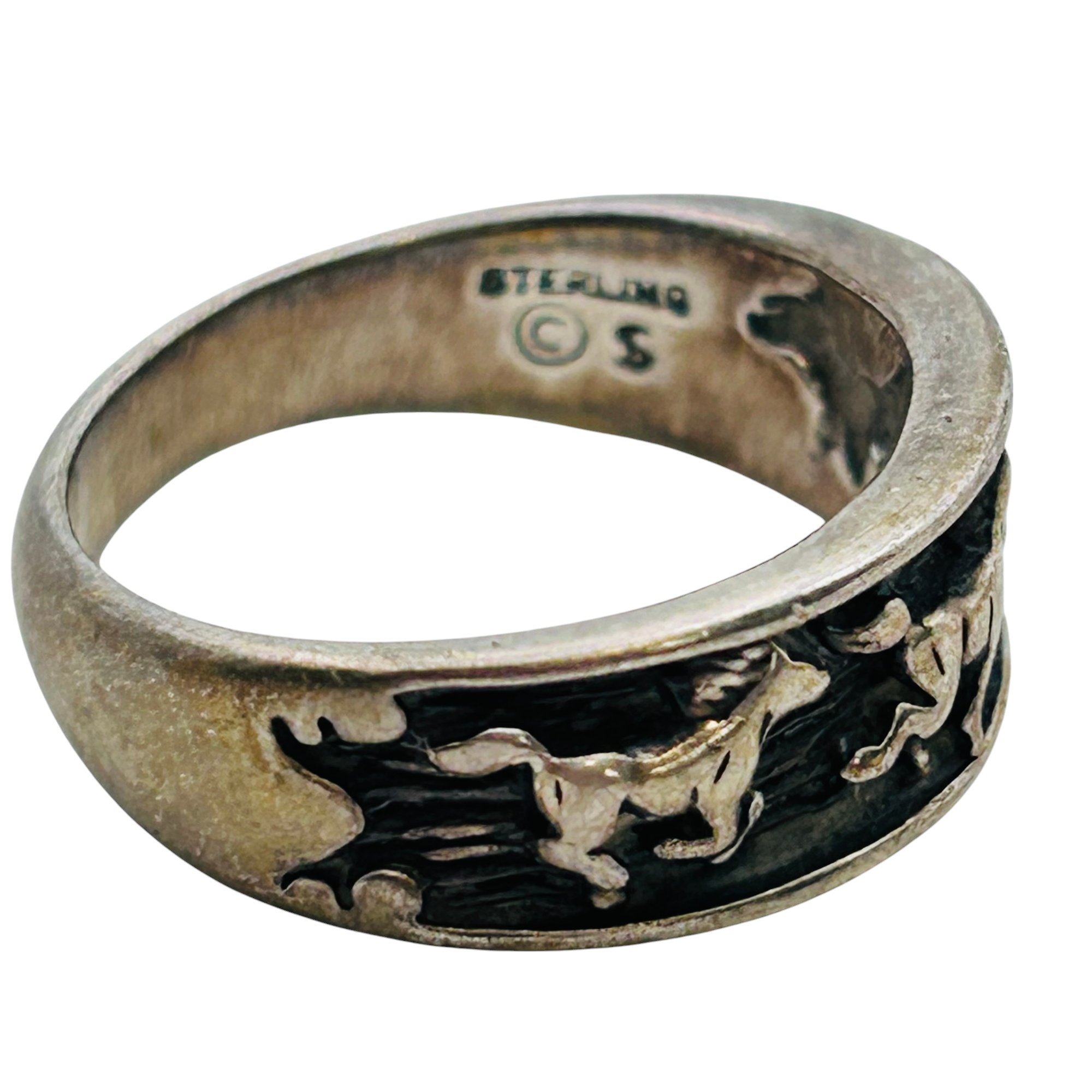 Southwest Sterling carved Mustang ring size 7 5.15 g