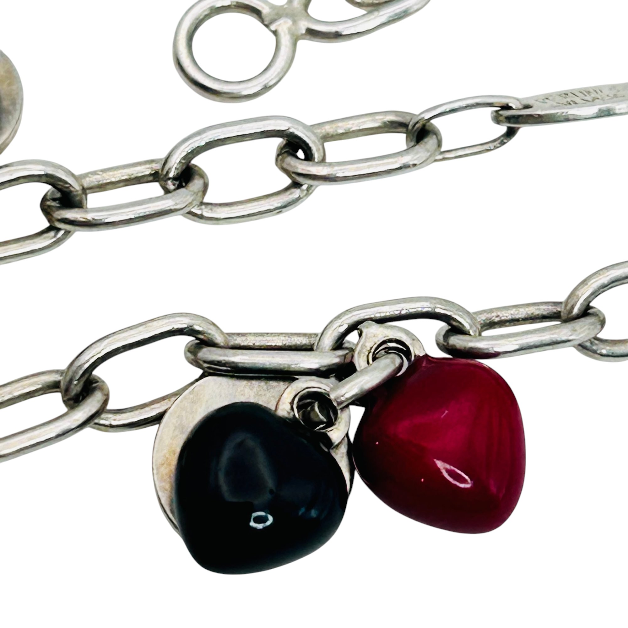 PERLINI’s Italy Sterling cable chain in red and black bead heart charm bracelet 8.95 g