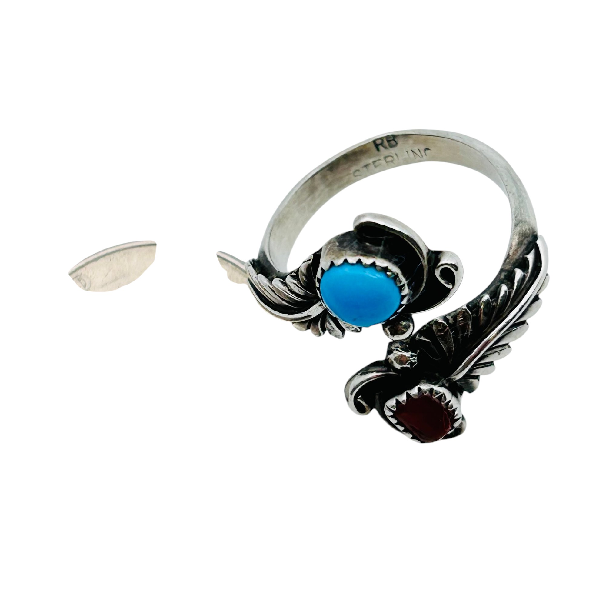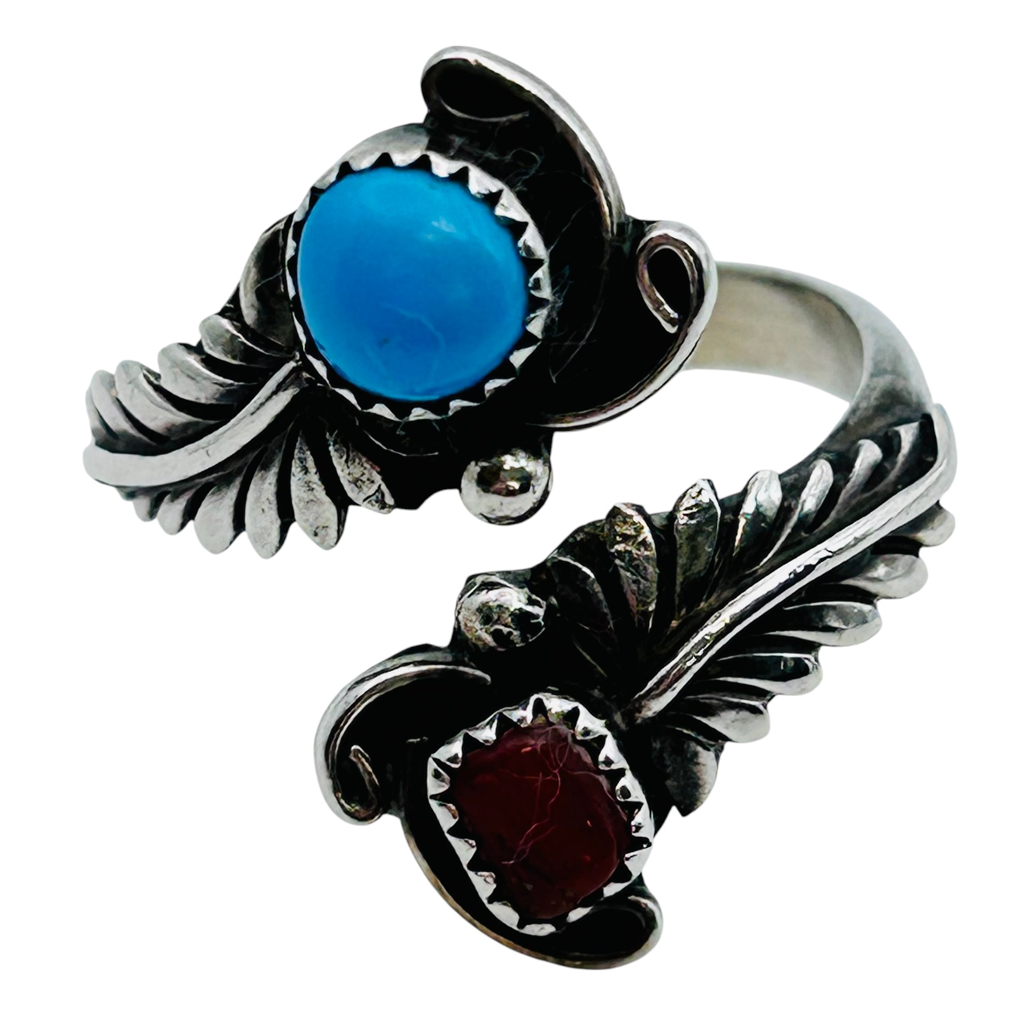 Richard Begay Navajo Sterling turquoise and coral bypass ring size 8.5 4.96 g