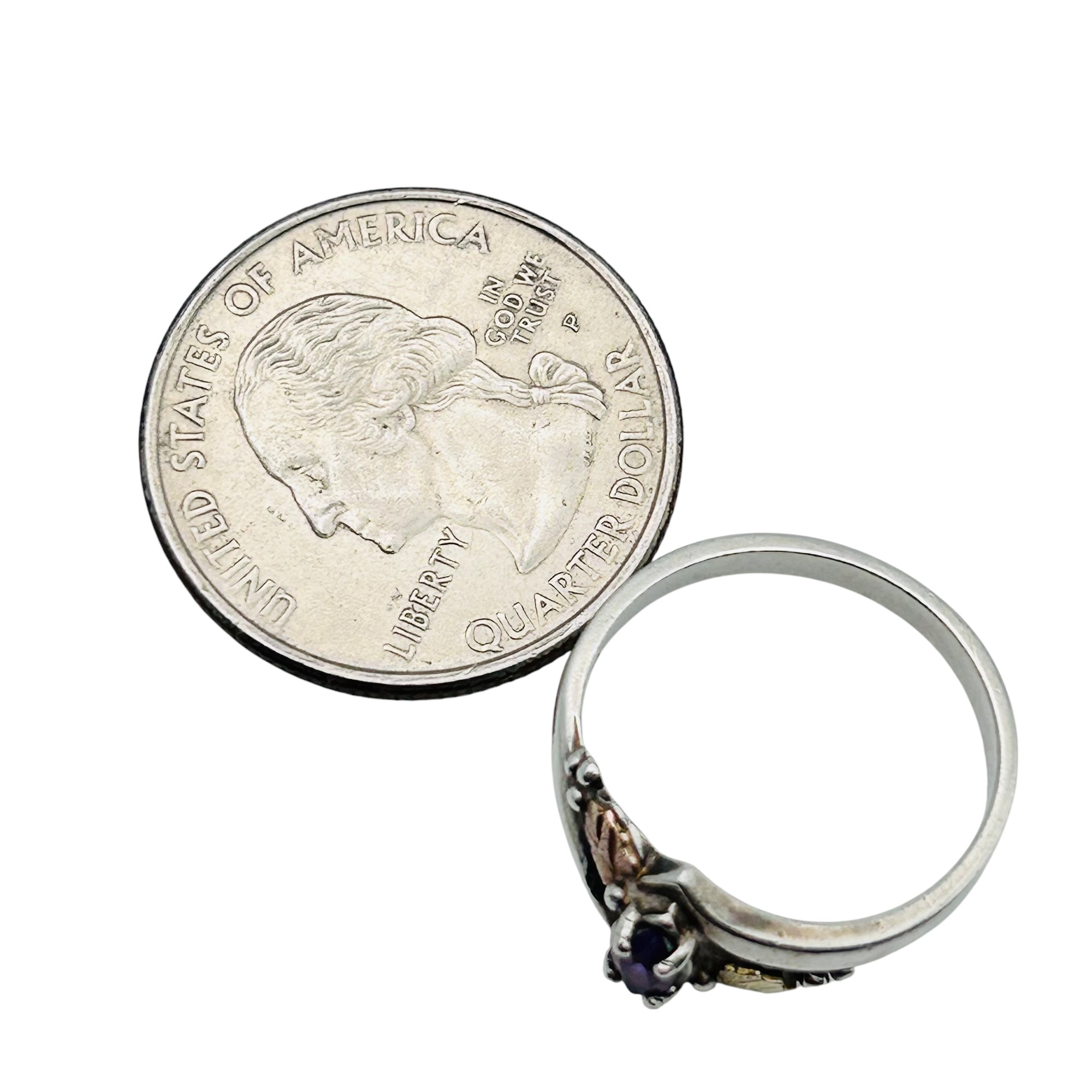 Amethyst Sterling leaf detail ring size 7 2.45 g