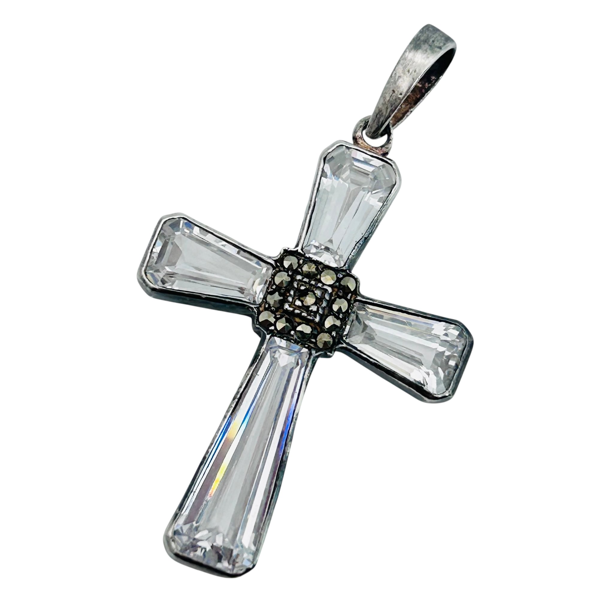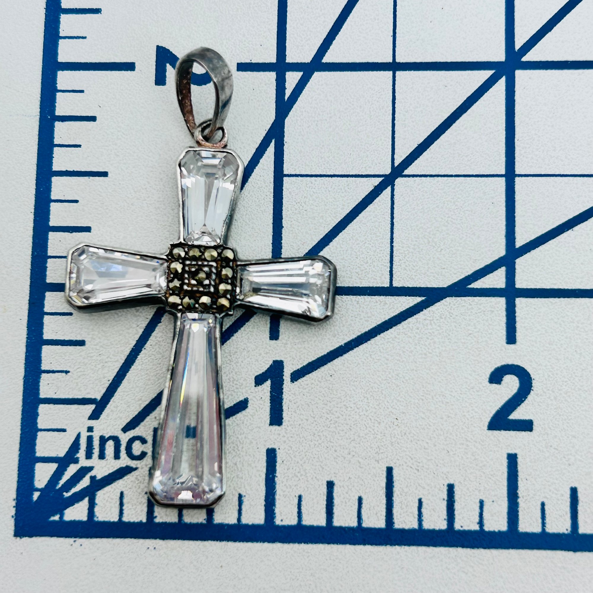 MC rhinestone Sterling MARCASITE cross pendant 7.46 g