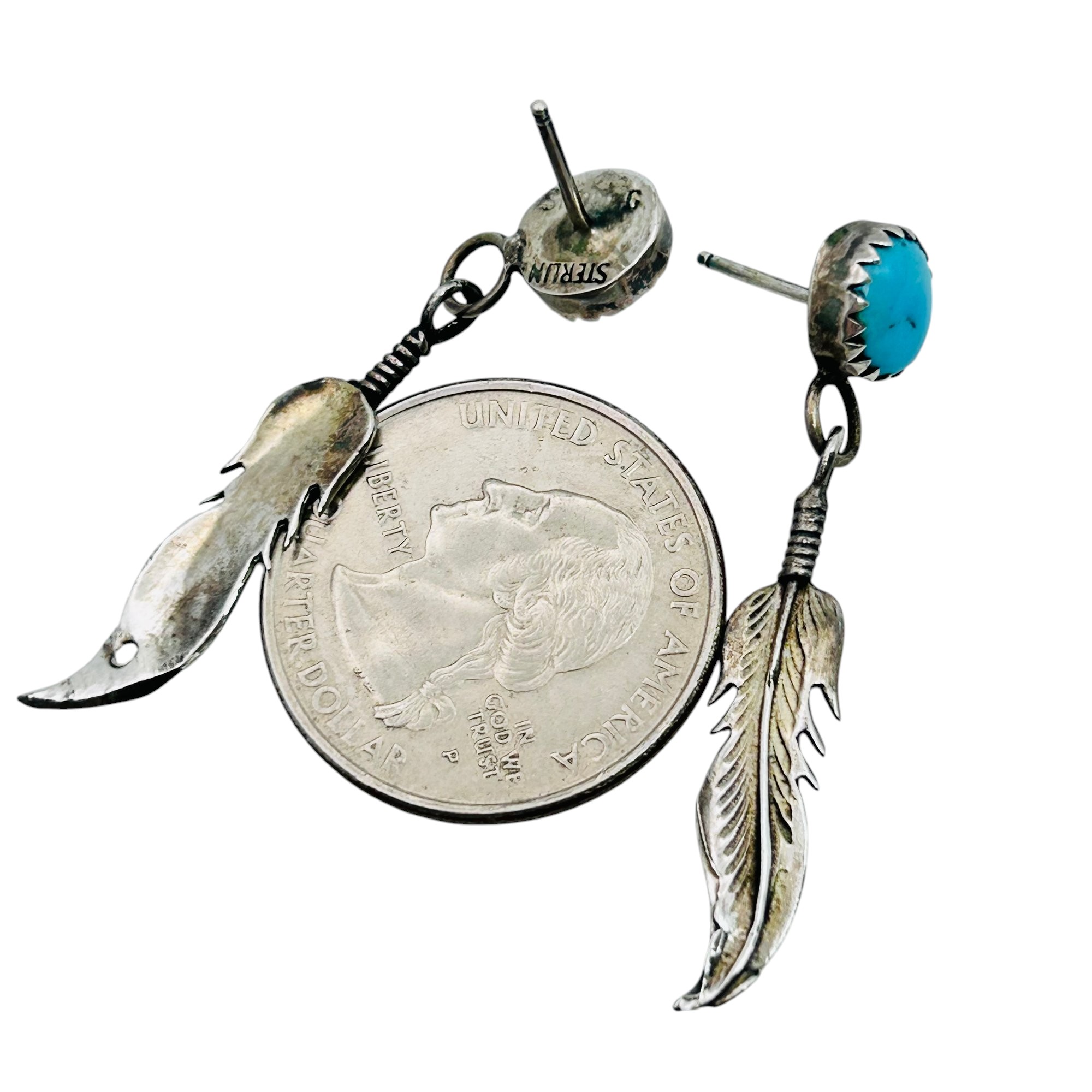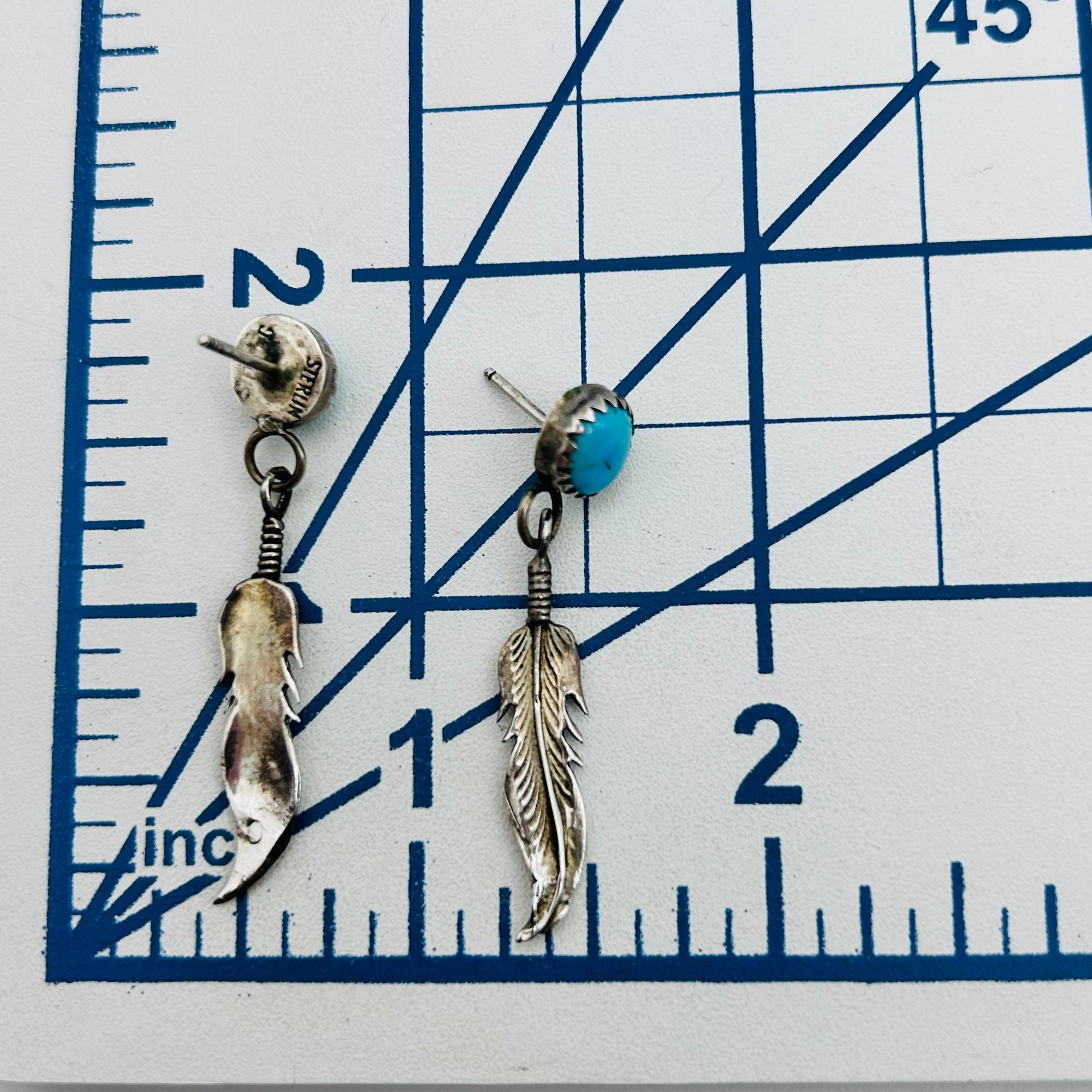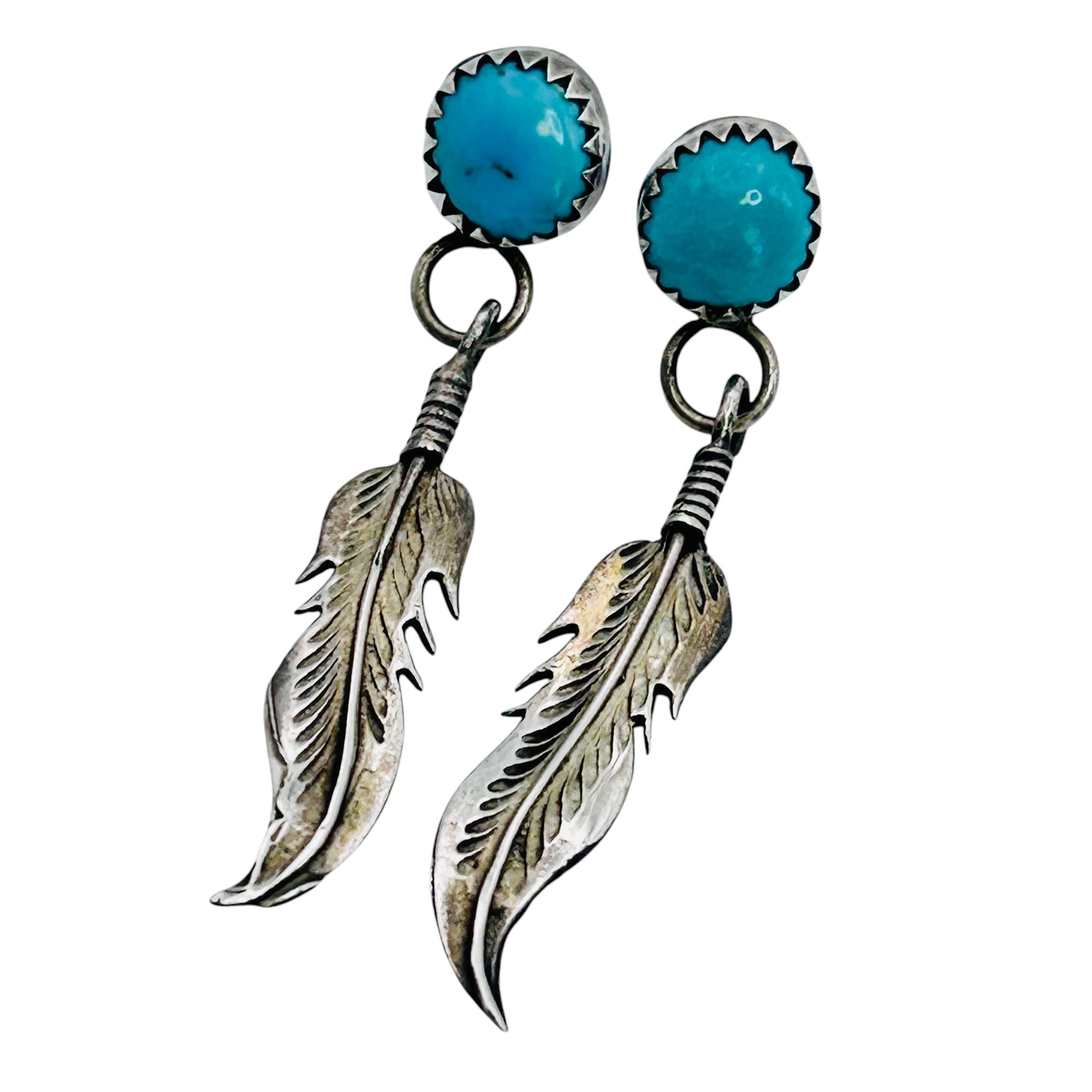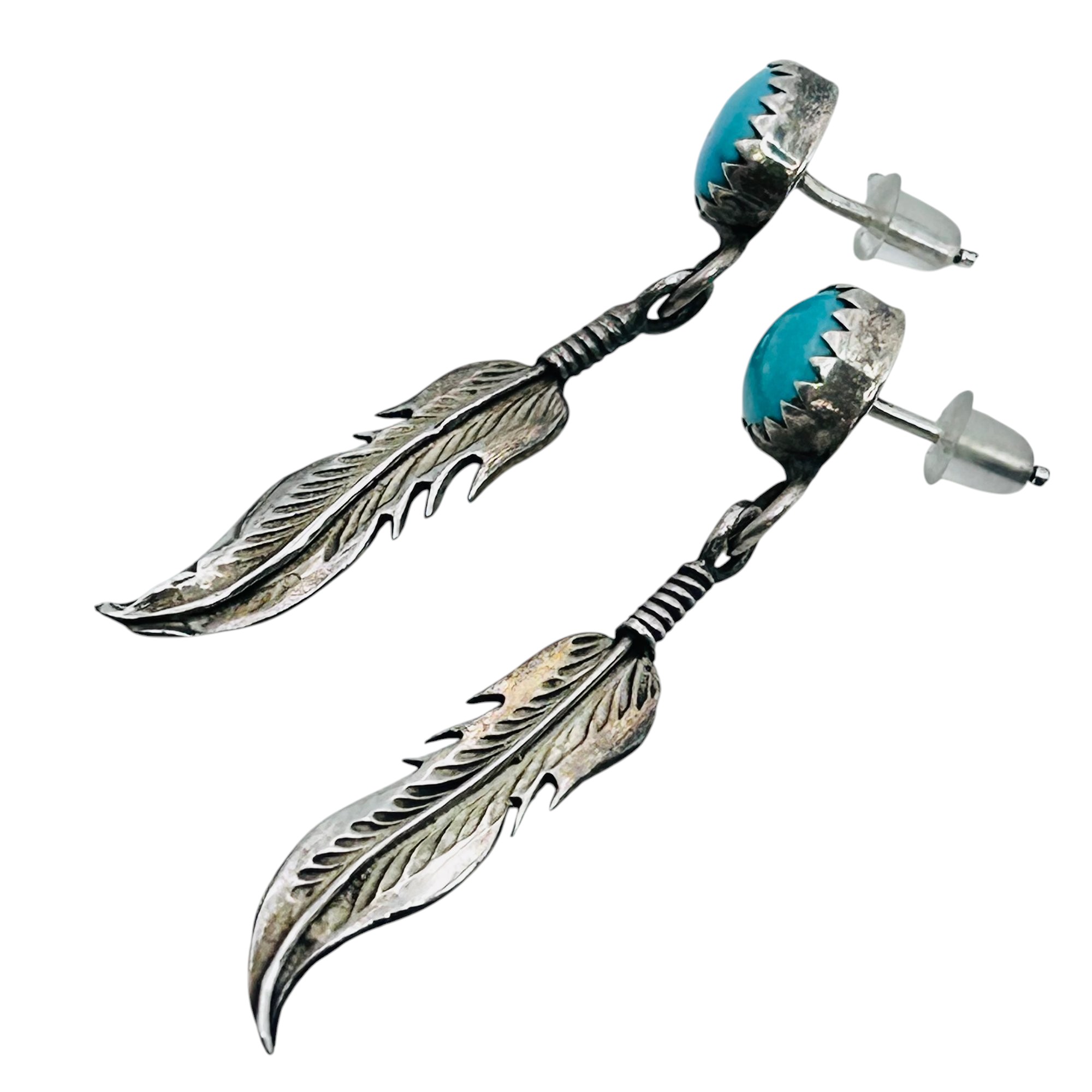 Navajo Sterling turquoise feather earrings 2.85 g