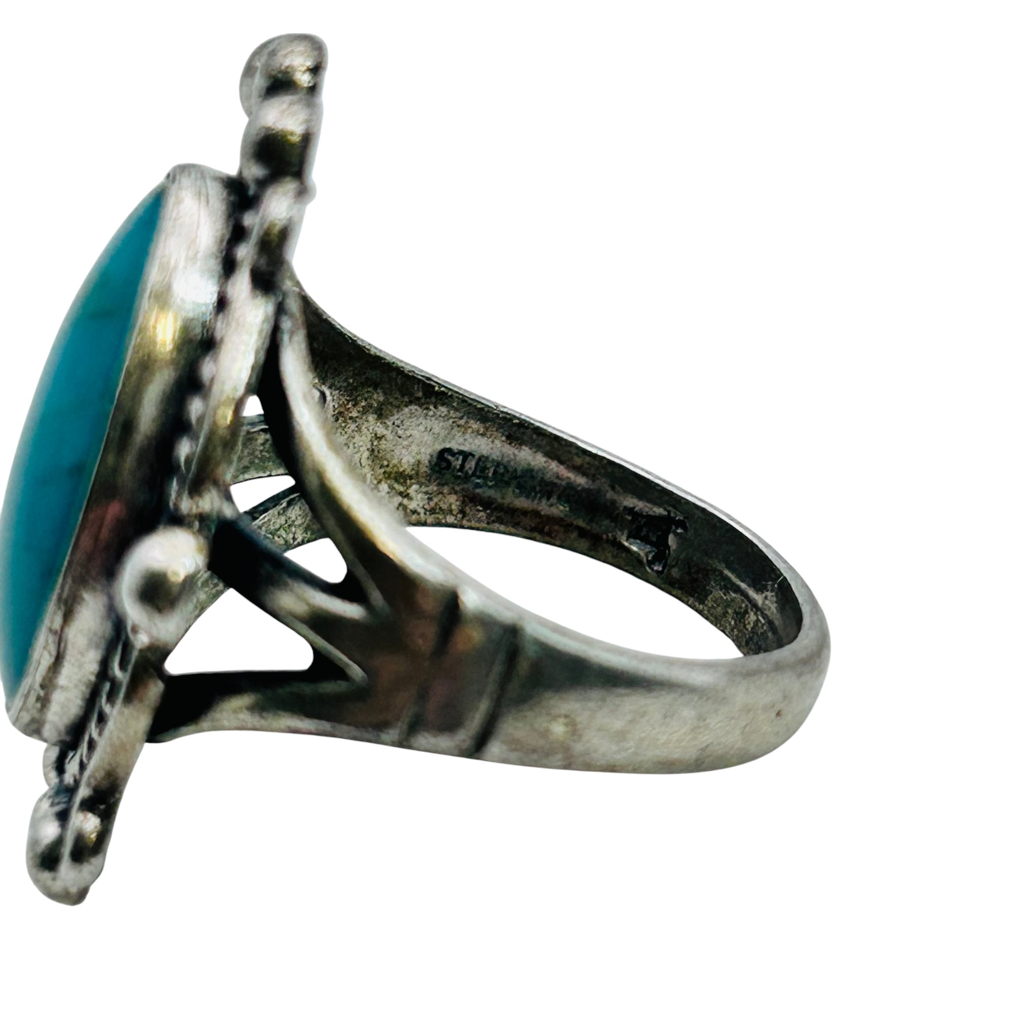 Bell trading Post Sterling turquoise ring size 6.5 7.26 g