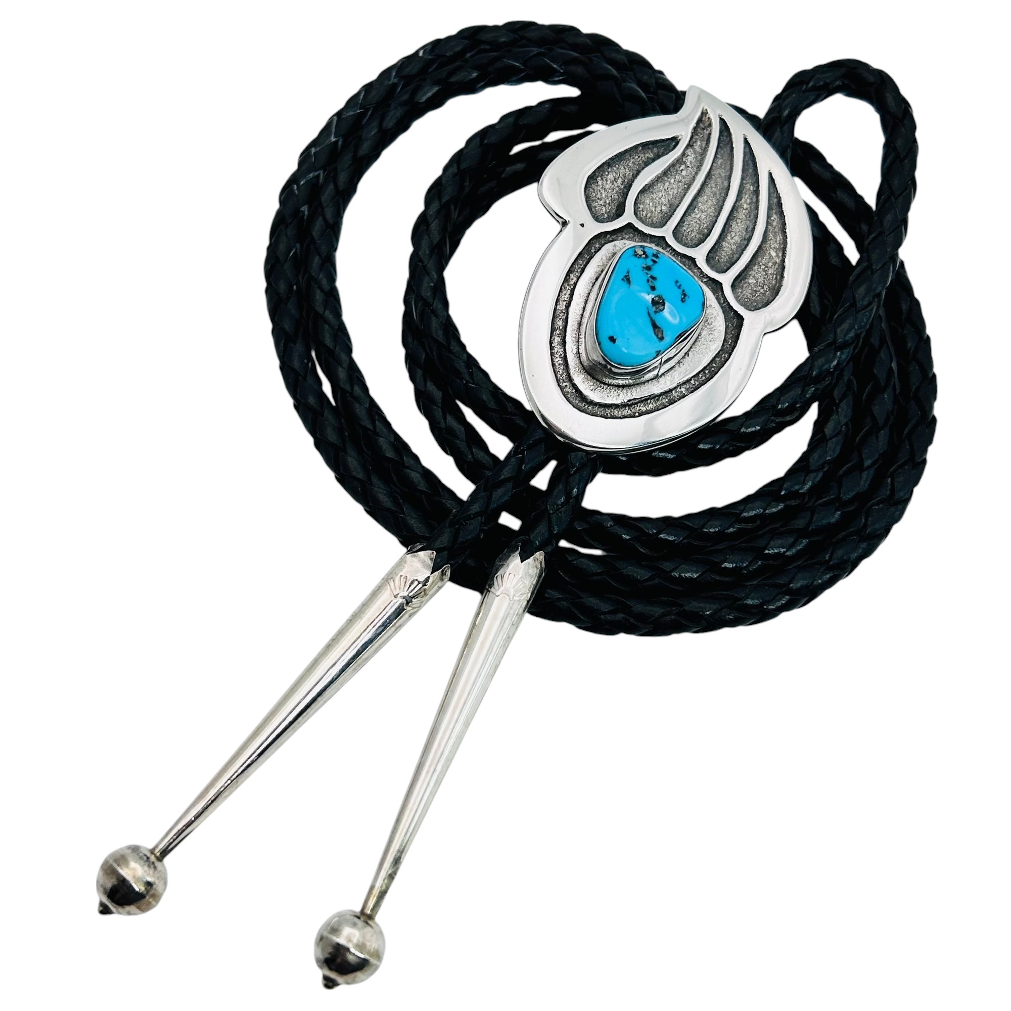 Alvin Thompson Navajo Sterling Bolo Tie 43 g Leather Braided Cord
