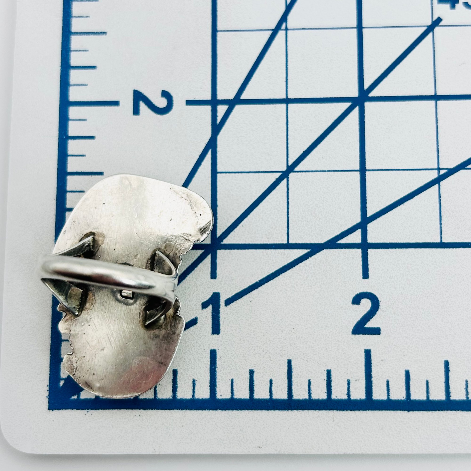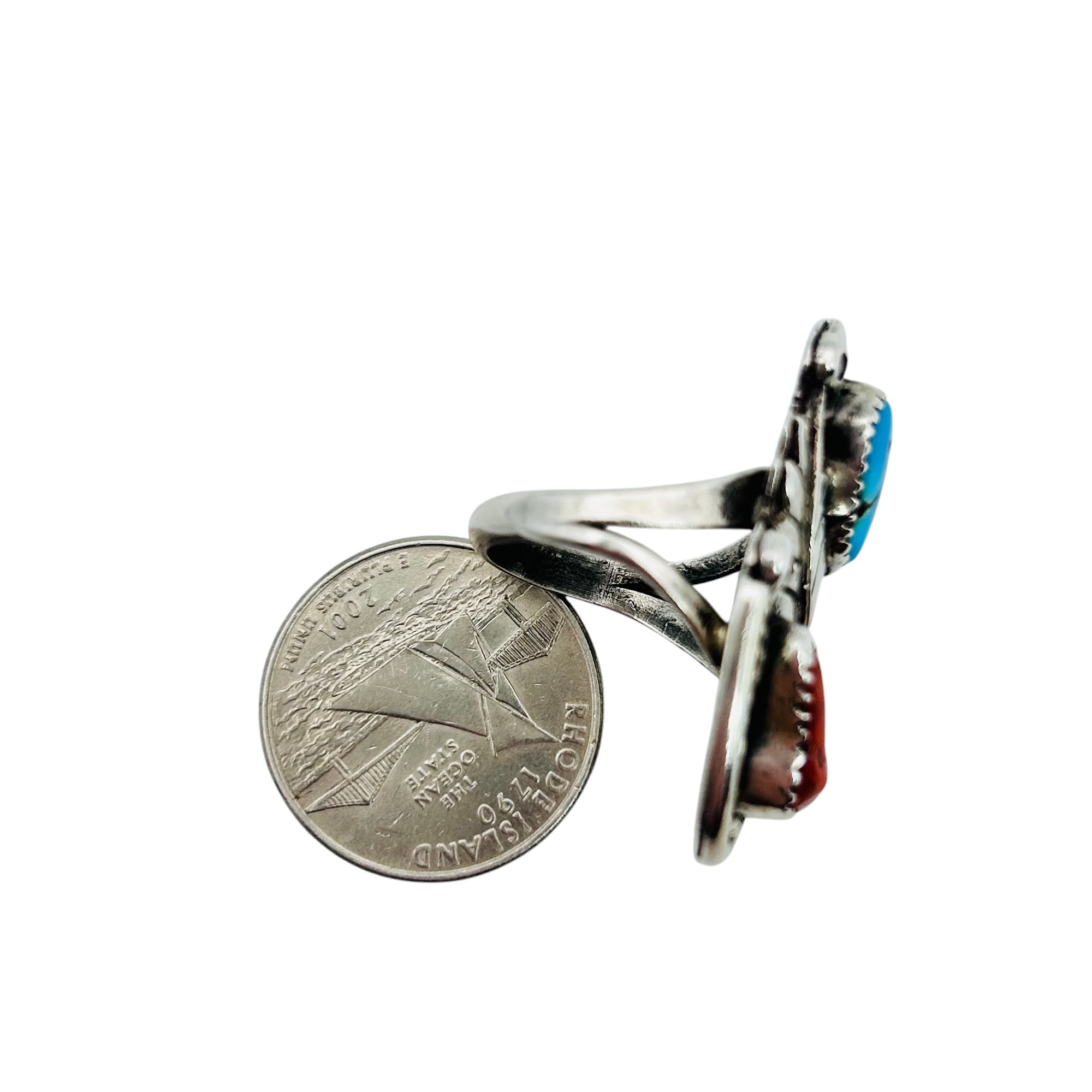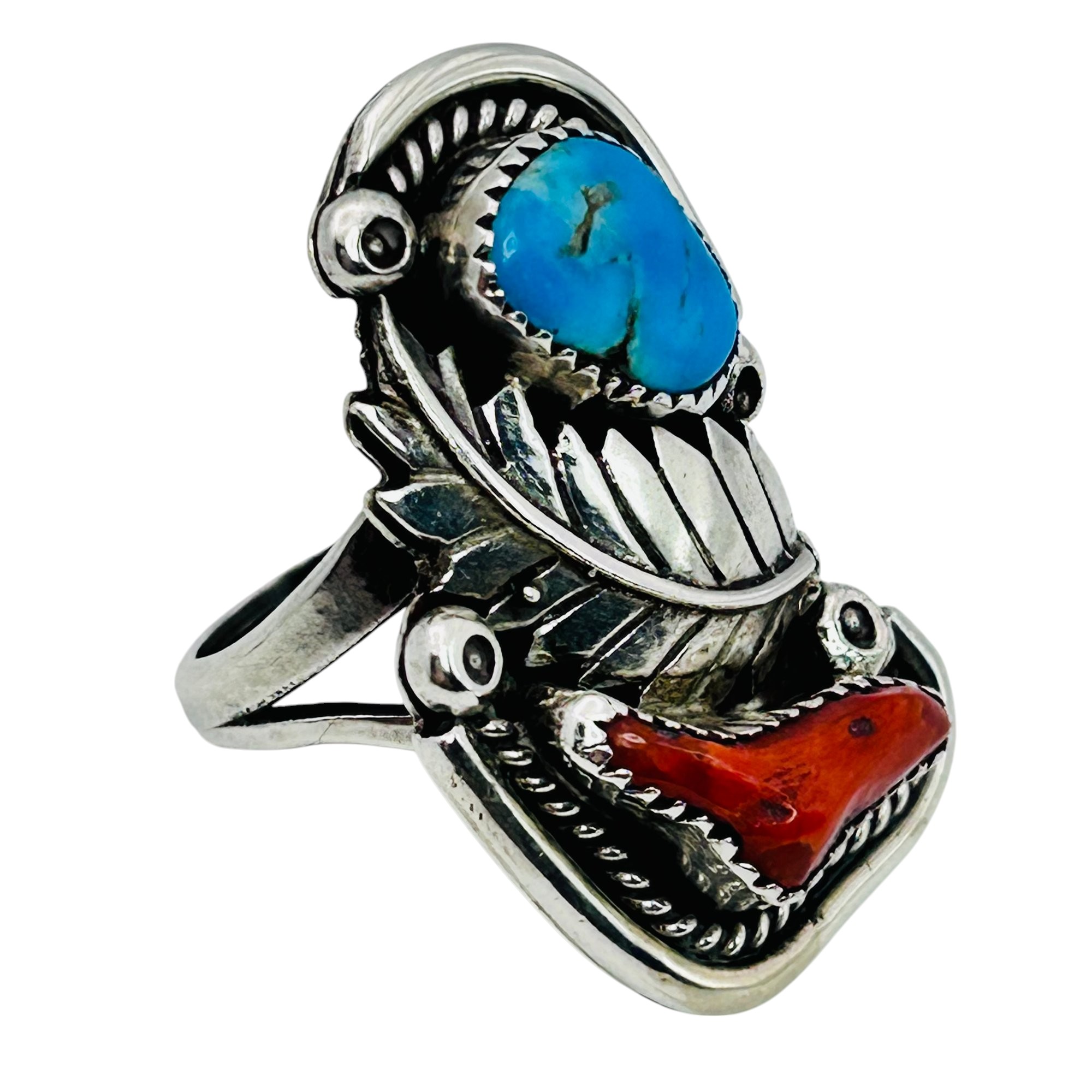 Navajo signed PJ Sterling turquoise and coral ring size 8 11.87 g
